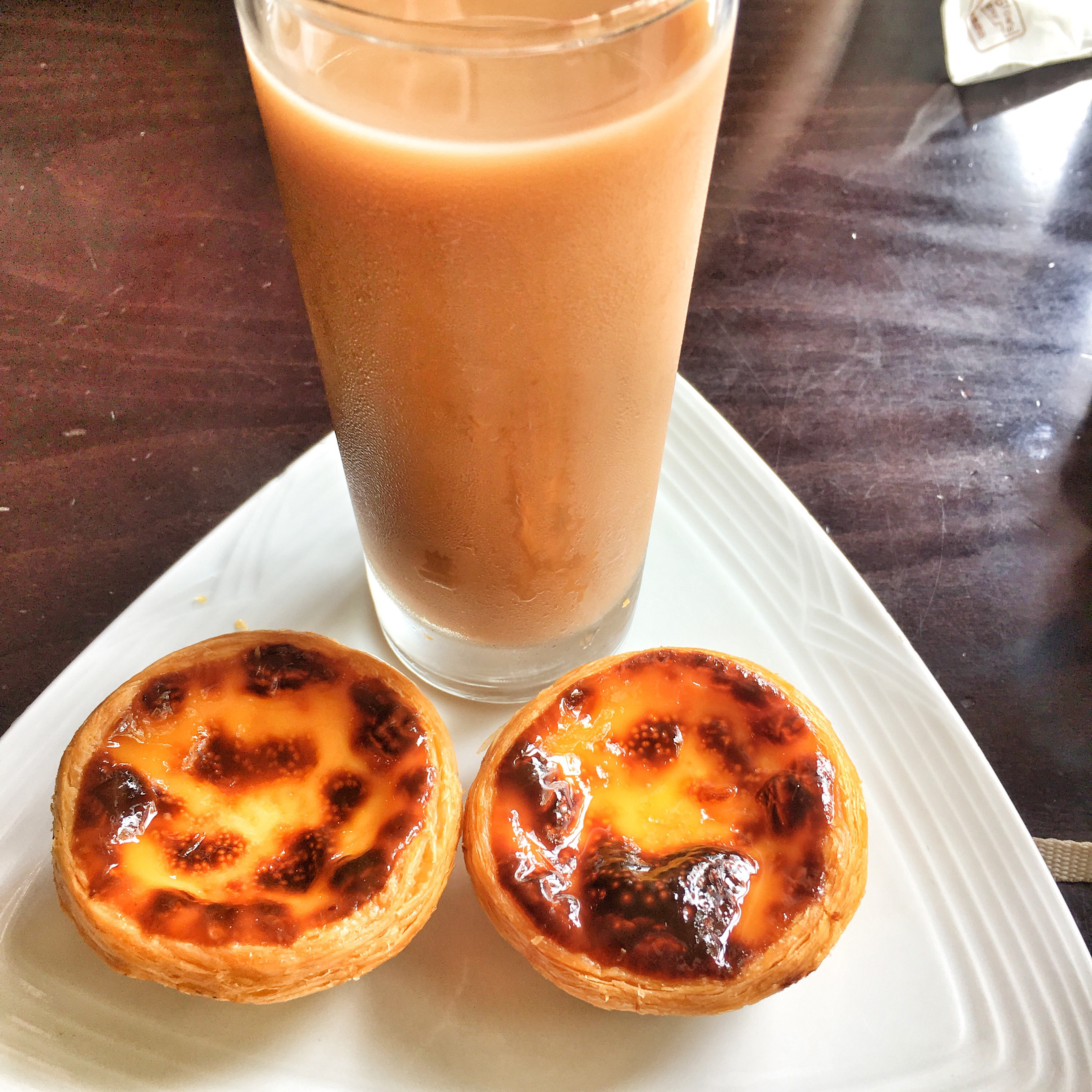 网红店"义顺鲜奶"以特有的炖鲜奶类甜品驰名街巷。原产自中国顺德大良的双皮奶,经过改良,在铺天遍地的葡国菜中异军突起,光是澳门新马路就有两家店,香港也有其分店。
