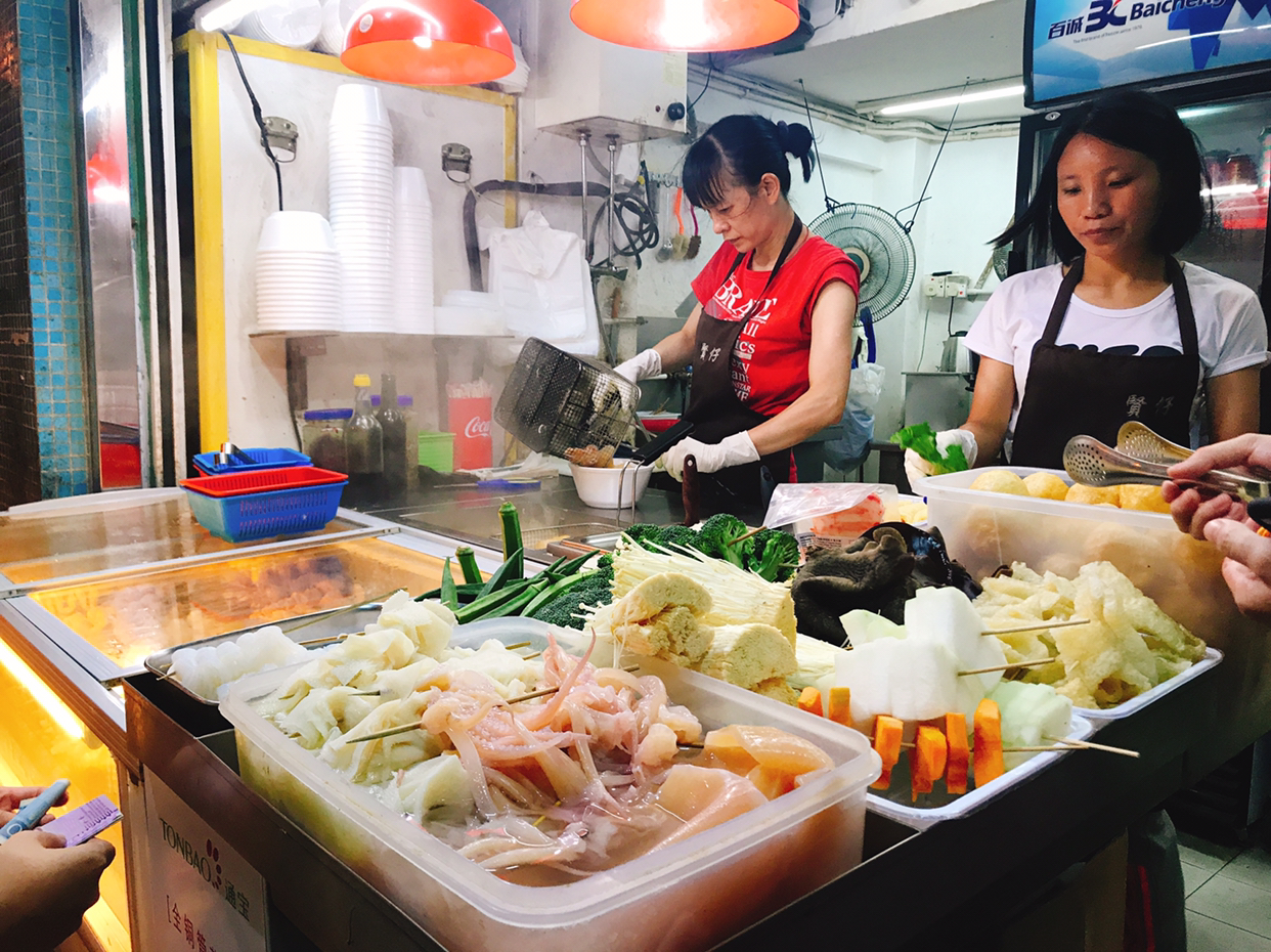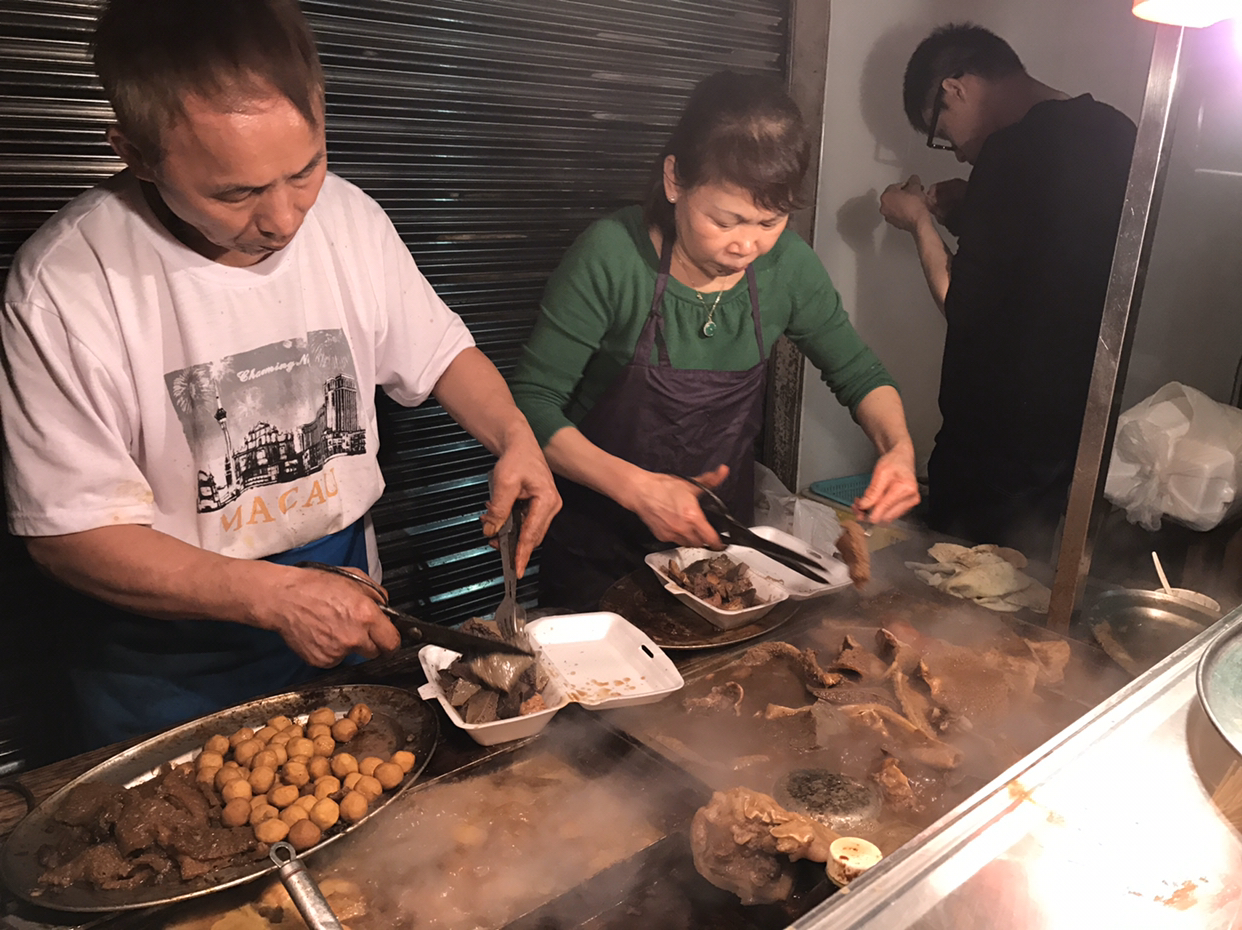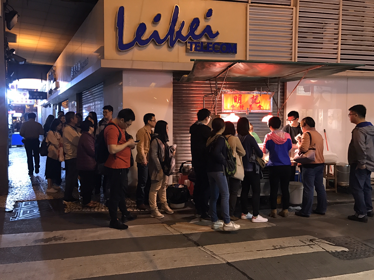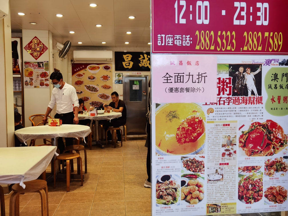 议事亭前往新葡京方向的分店是游客最常造访的一家,两层小楼即使在晚上10点也是客人满满,座无虚席。