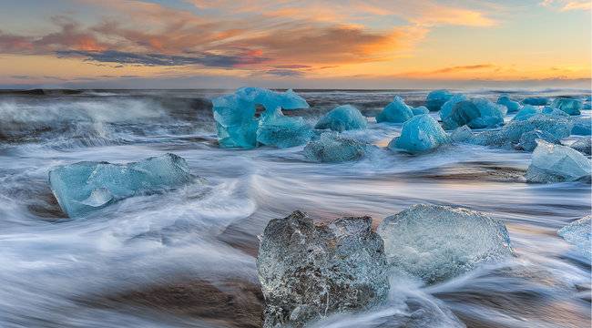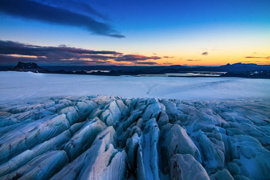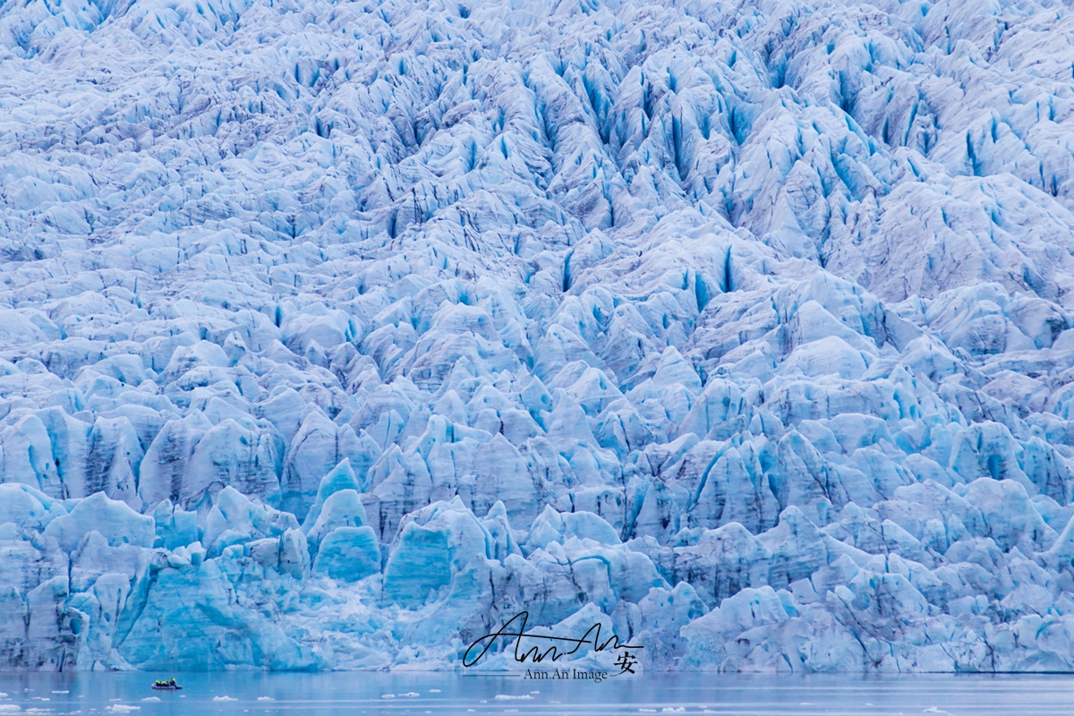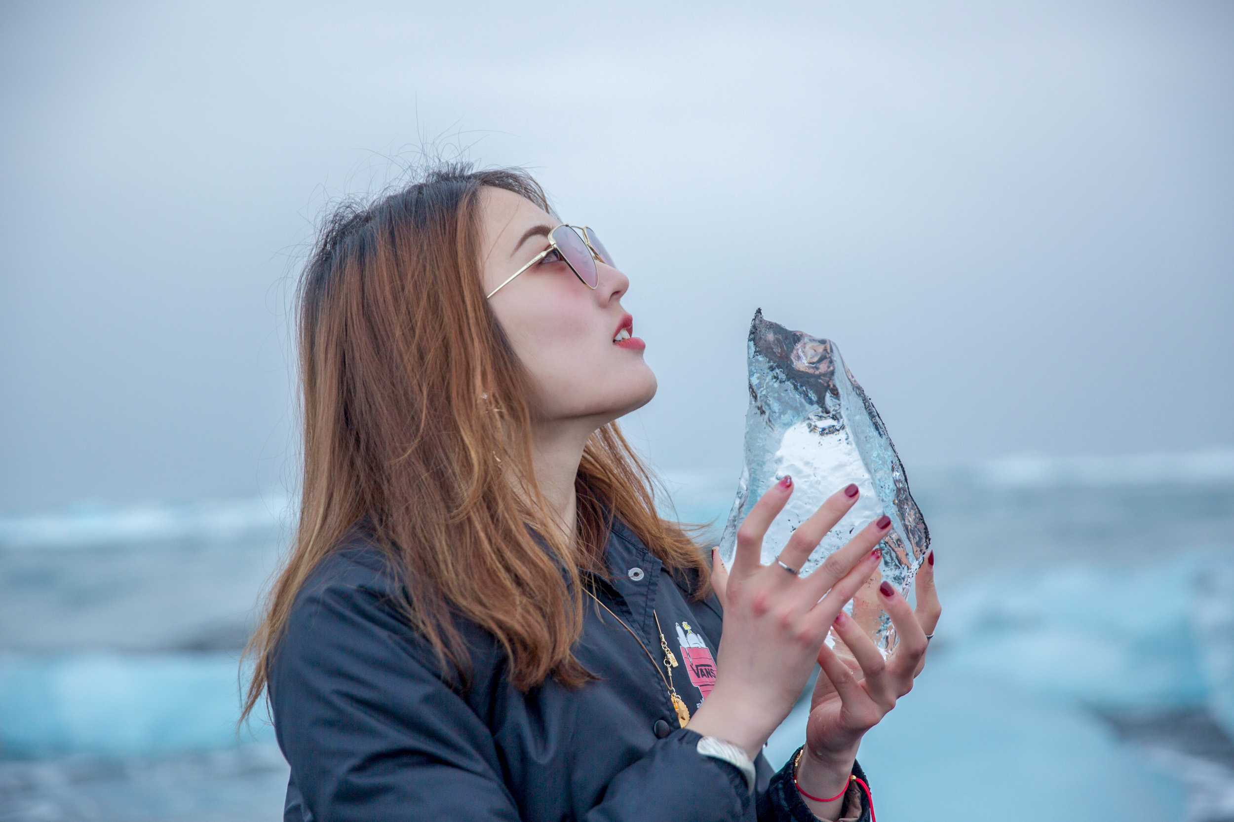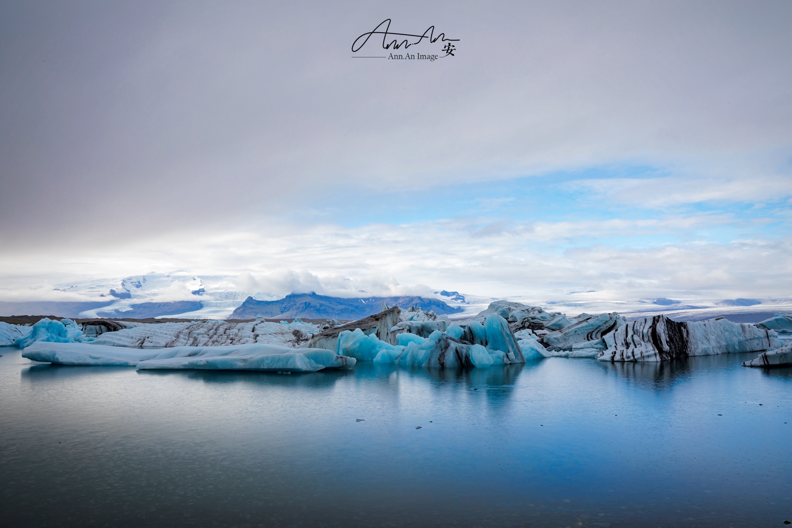 大名鼎鼎的[冰河湖],从瓦特纳冰川中掉落的冰山漂浮在与大海相连的泻湖之上,而阳光的无限次折射使得纯净的冰块透出纯净的蓝,让我们徜徉在令人惊叹的这一抹蓝中。