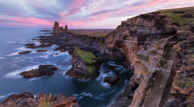 也拥有了无数种地貌。这里,结晶的玄武岩是黑色的,石头是黑色的,被风化的沙粒是黑色的。白色的,有咆哮的海浪和海鸟的翅膀。
