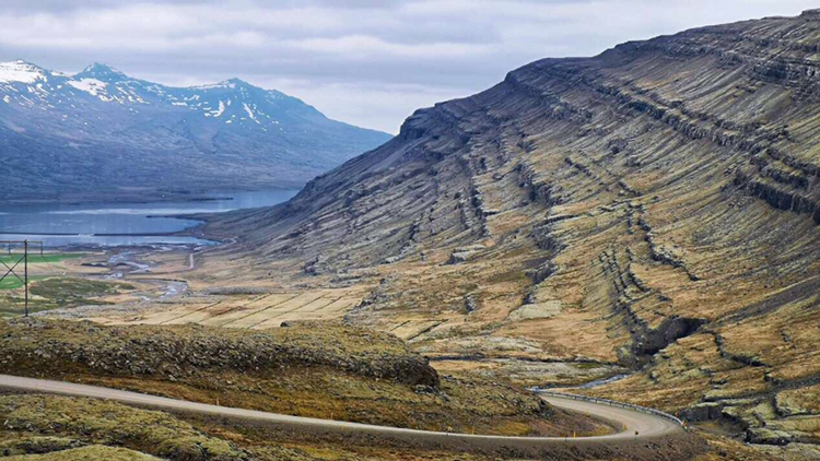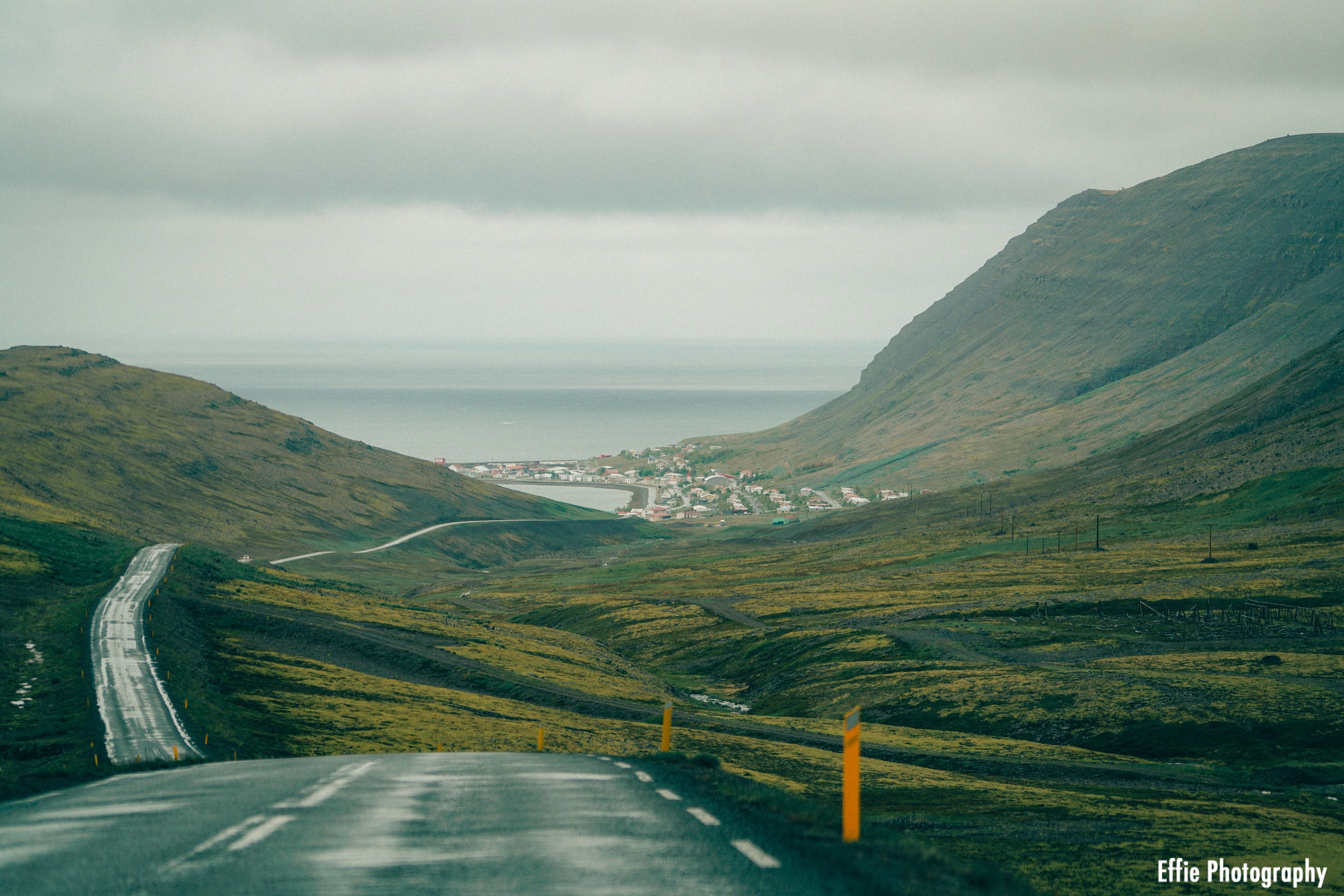 电影《白日梦想家》主角沿93号公路溜着滑板一路溜进东部最美峡湾Seyðisfjörður末端的同名小镇 Seyðisfjörður,背景为Gufufoss蒸汽瀑布。