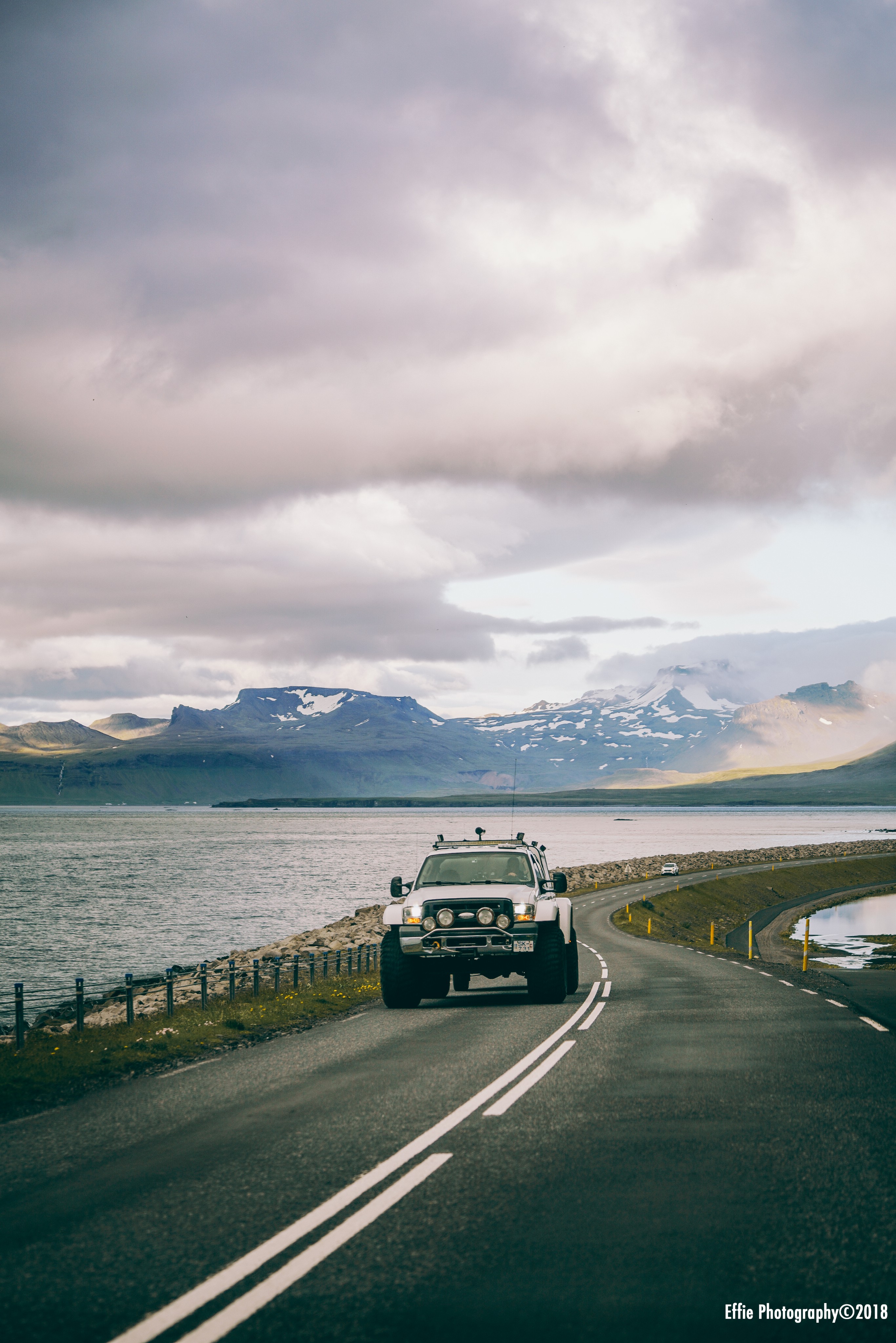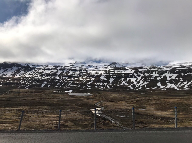 三、离开1号公路、穿越内陆939公路捷径。夏季的939公路没有传说中的那么吓人,山上的雪景说不出的亮丽,还偶遇Folaldafoss,小瀑布挂在山林中。