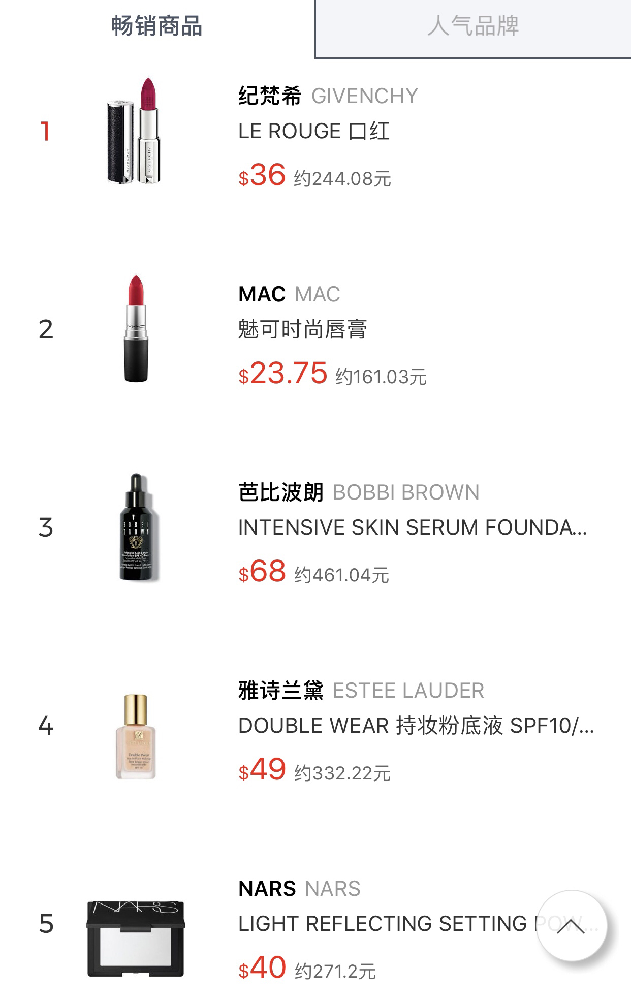 彩妆排行榜