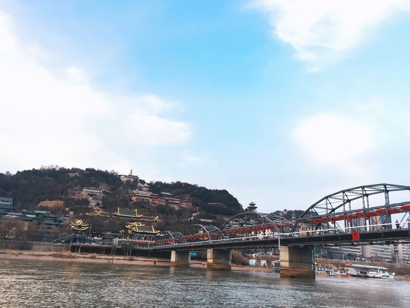 中山桥现在是一座步行桥了,可以徒步过河,站在桥上看看黄河也是不错的