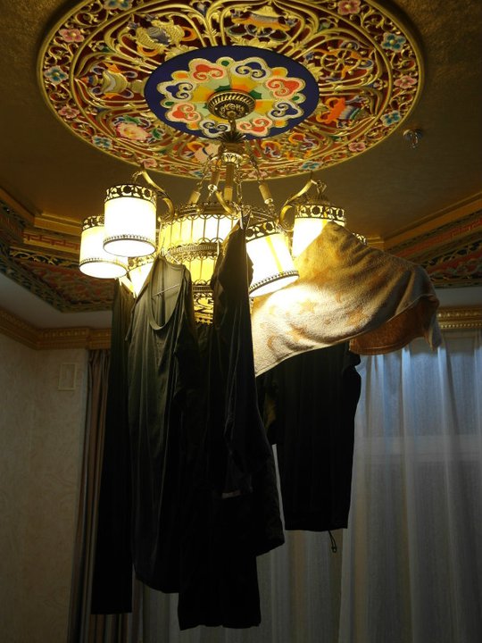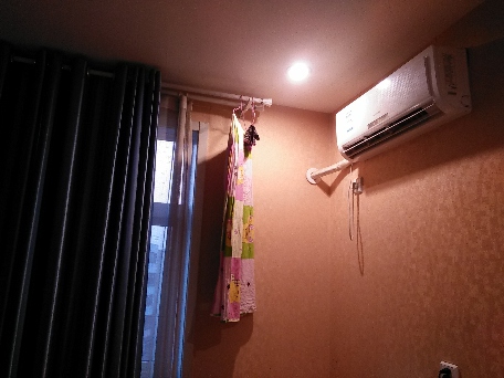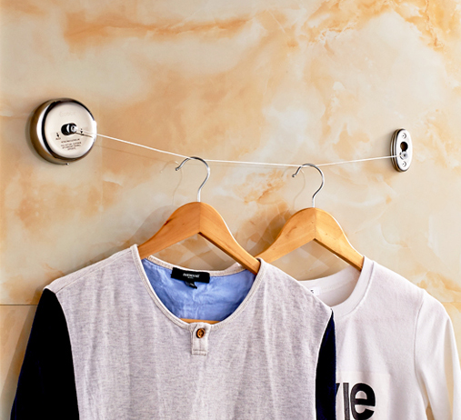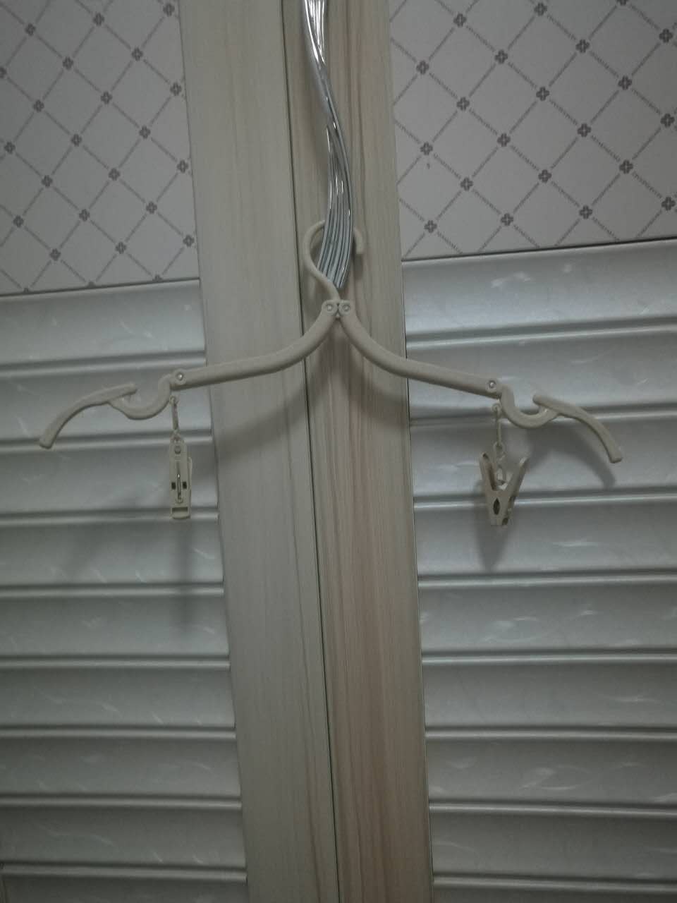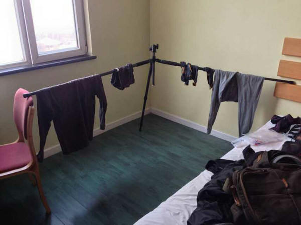 不够高把箱子翻个面放,小件衣服用衣架,大件直接铺杆子上