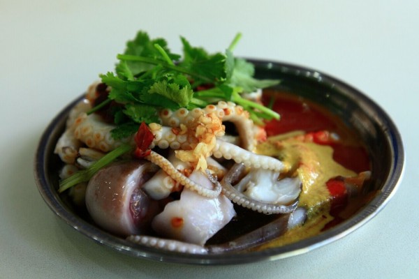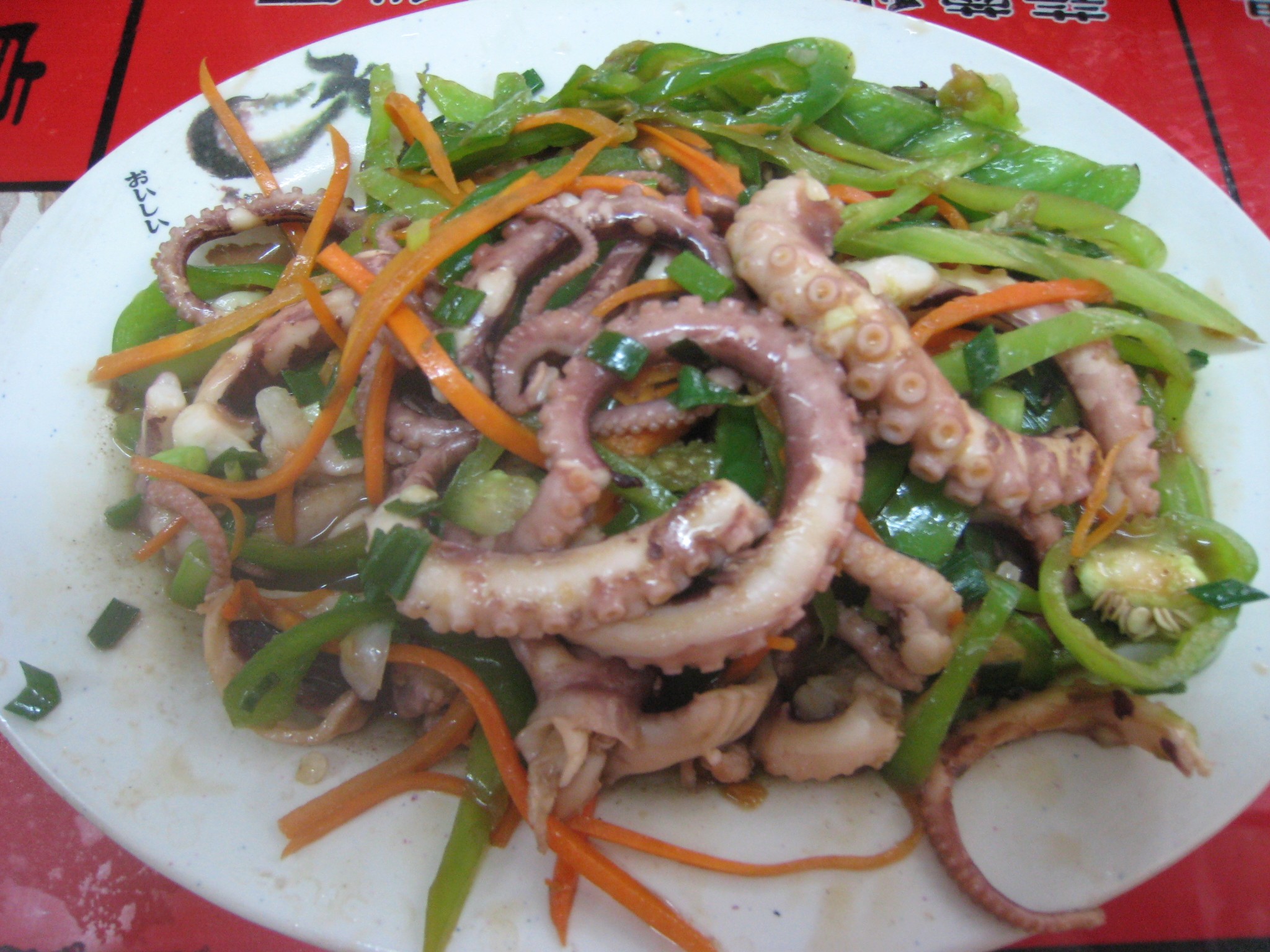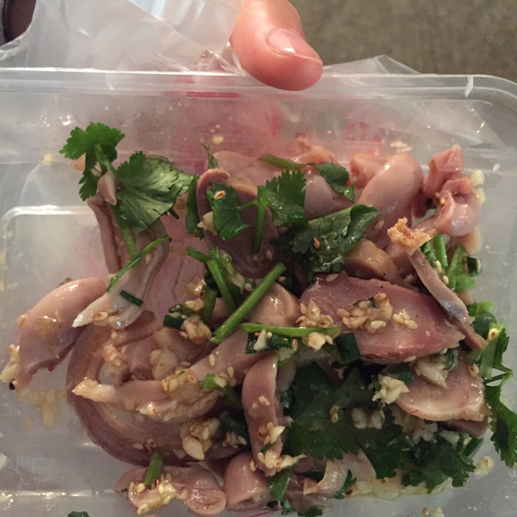 我们点的凉拌鸡胗,蒜味很重,有点咸。