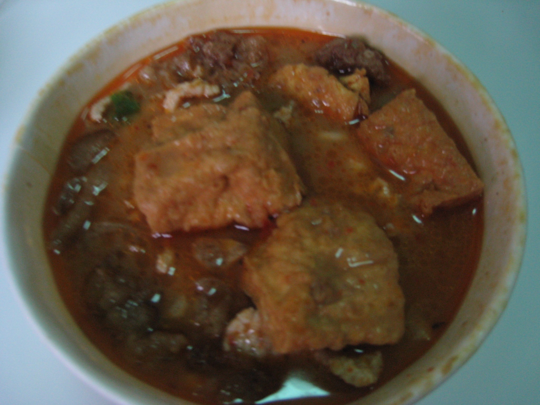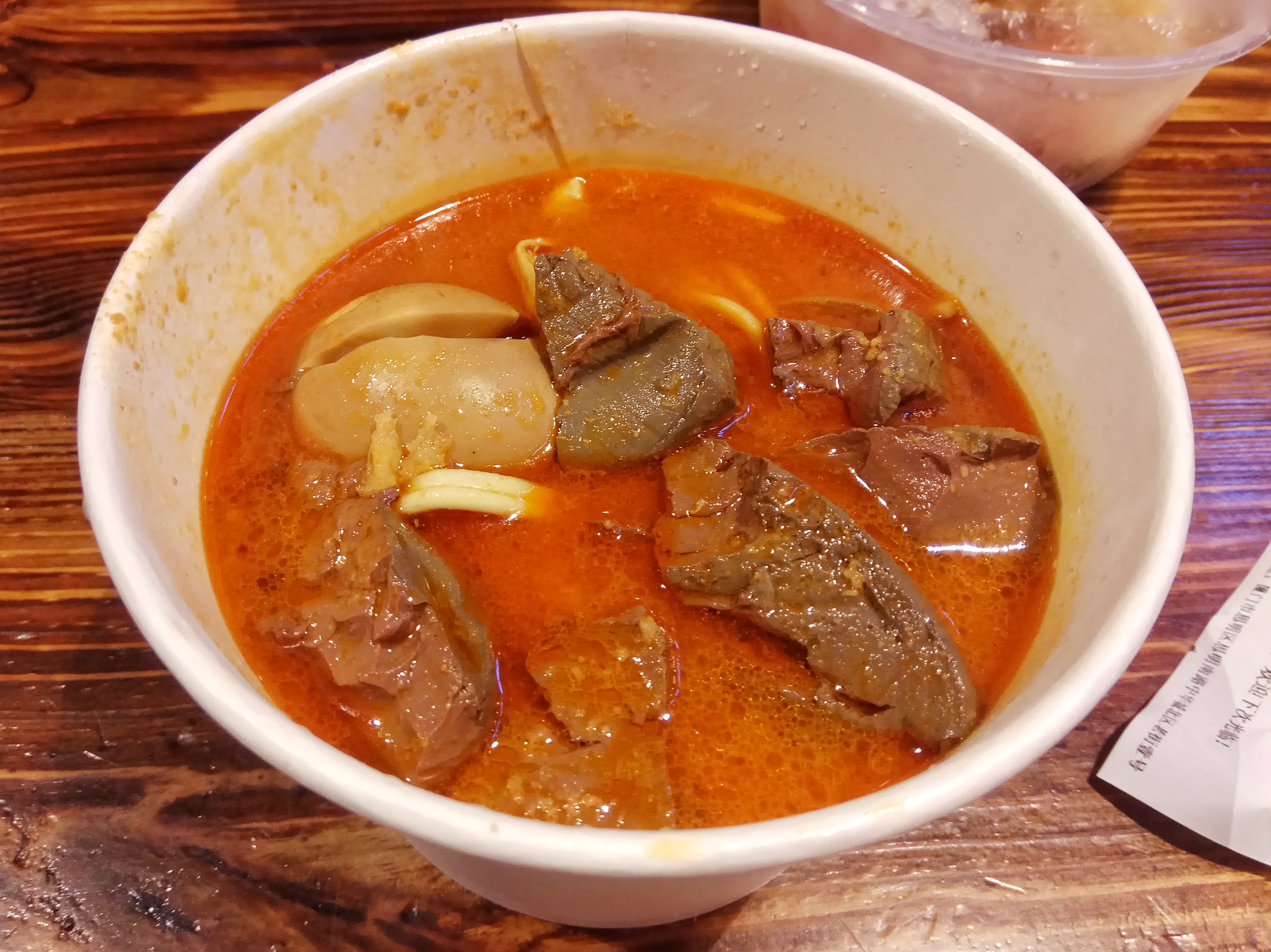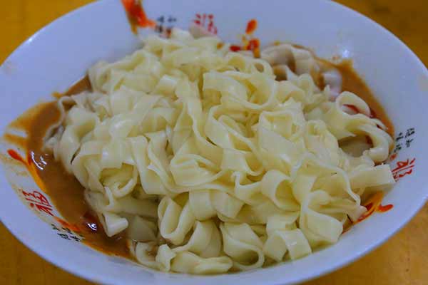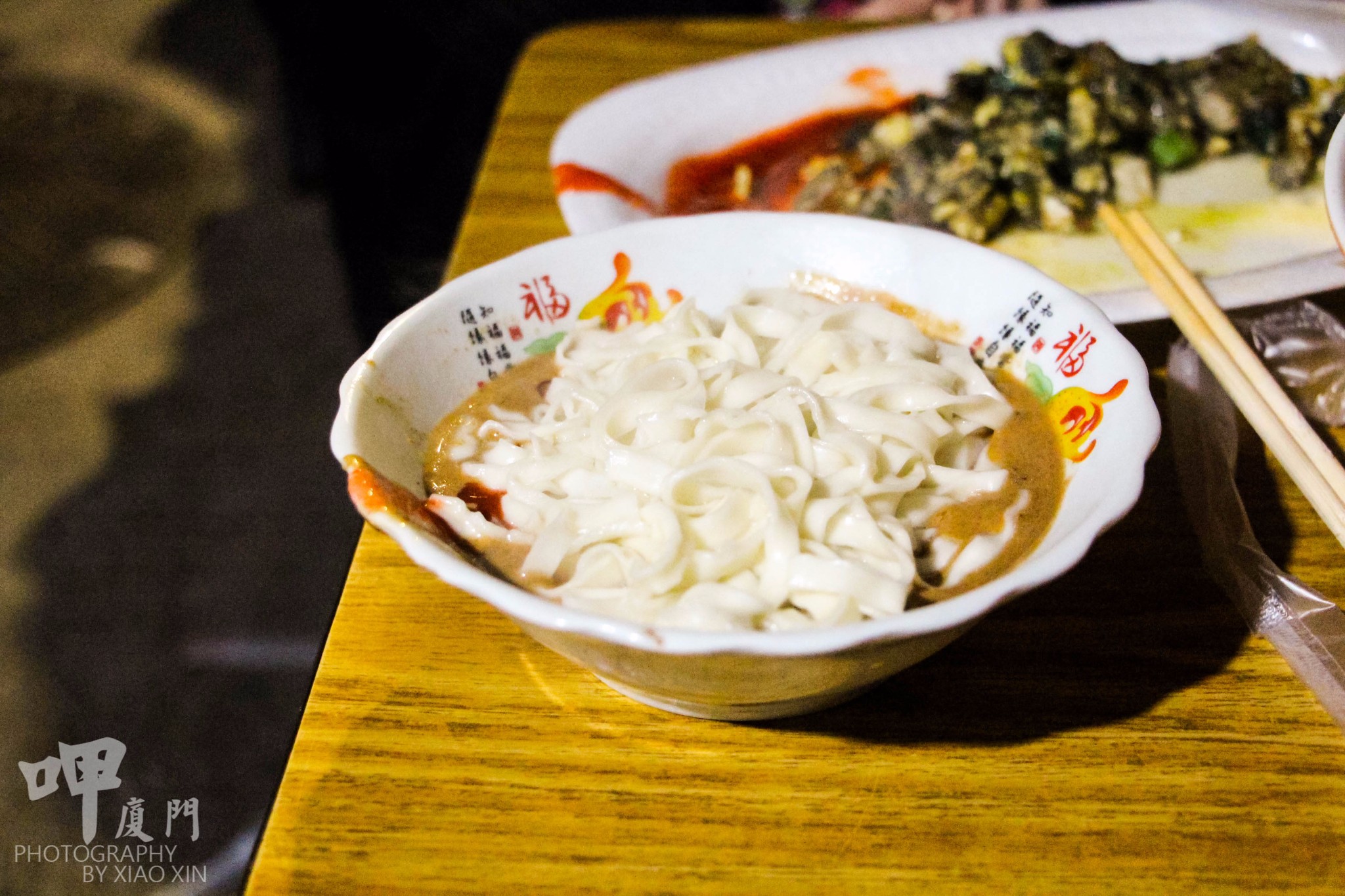 端上桌来第一感觉是汤头浓厚,和山东吃的打卤面不同,和本帮苏帮的面也不同,用沙茶酱调制呈现橙黄色,喝一口有浓浓花生酱的味道,偏甜,还有些吃不惯,不过很香。
