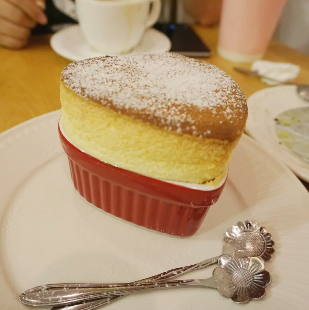 图一抹茶芝士蛋糕,图二舒芙蕾。舒芙蕾烤出来塌陷的特别快,这是抓拍的!