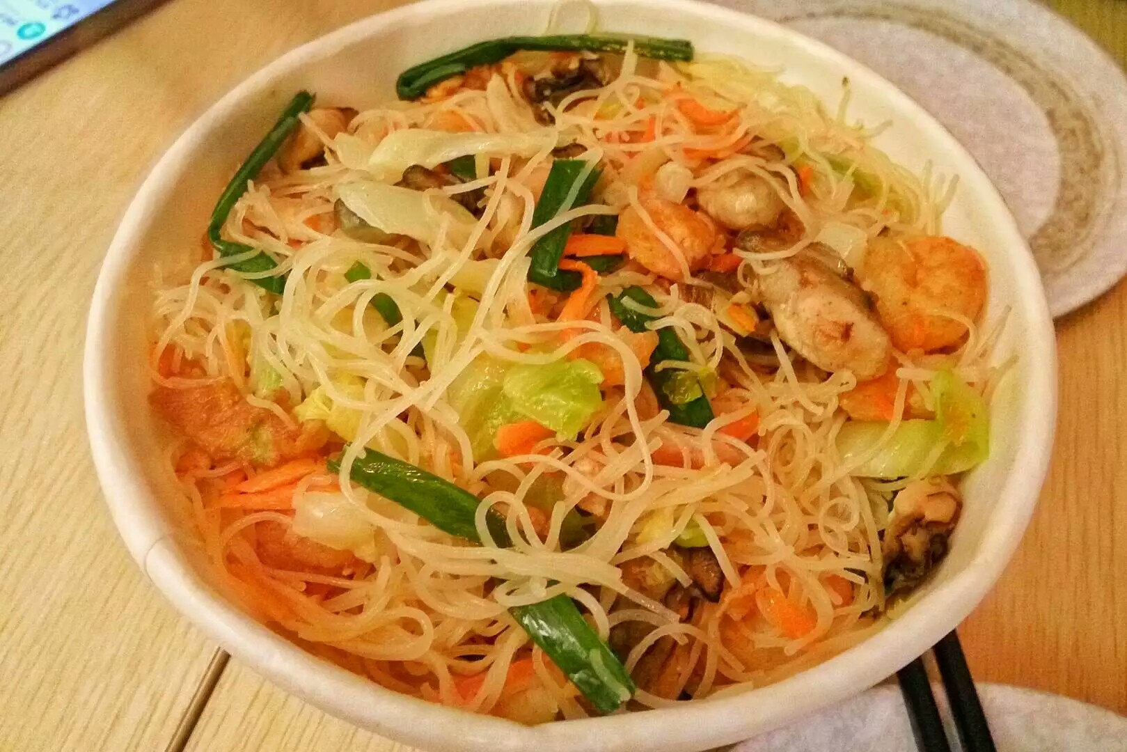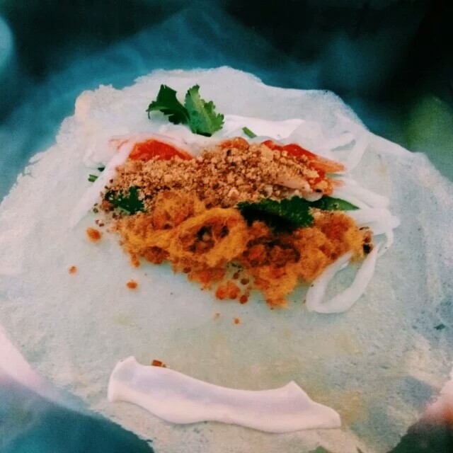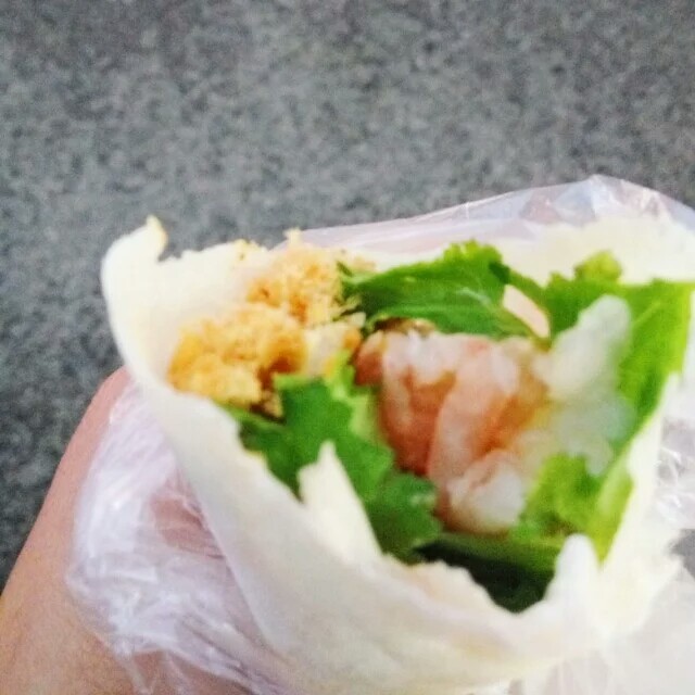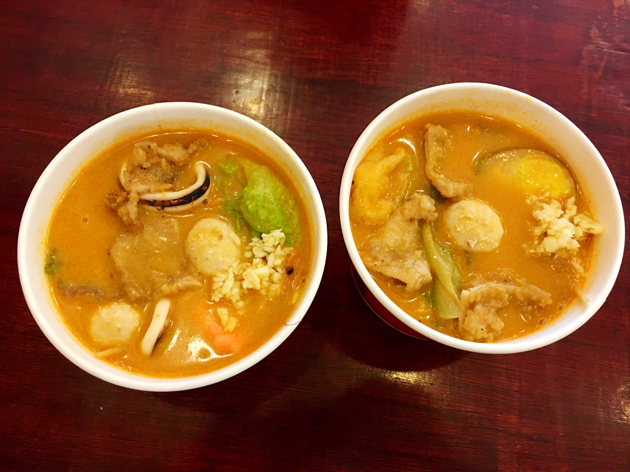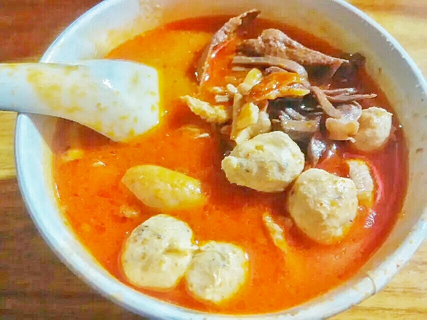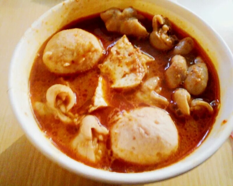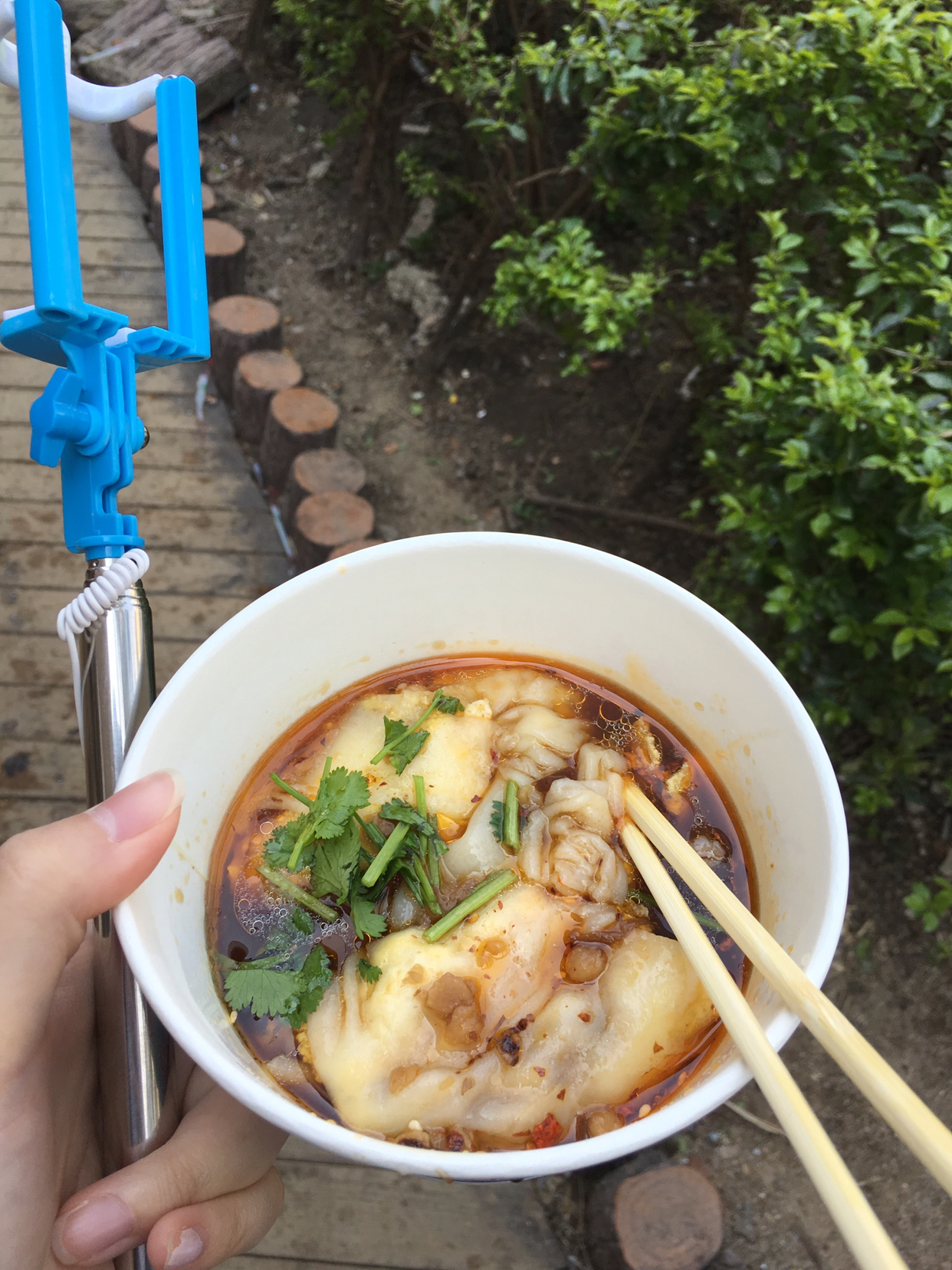 (自拍杆都来不及放就开始吃)肠粉很筋道也很滑,汤的味道很赞!不会太辣又十分解腻,最后都快把汤干了。