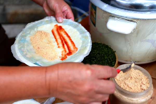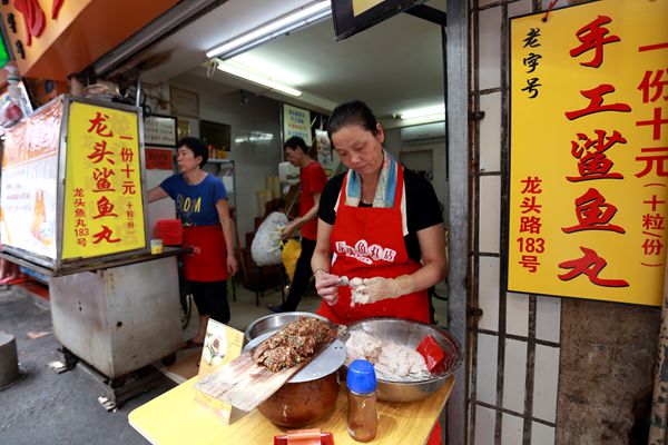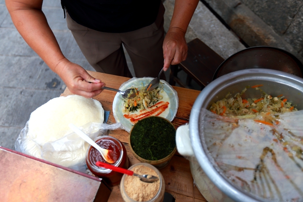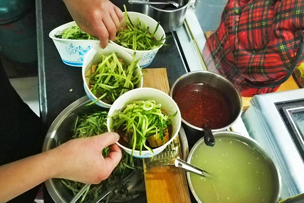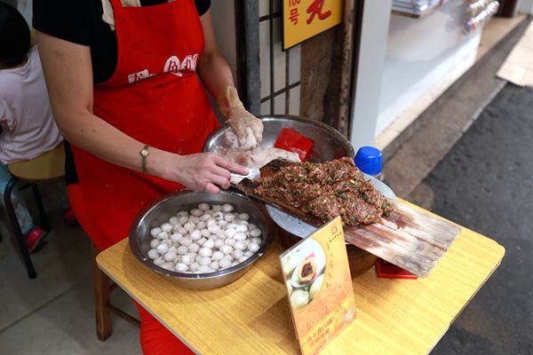 中山路步行街门口卖面的阿姨手脚利落,点单后大剪刀咔嚓咔嚓,没等我按快门就完成了一份配料。
