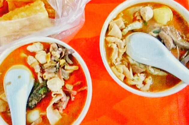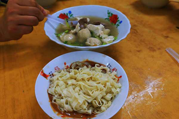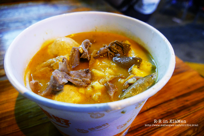 最有名的应该就是永安阿兰粿条了吧……这其实是偶遇,从厦大出来去猫咪博物馆的路上看见的,因为不知道什么味,正好也饿了,就进来尝尝。粿条和鸭血都不错,配的黄辣椒汁又香又解腻。