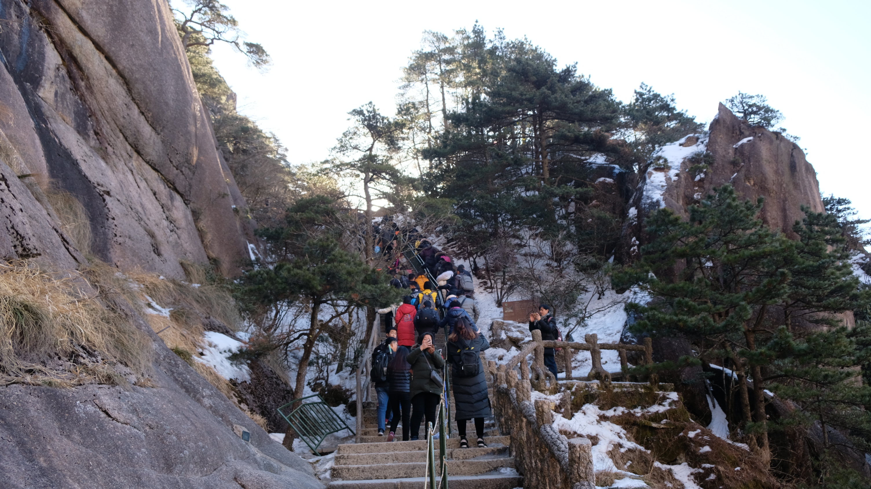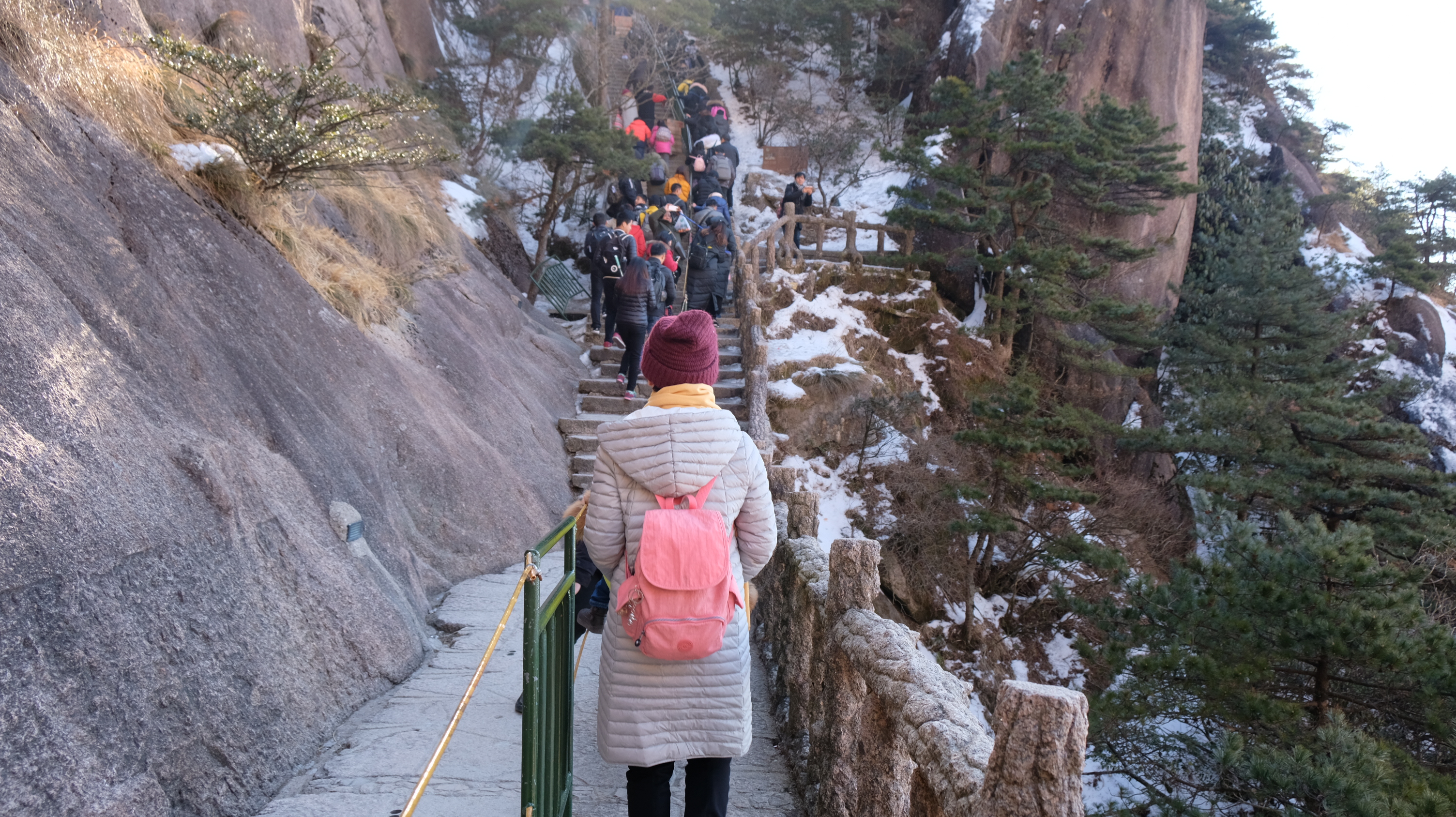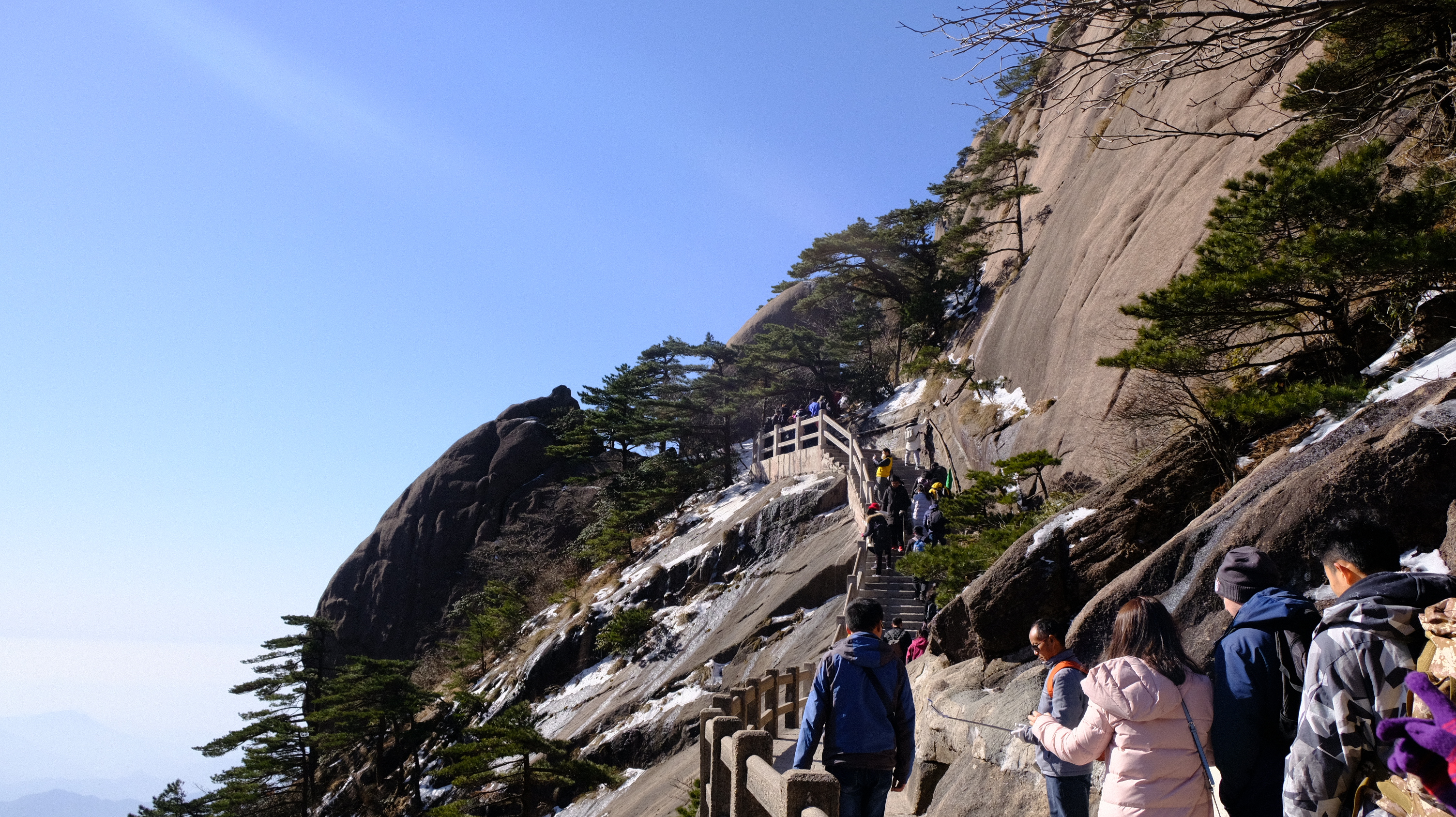 风景区光明顶又遇到了高姐,她也刚走完西海峡谷,不过路线和我稍微有点不同,而且损耗没我严重,感缘分奇妙,结伴向 北海 景区进发。