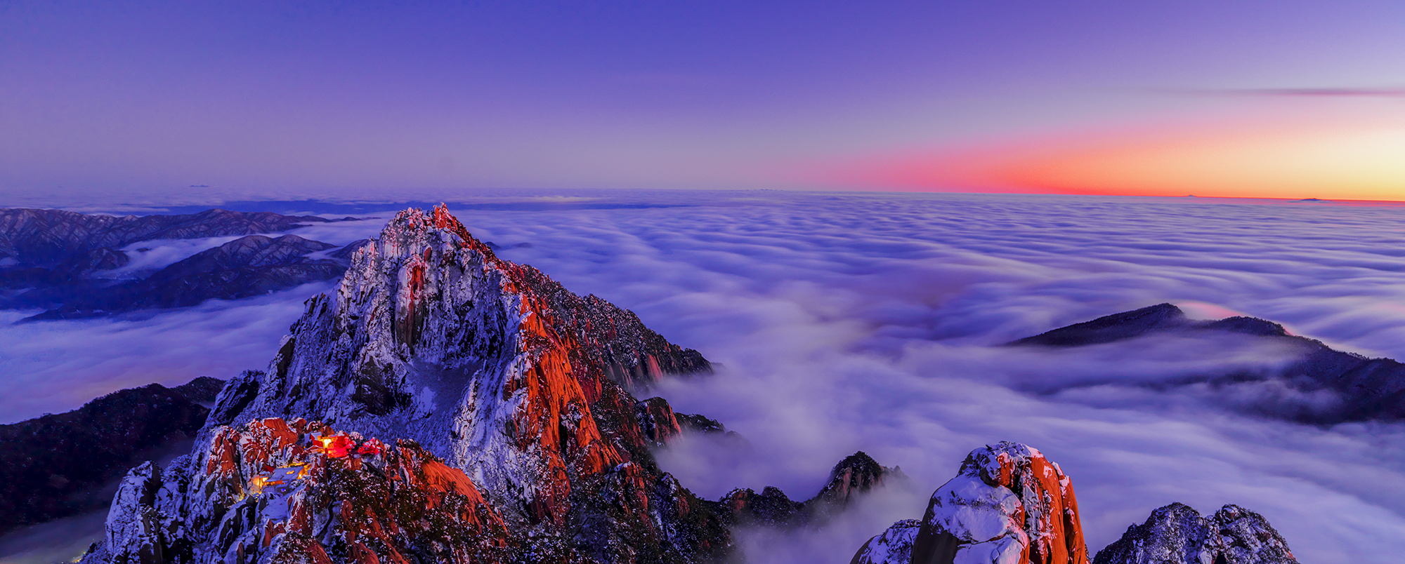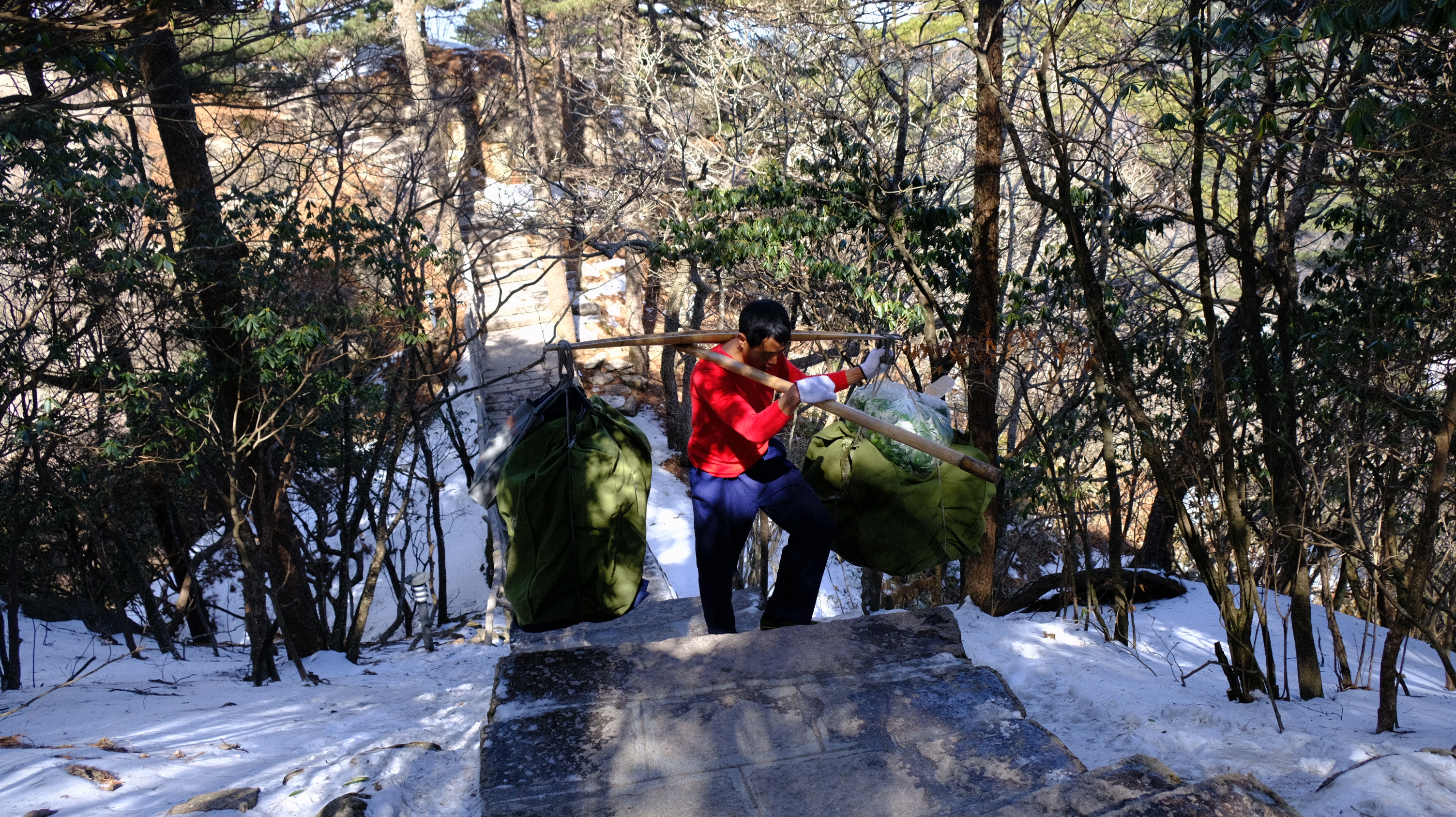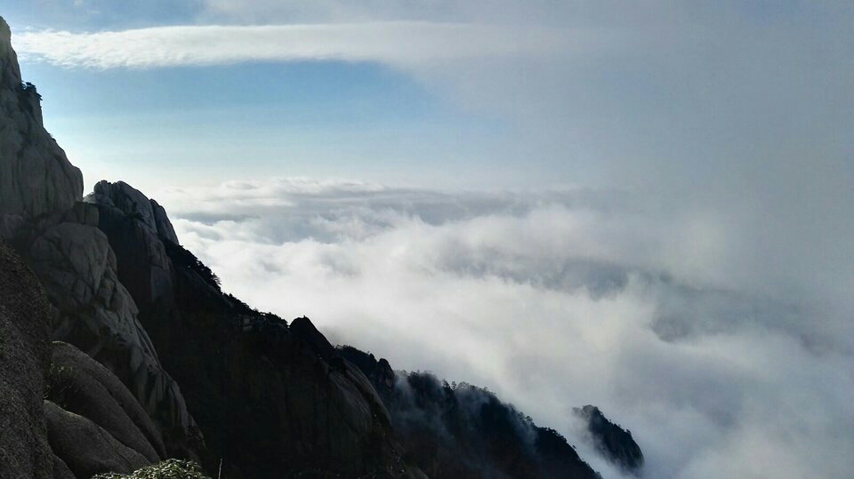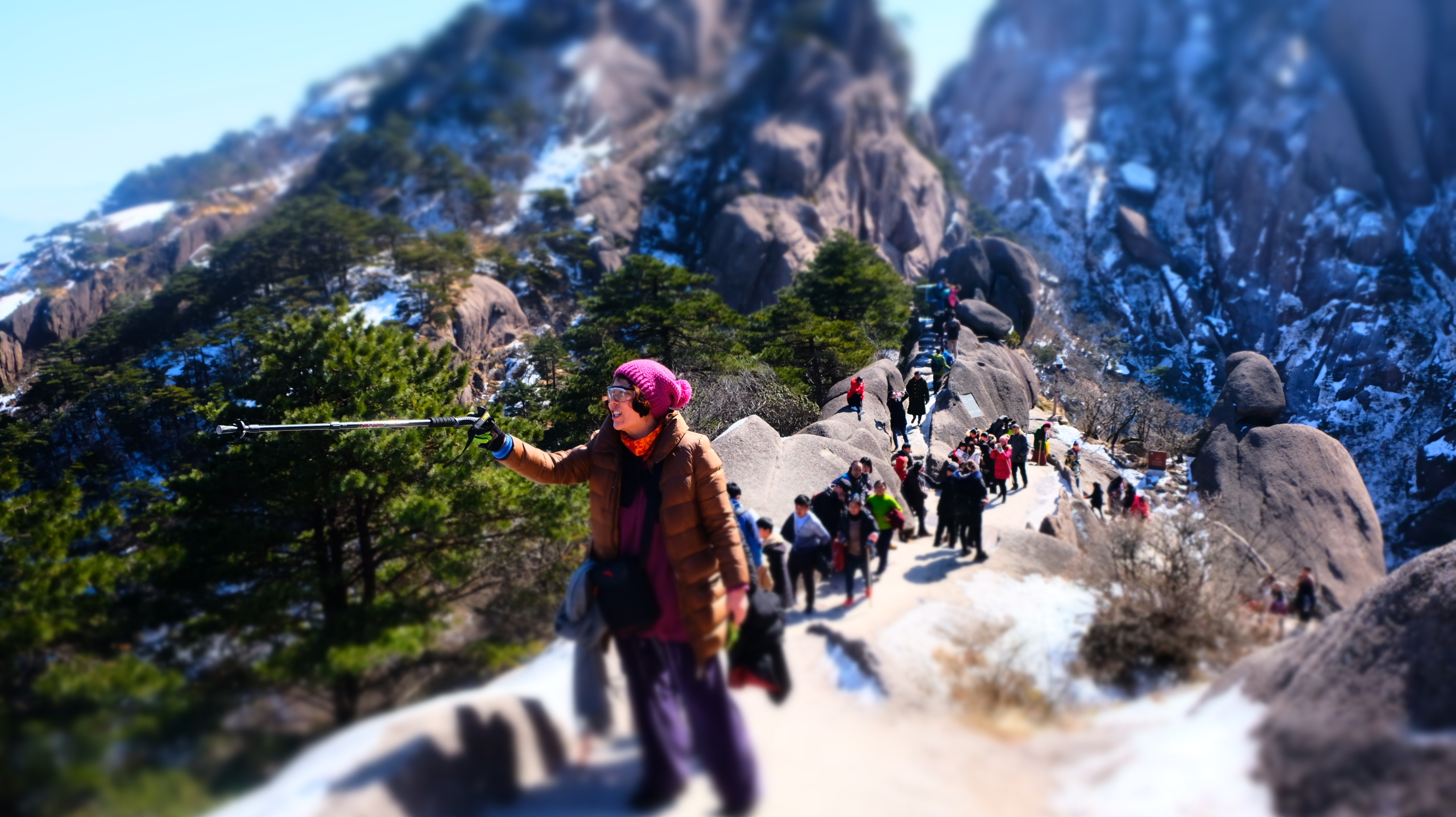 风景区光明顶又遇到了高姐,她也刚走完西海峡谷,不过路线和我稍微有点不同,而且损耗没我严重,感缘分奇妙,结伴向 北海 景区进发。