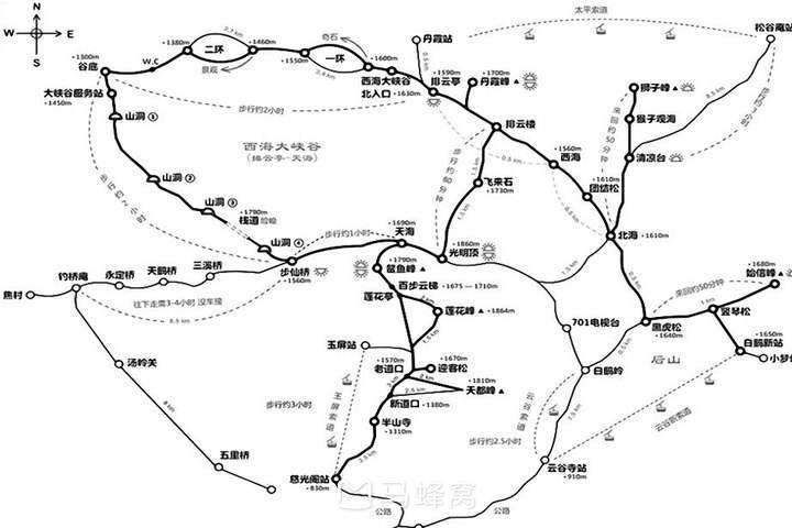 风景区小火车终点——天海站,从这里大概30分钟能走回光明顶,路上会经过白云宾馆。