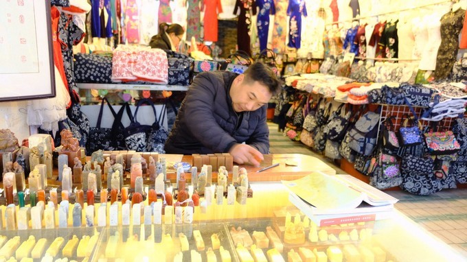 承志堂讲解完毕,跟着老先生一行继续走,经过小吃店,嘴馋,犹豫了几秒,还是算了,人多,怕一个耽误跟丢了。