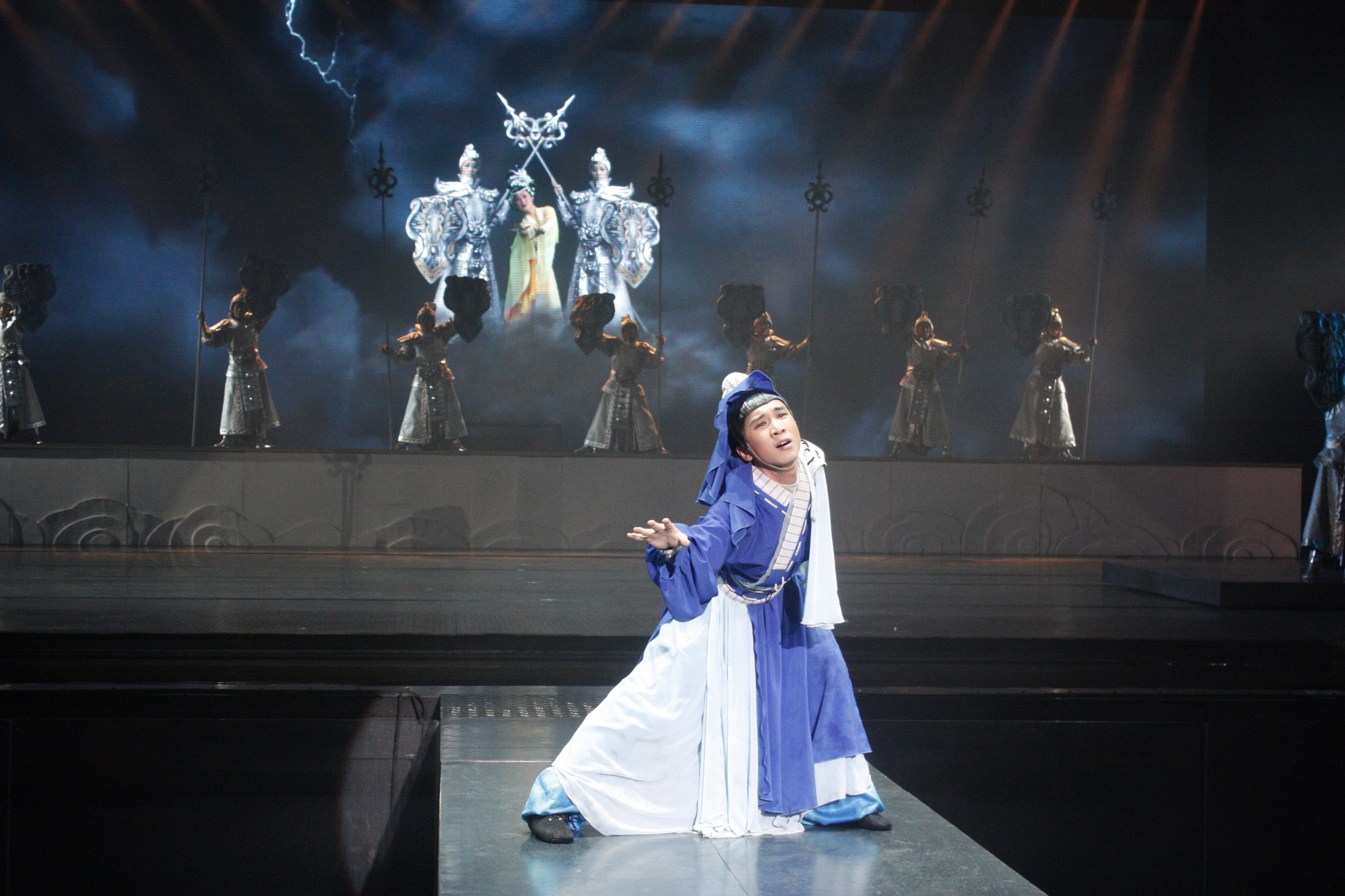 风景区石峰形同笔尖朝上的毛笔,峰顶巧生奇松如花,故名“梦笔生花”。