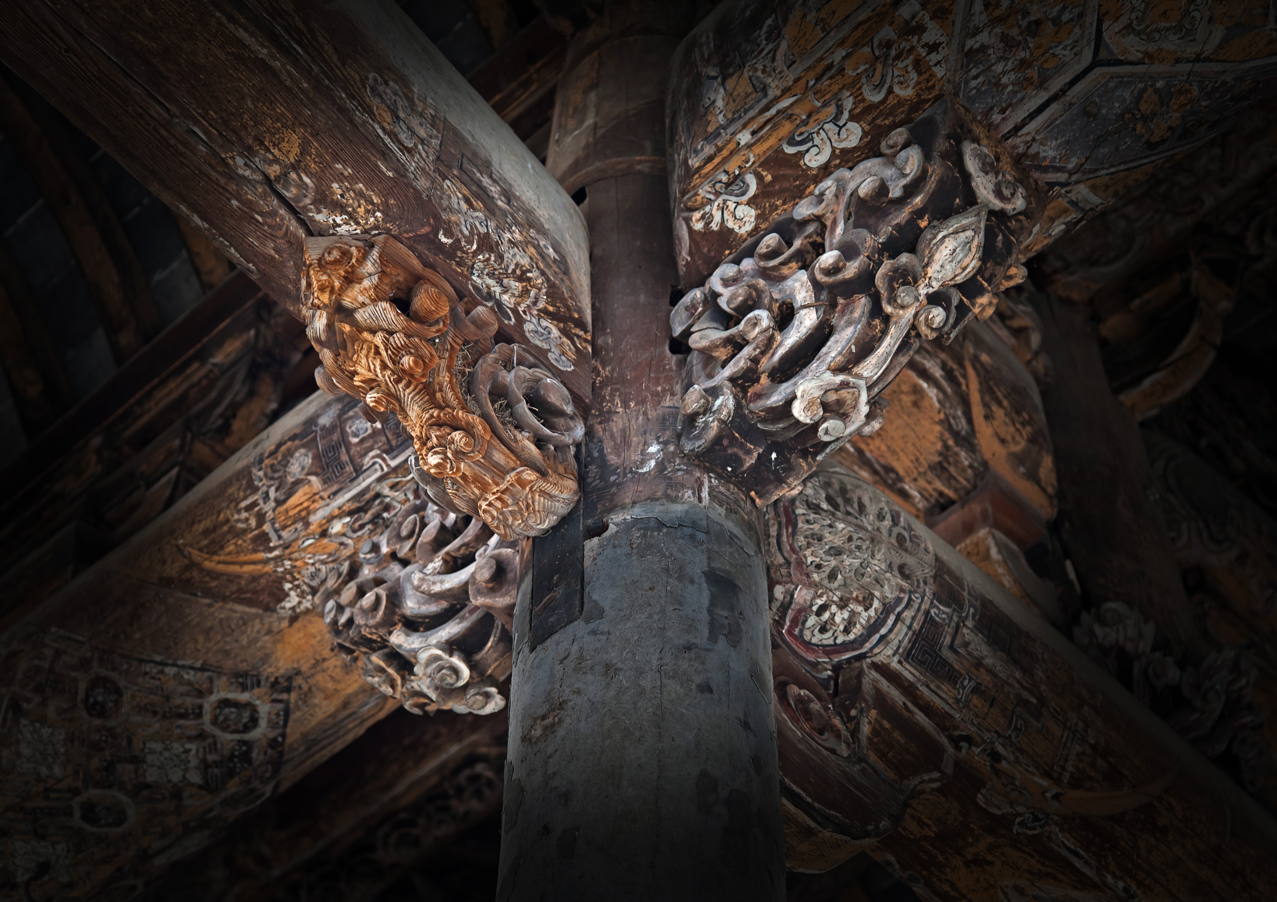 前厅是整幢房子中最精华的部分,这里的设计、布局、雕刻都有寓意。据说,汪定贵在经商发财之后曾捐了个“五品同知“的官衔,于是便增设了一道具有官家威严的中门(中门又称仪门,原为官署而设),一般只有在重大喜庆日子或达官贵人光临时才大开中门以示欢迎,而普通客人只能从中门两侧的边门入内。