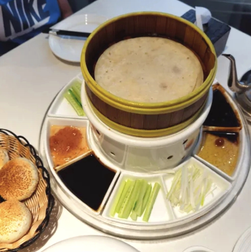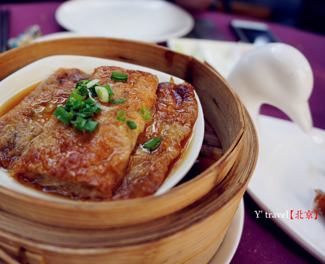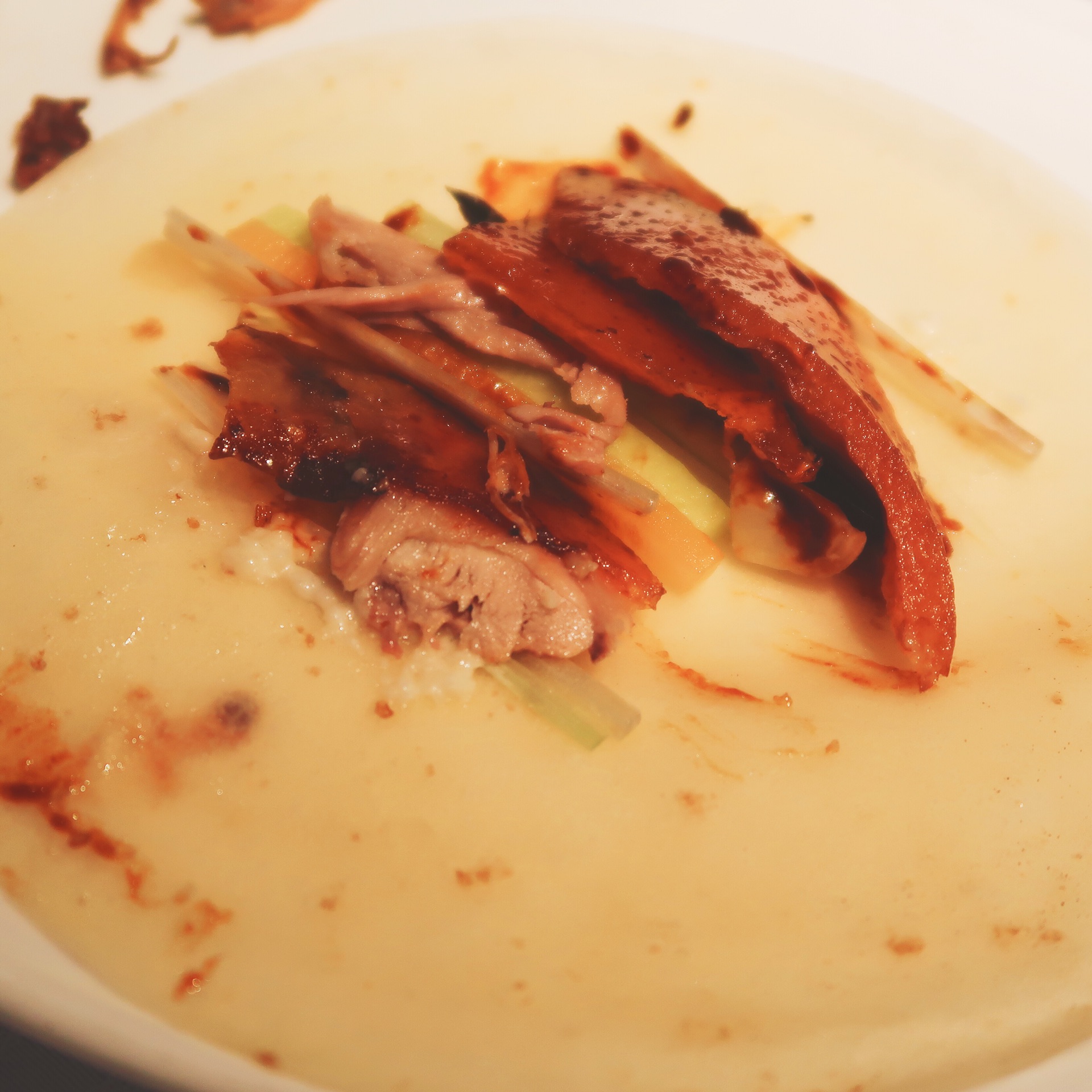 这个饼叫什么我记不住了,非常脆,中间夹鸭肉和那几种蘸料,相比之下我还是喜欢普通荷叶饼卷着烤鸭吃更有味。