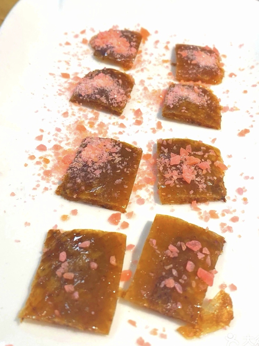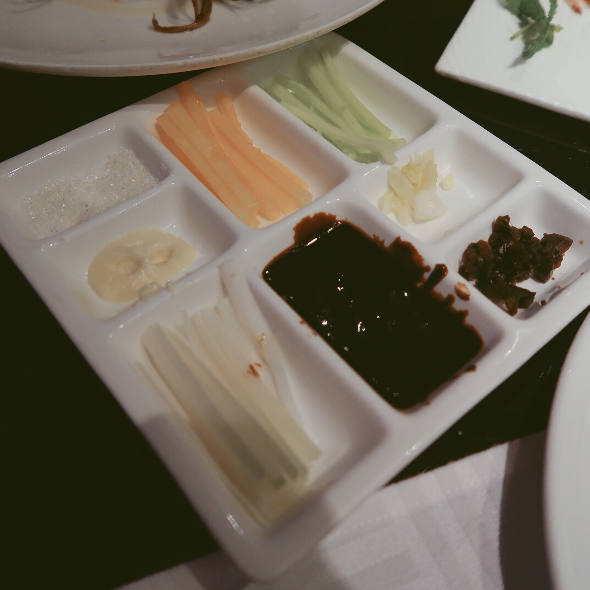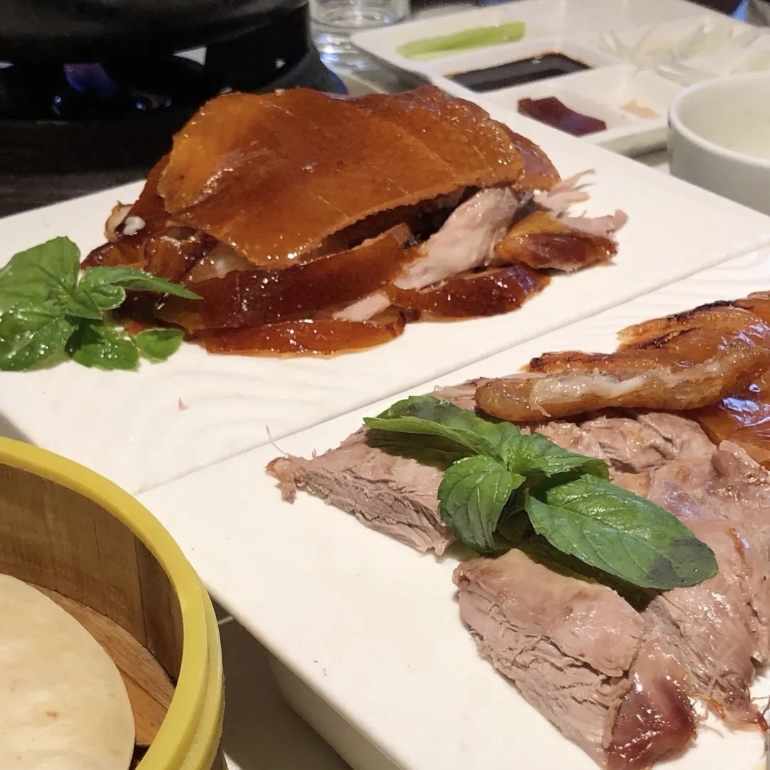 独特的创意融合菜,摆盘精美…虽然不是传统意义上的菜餐厅,烤鸭却成为必点菜之一…他家烤鸭跟别家的制作方法没差,吃法却不同…配有四种不同口味的蘸酱,传统甜面酱、沙拉酱、创新甜面酱、桂花酸梅酱…可以满足不同口味人的味蕾…