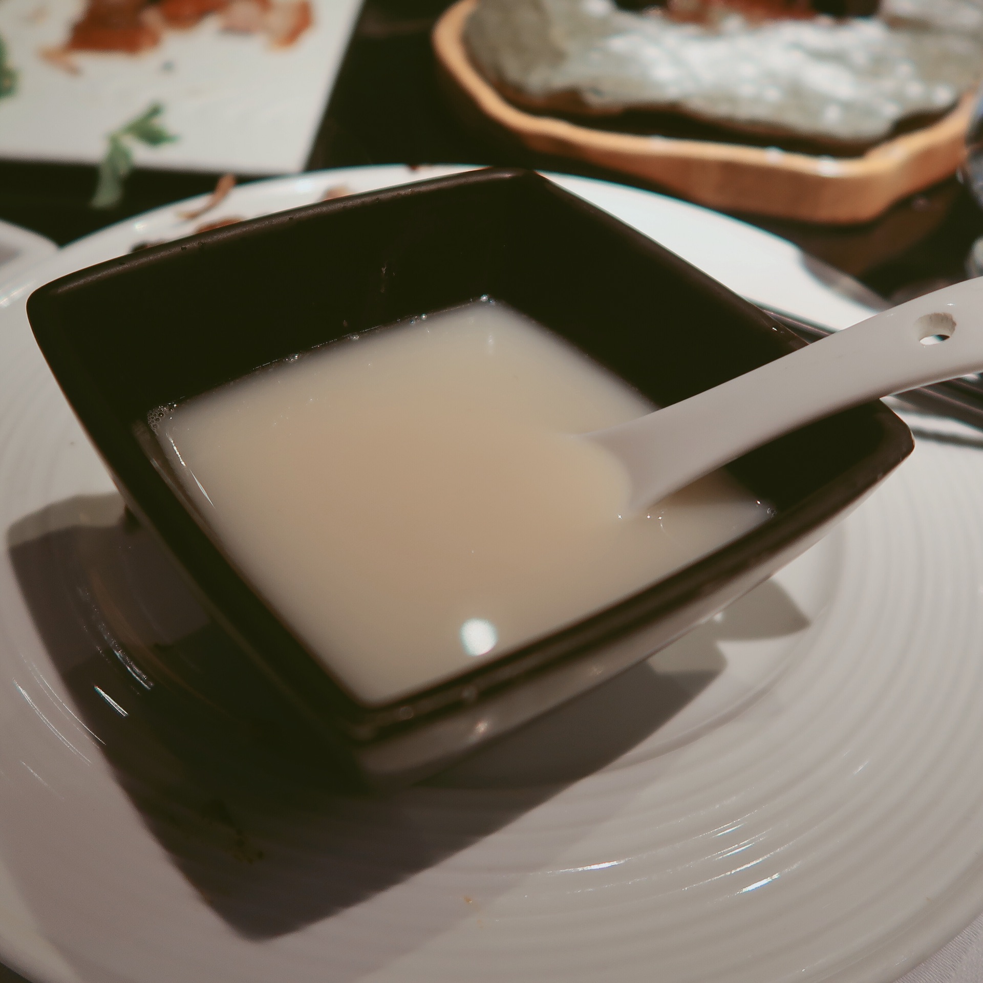 「鸭架汤」「鸭架汤」相比于全聚德跟你上一大盆,大董的一小碗实在是太显“精致”了些,虽然你喝完了服务员会及时给你再上一碗。至于汤的味道,乏善可陈。