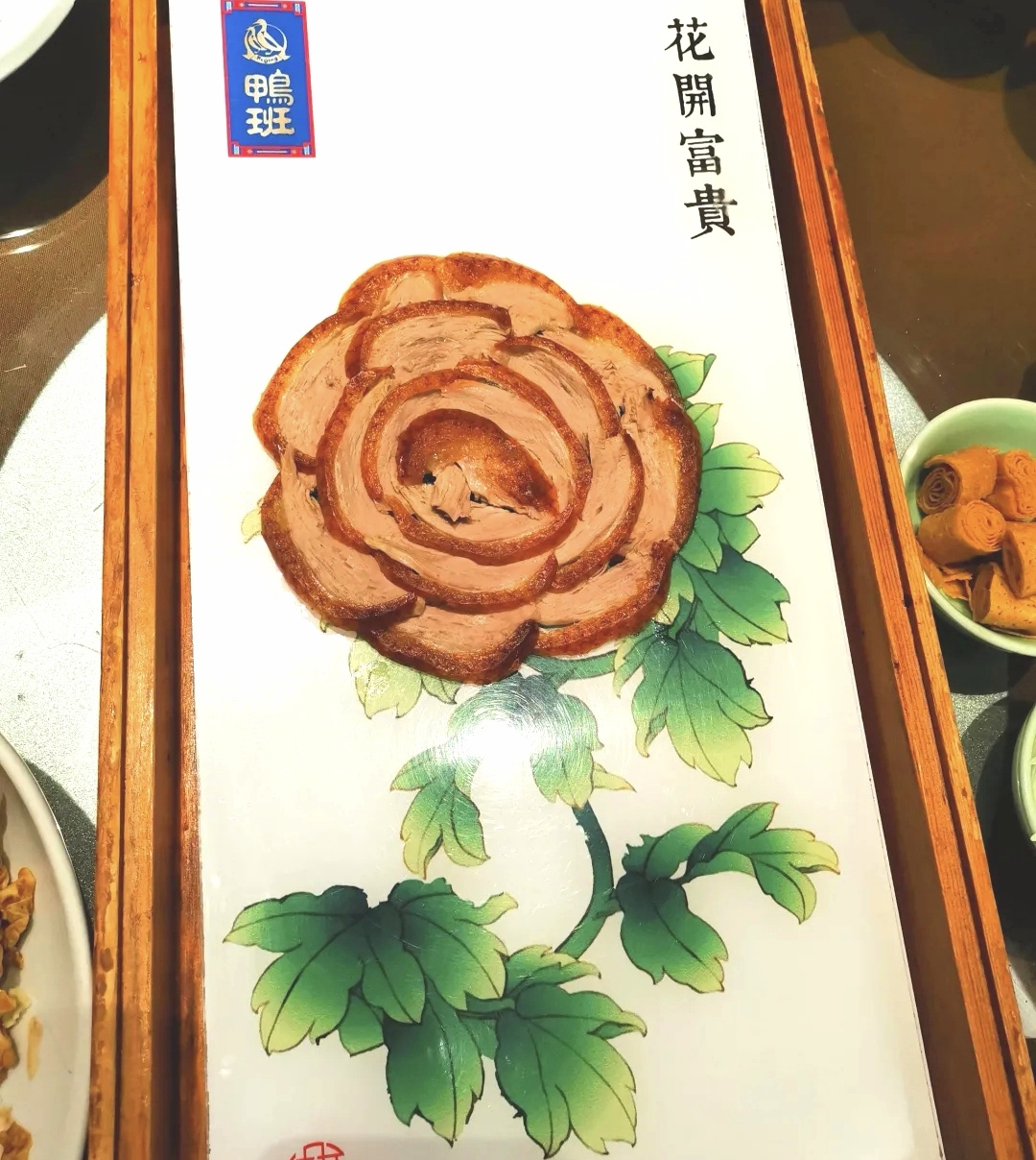 还有创意十足的繁花似锦,花开富贵等烤鸭创意菜。让人不忍心破坏她的美!