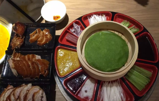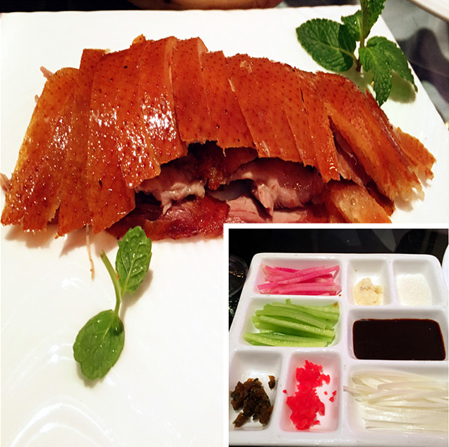 你吃过蘸跳跳糖的烤鸭么...这里就有~在他家你可以选择卷了烤鸭裹了山楂条再涂上蓝莓酱和跳跳糖,味道也是超级惊艳,绝不黑暗料理~不过有一首关于烤鸭的八荣八耻格言,每次看都好像是专门为了黑他家写的2333333:以外皮酥脆为荣,以油多绵软为耻以肉嫩多汁为荣,以肉柴费牙为耻以葱丝瓜丝为荣,以跳跳糖果酱为耻以烫面春饼为荣,以死面发面为耻以果木炉烤为荣,以电烤箱转来转去为耻以面酱为荣,以芥末酱为耻