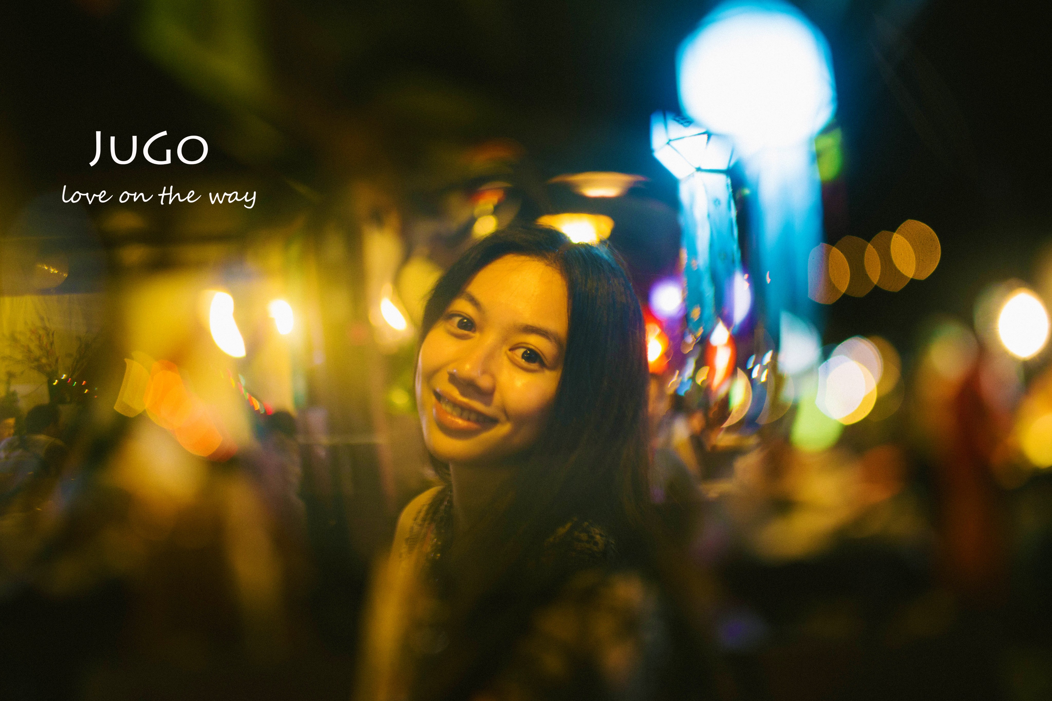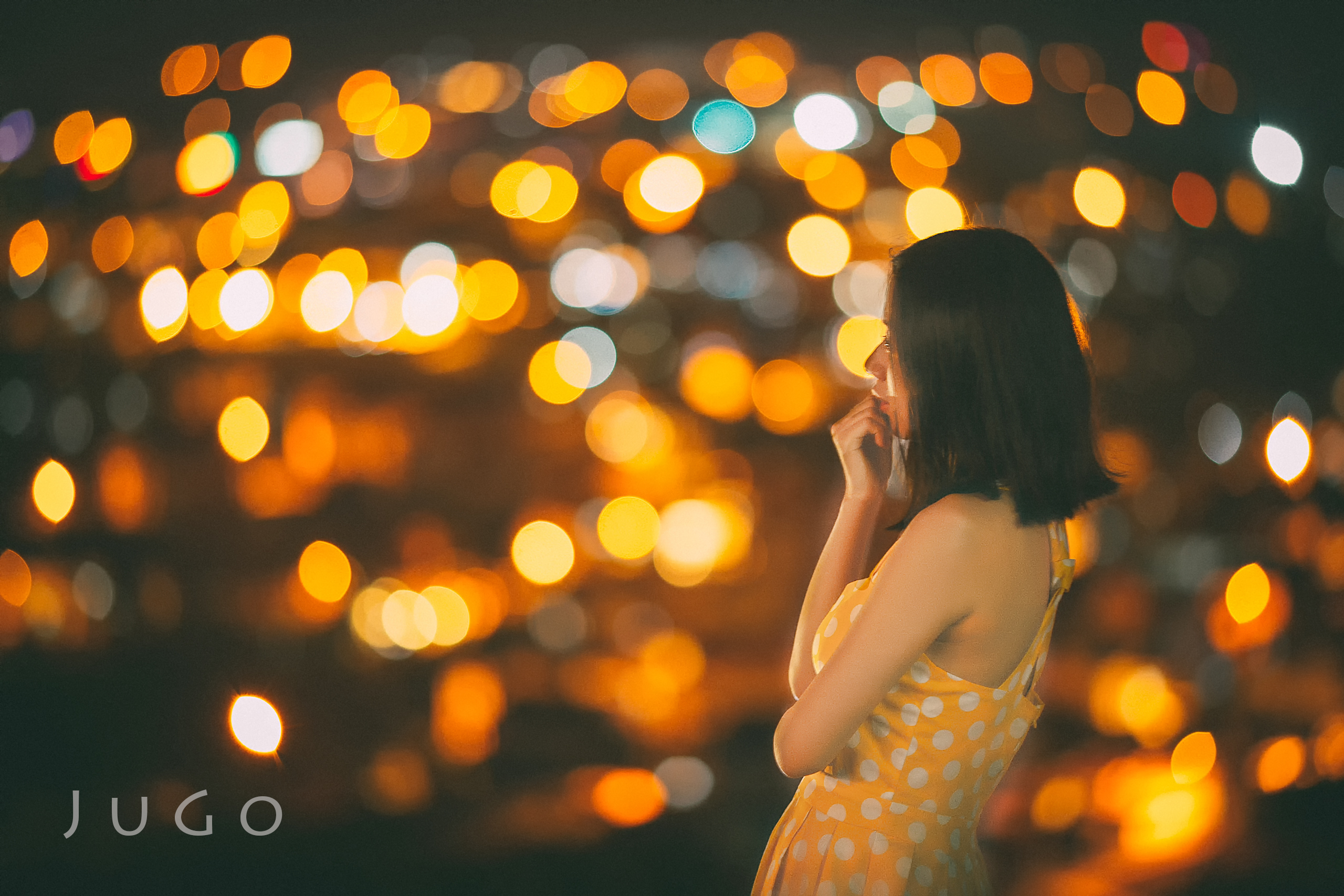 大光圈拍摄夜间人像可以拍出绚烂的光斑。