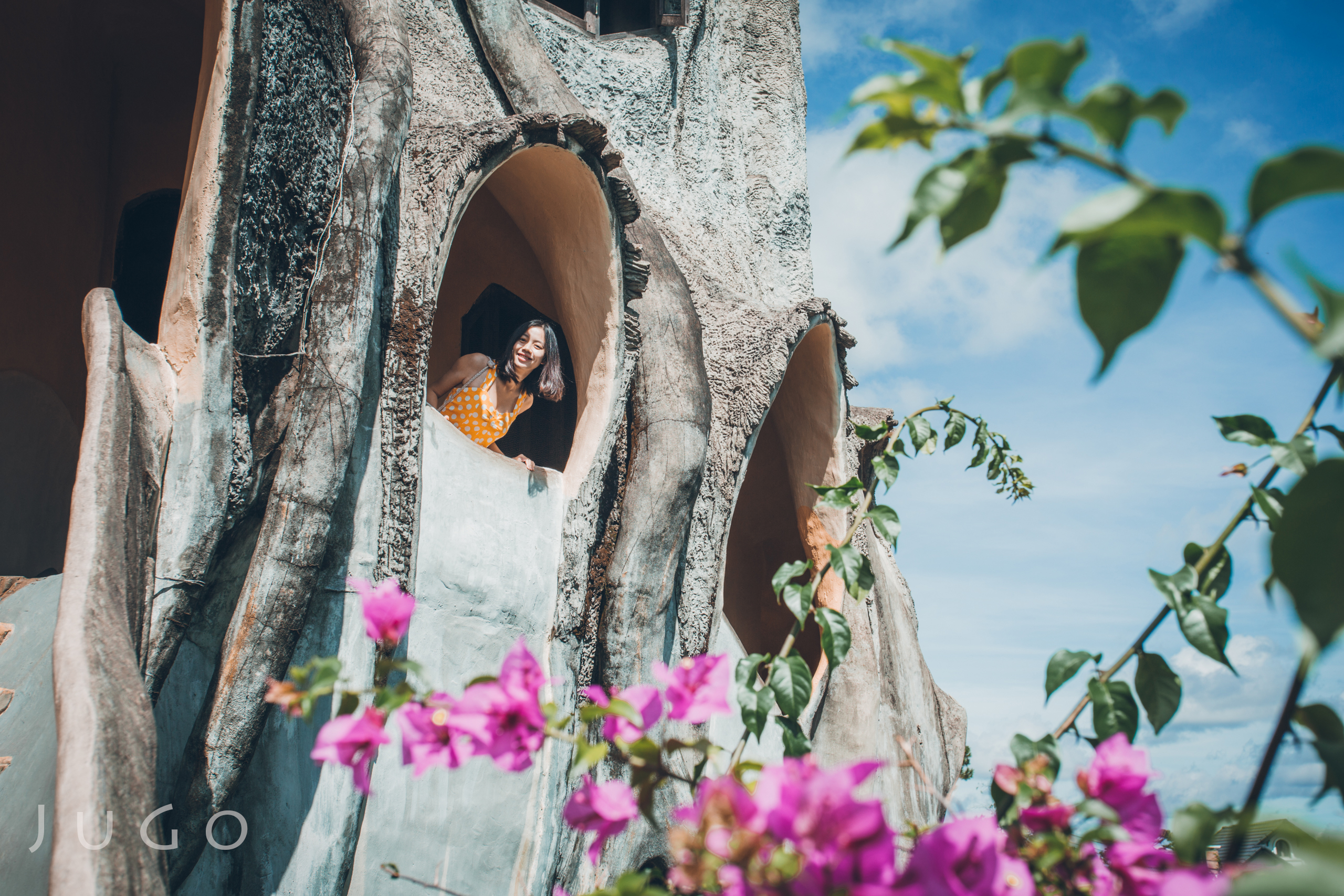 用三角梅作为前景,让照片有层次有多了点趣味。