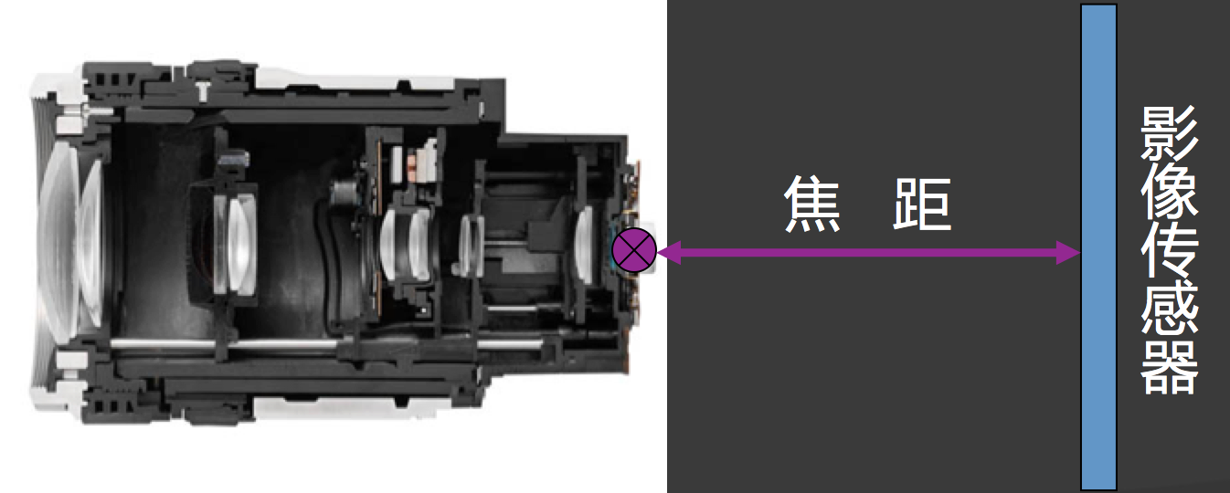 镜头的焦距基本上就是从镜头的中心点到图像传感器上所形成影像之间的距离。