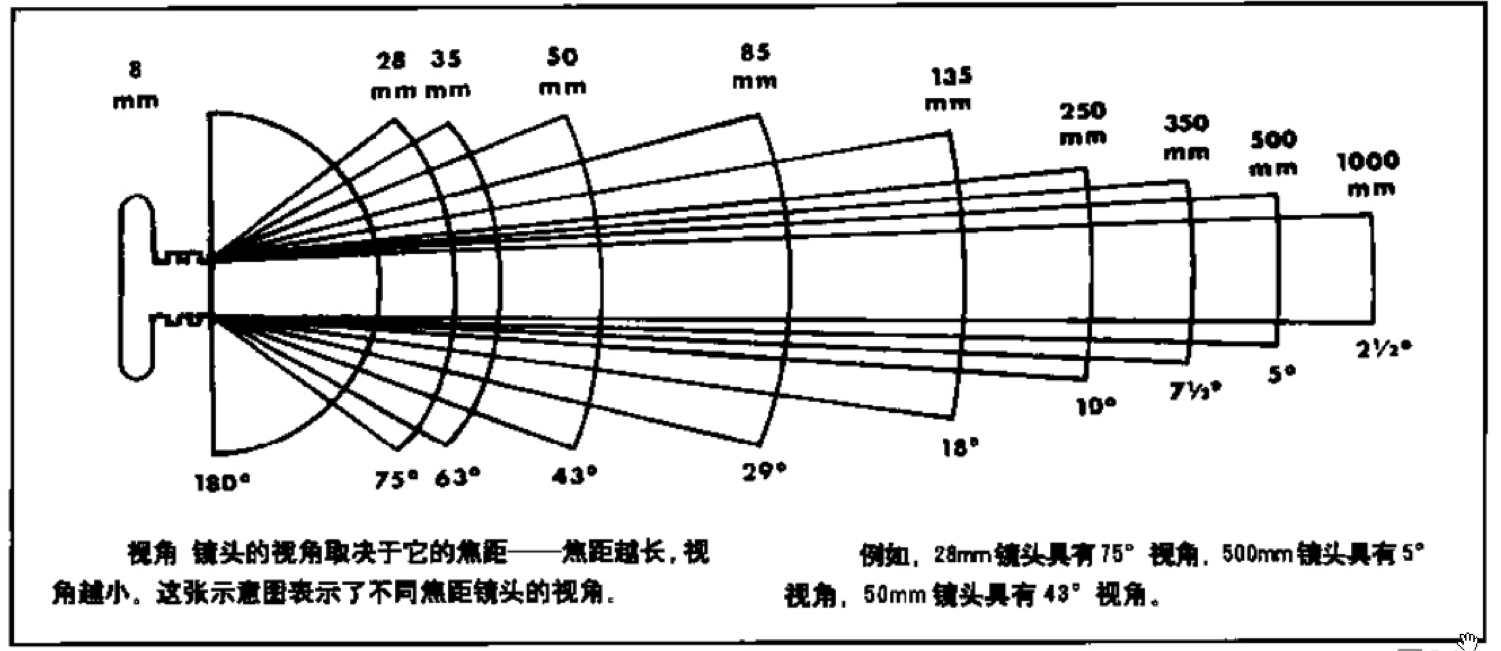 焦距越短,视角越大;焦距越长,视角越小。