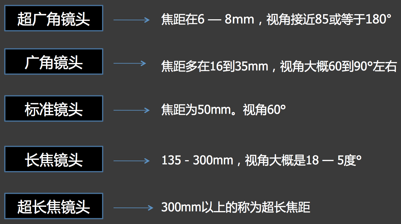 所以根据焦距划分镜头功能如下: