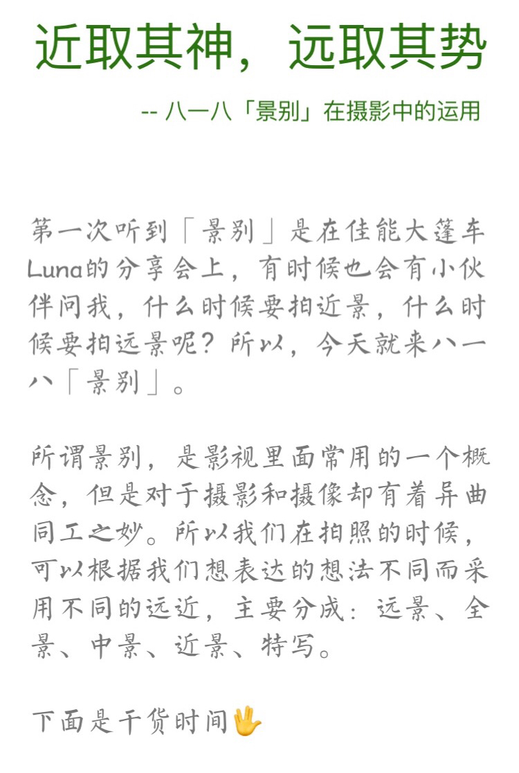 其次是景别~一张照片可远可近,可大可小~