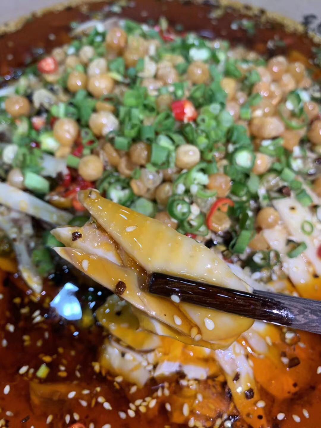 花和尚醉腰花,值得一提的是他们家的腰花不仅花刀漂亮,关键是处理得好,一点膻味儿都没有,整个口感是十分嫩滑的,加入的孜然让整道腰花多了一种吃烧烤的感觉,又麻又辣又香,越吃越爽,一直吃一直爽的那种。
