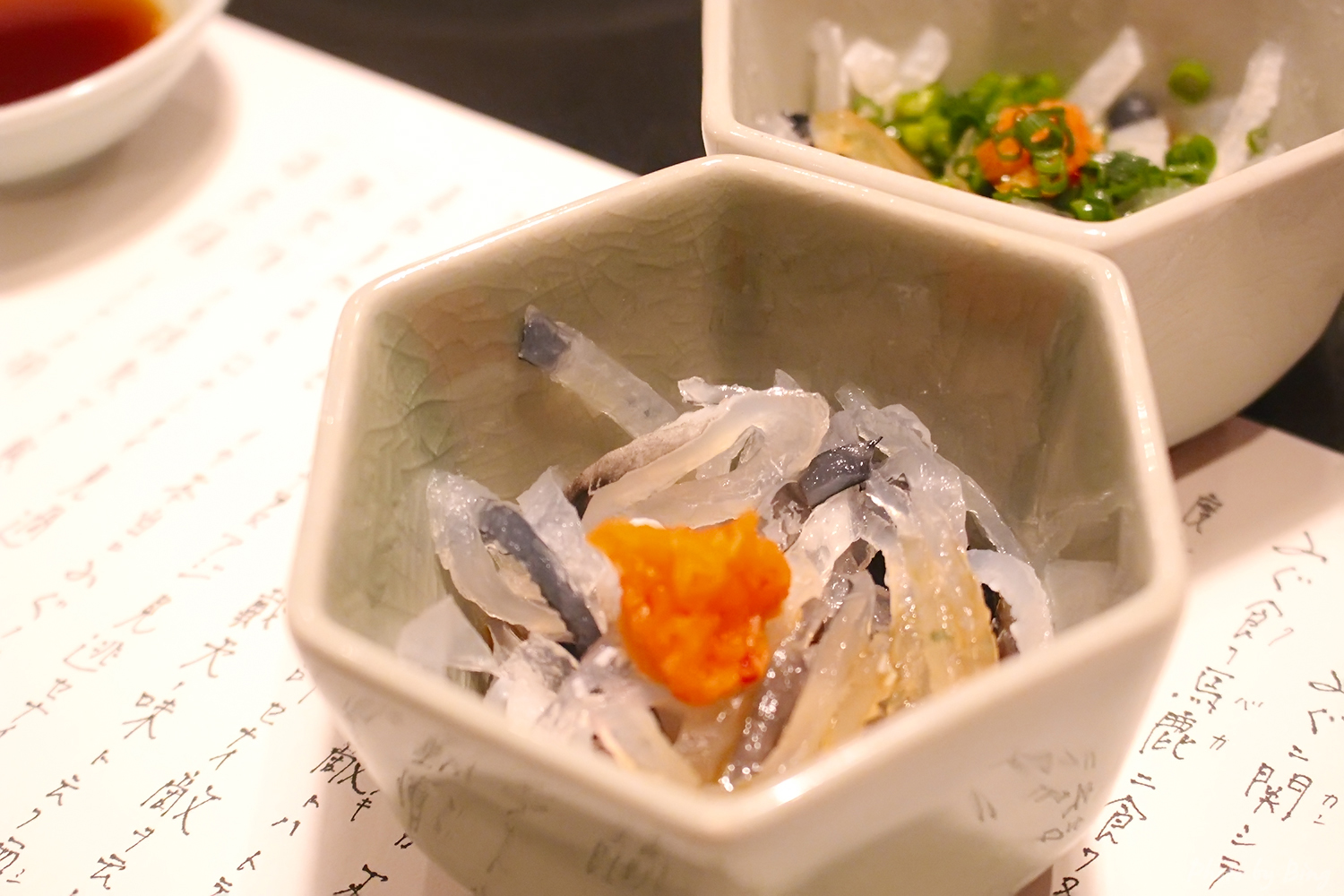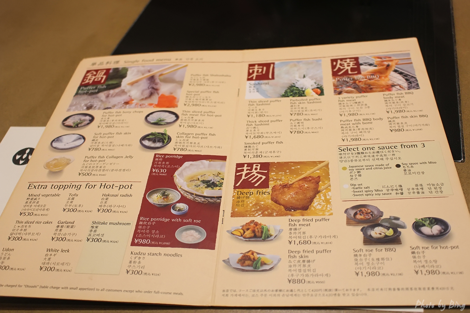 顺便一提,食用河豚肝脏具有一定的危险性,一般店家是不敢明目张胆拿出来卖的。这家店也没有把肝脏写在菜单上,大约是只送给投缘的食客吧。