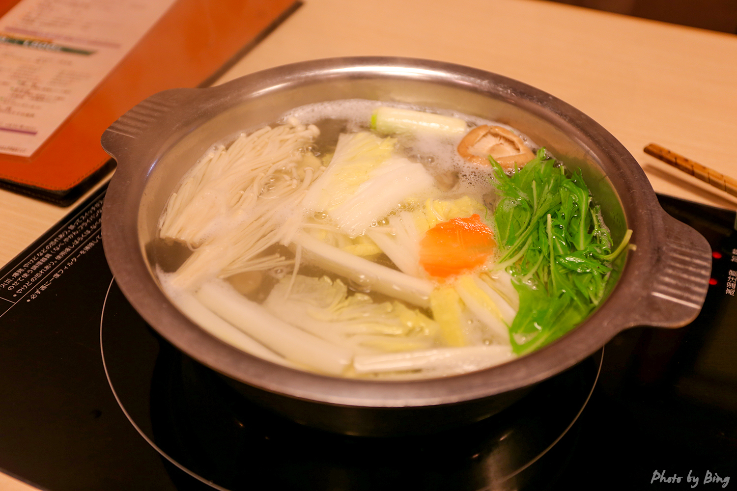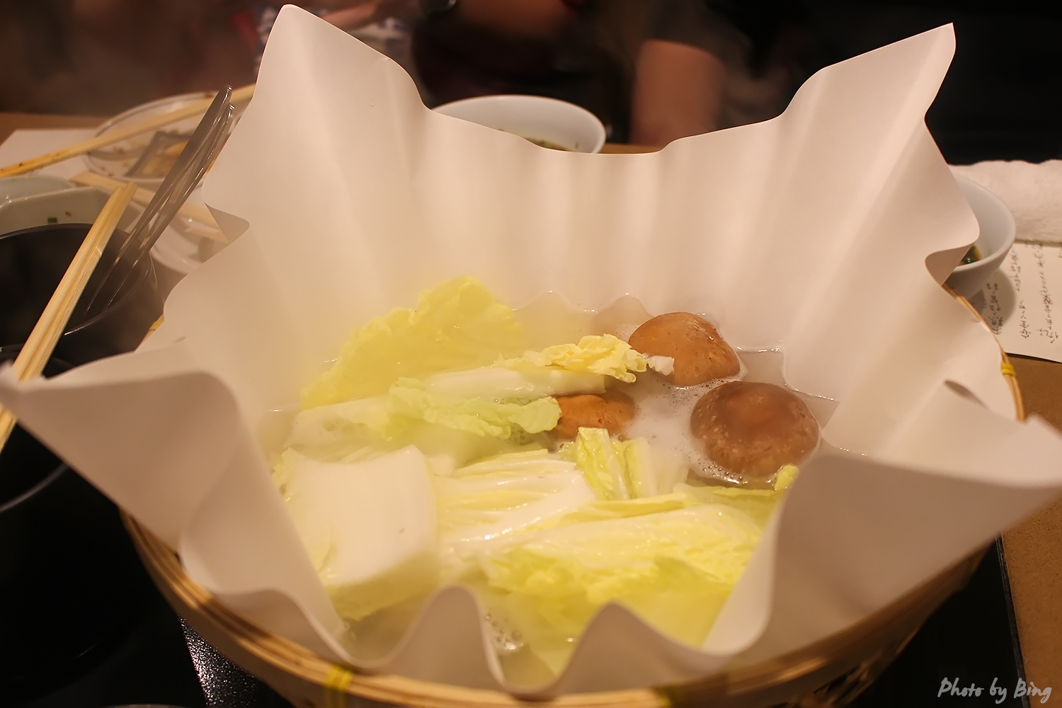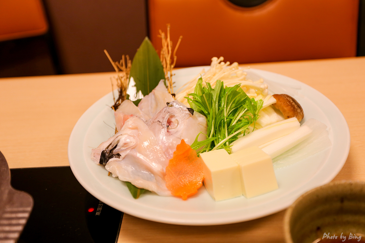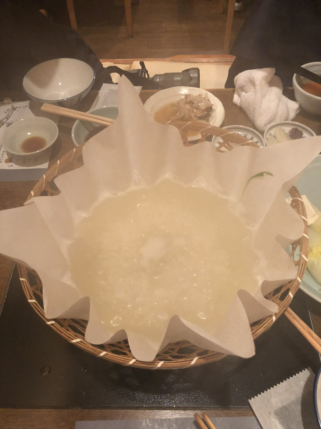 到了河豚火锅的环节。唔,这股鲜味儿是怎么回事。连煮过河豚肉的汤都带着鲜味,一起下锅的蔬菜和粉也变得更好吃了。