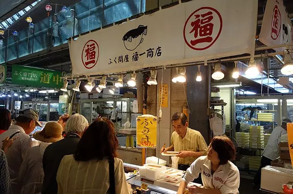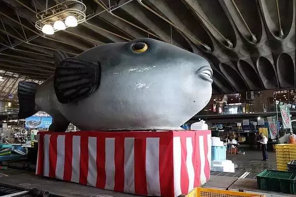 重要的河豚批发市场。每逢周五至周日或者节日期间,这座批发市场会被改为观光市场,出售价格便宜的各类海鲜料理,其中最受游客追捧的自然是河豚。在唐户市场这样的高性价比之地,即使把河豚刺身、河豚寿司、白子(即河豚精巢)军舰寿司、河豚粥都挑上一份,所费也不过百来元人民币。除了河豚之外,海胆、鲸鱼、鲷鱼、乌贼等也是下关的海鲜名物。在唐户市场里溜达一圈,胃口不大的人很快就会被填饱了。