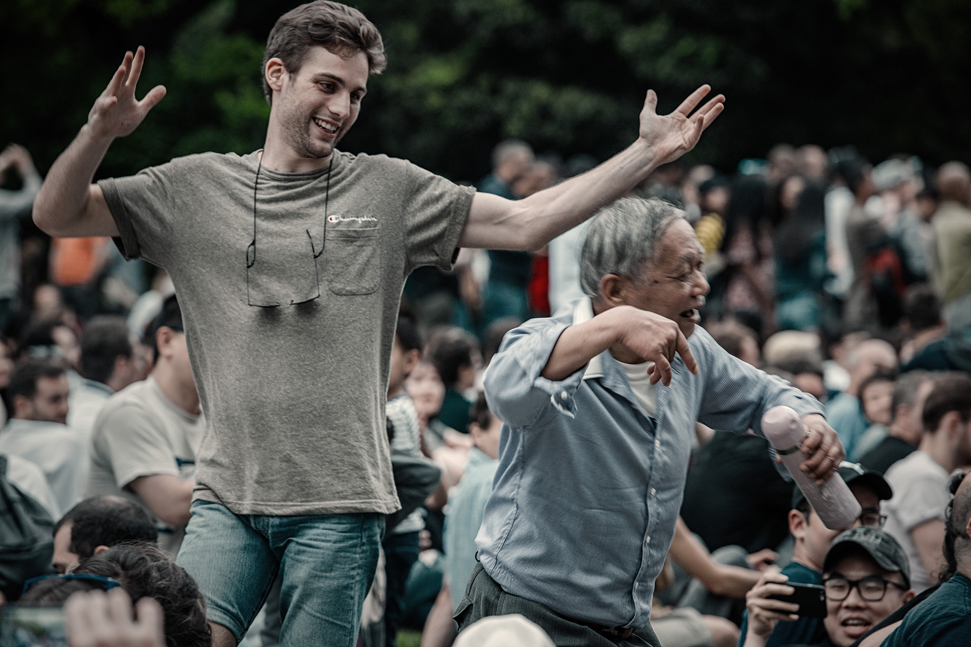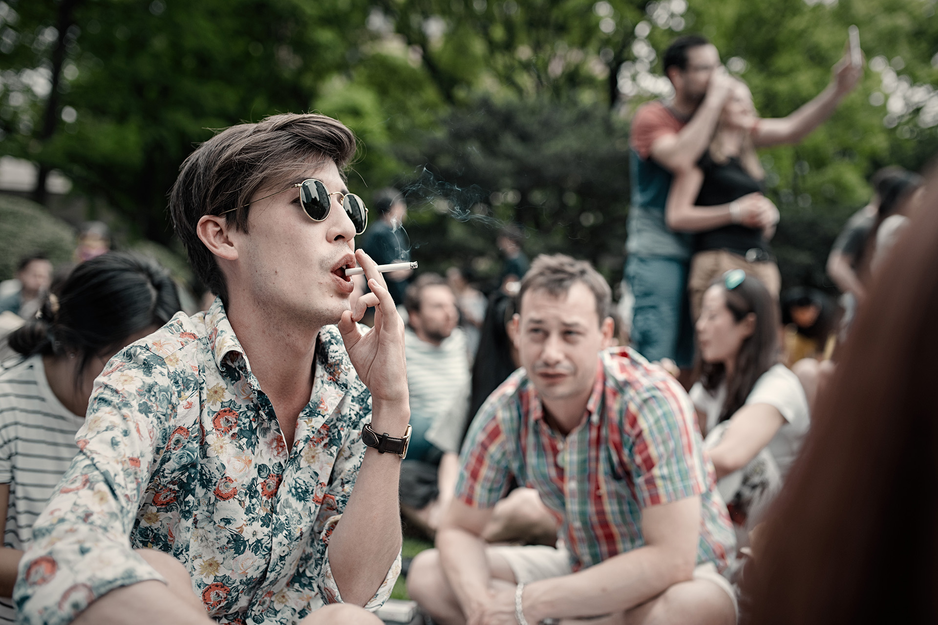 上面这张是我看到一个只有一条腿的人在演奏手风琴,而他对面有一个女生静静蹲着听他弹琴。
