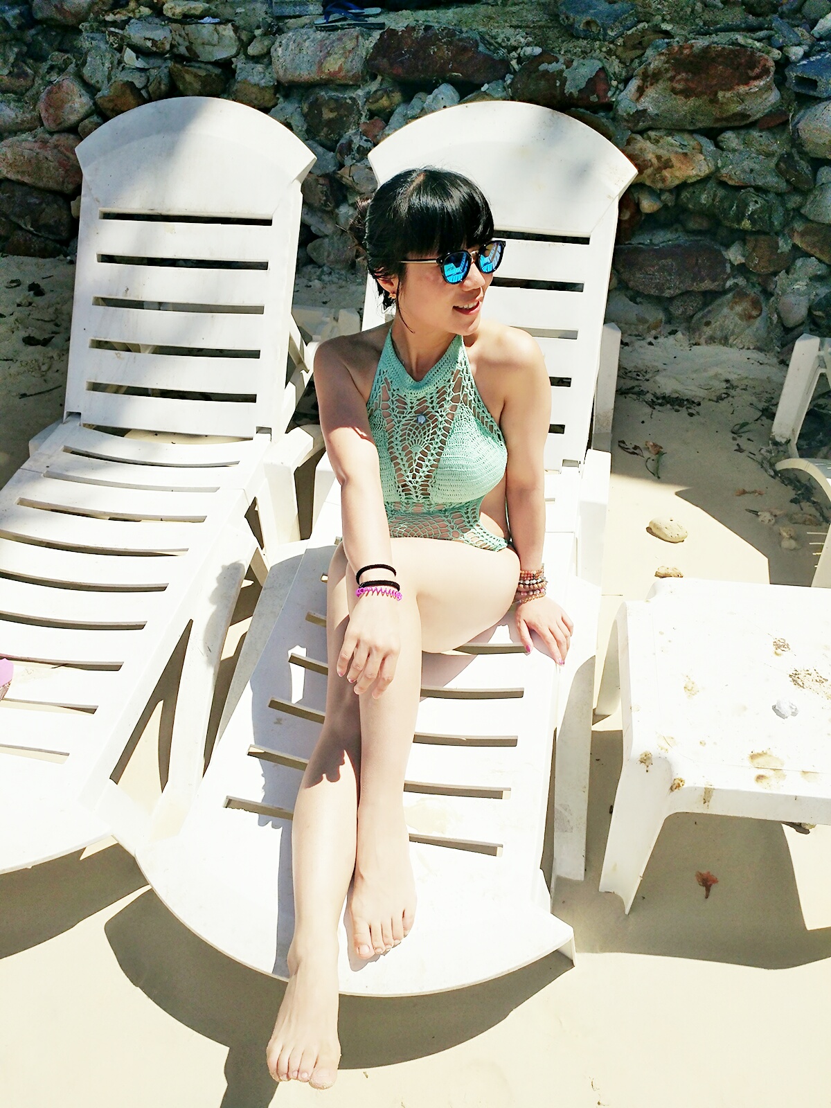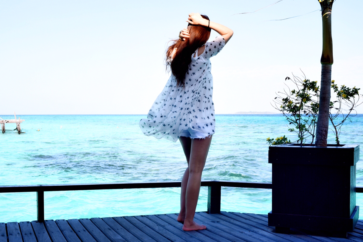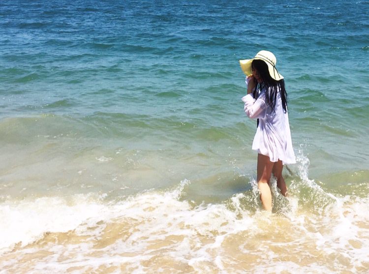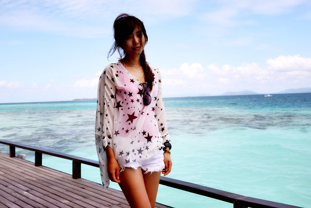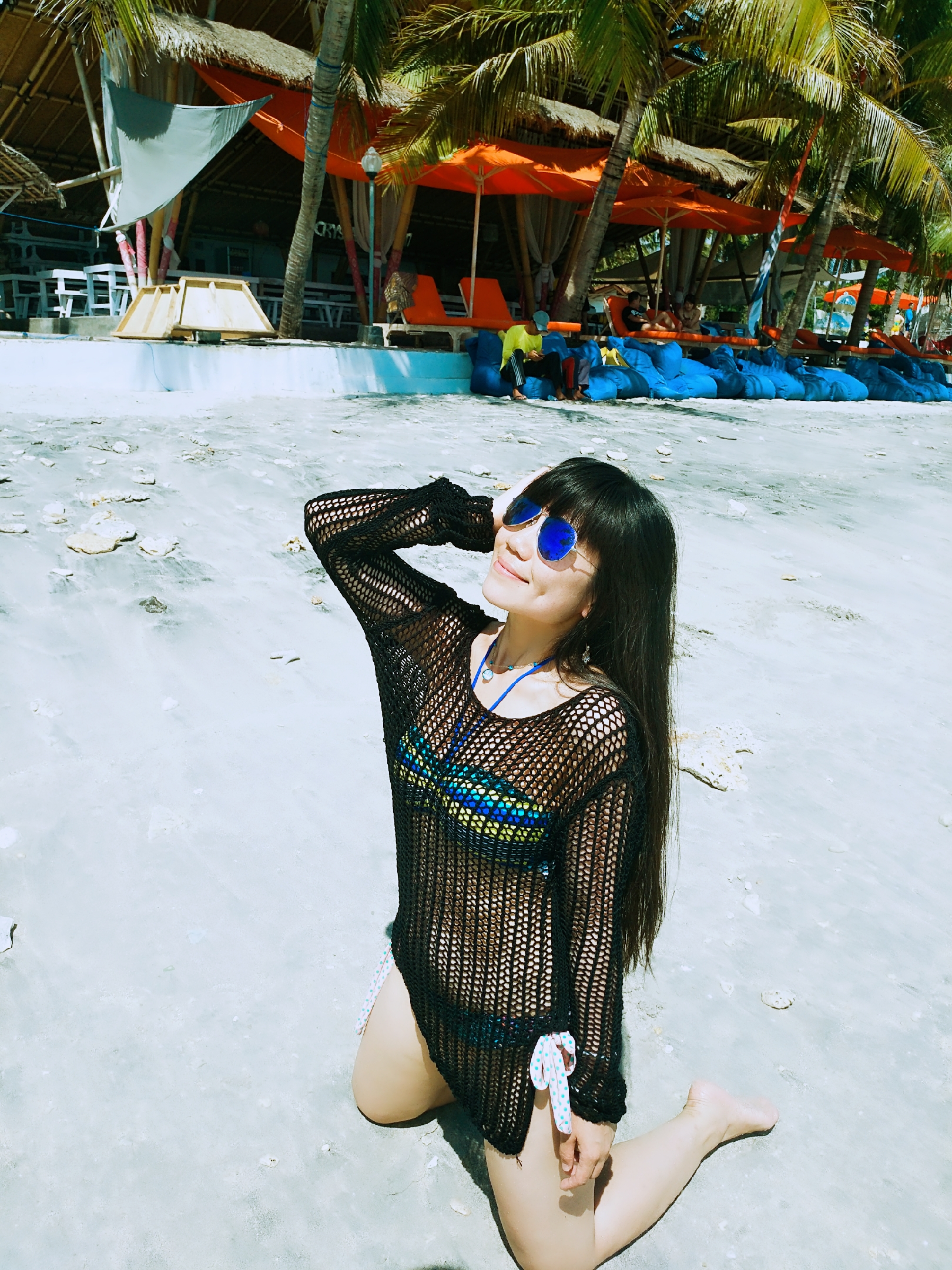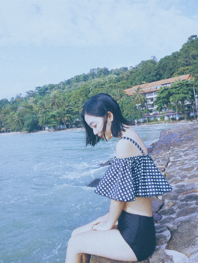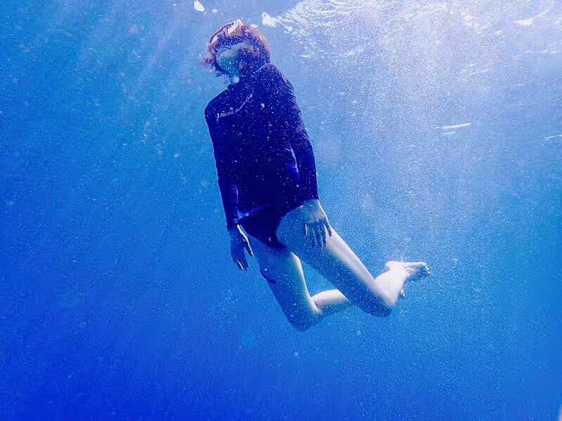 当地买的防晒衣,里面穿比基尼,若隐若现有点小性感哈哈~如果穿比基尼拍照害羞,穿着防晒衣下水拍出来也很不错~