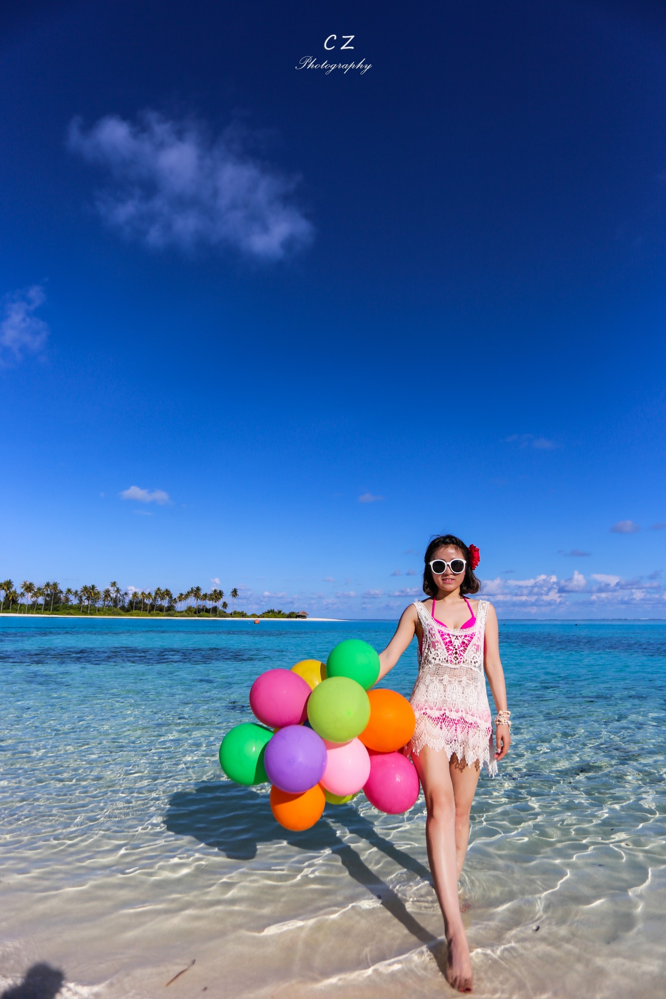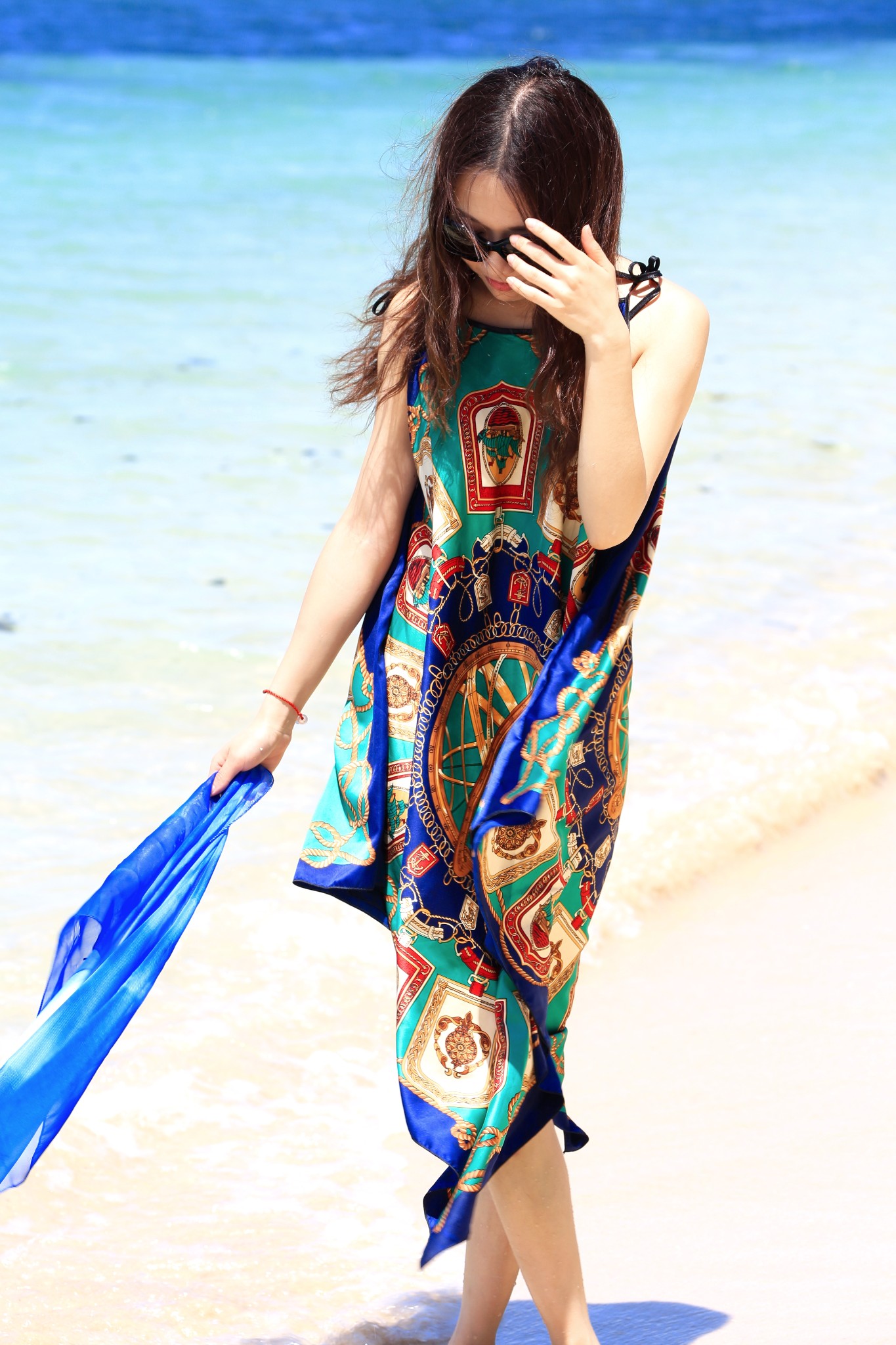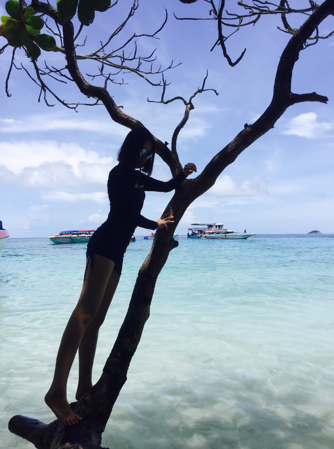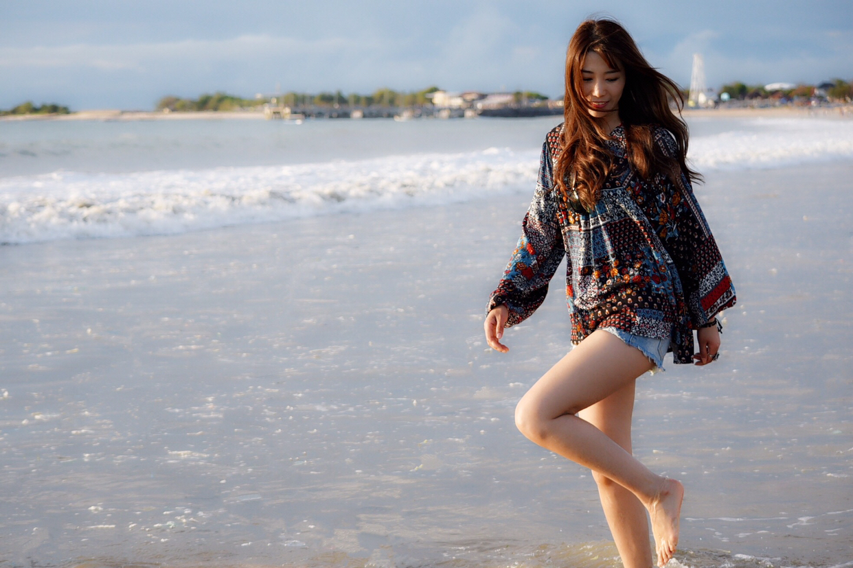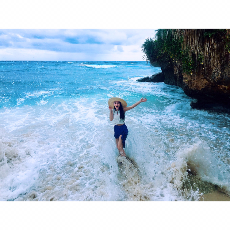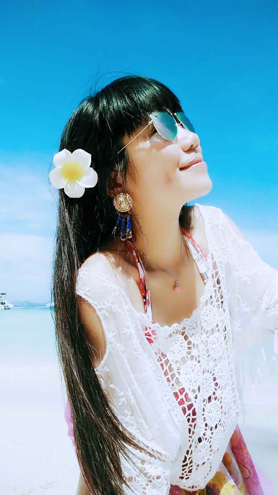 当地买的防晒衣,里面穿比基尼,若隐若现有点小性感哈哈~如果穿比基尼拍照害羞,穿着防晒衣下水拍出来也很不错~