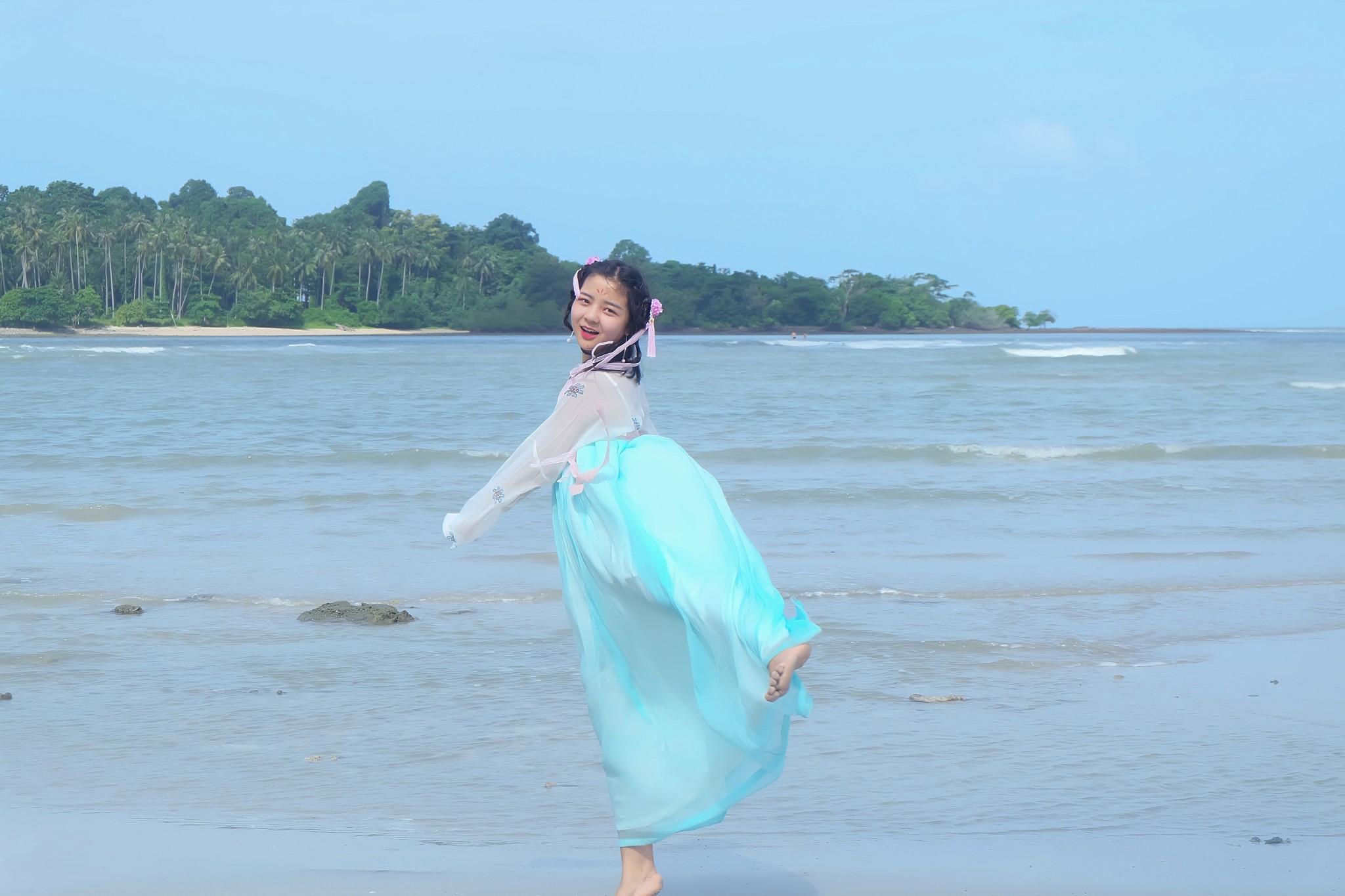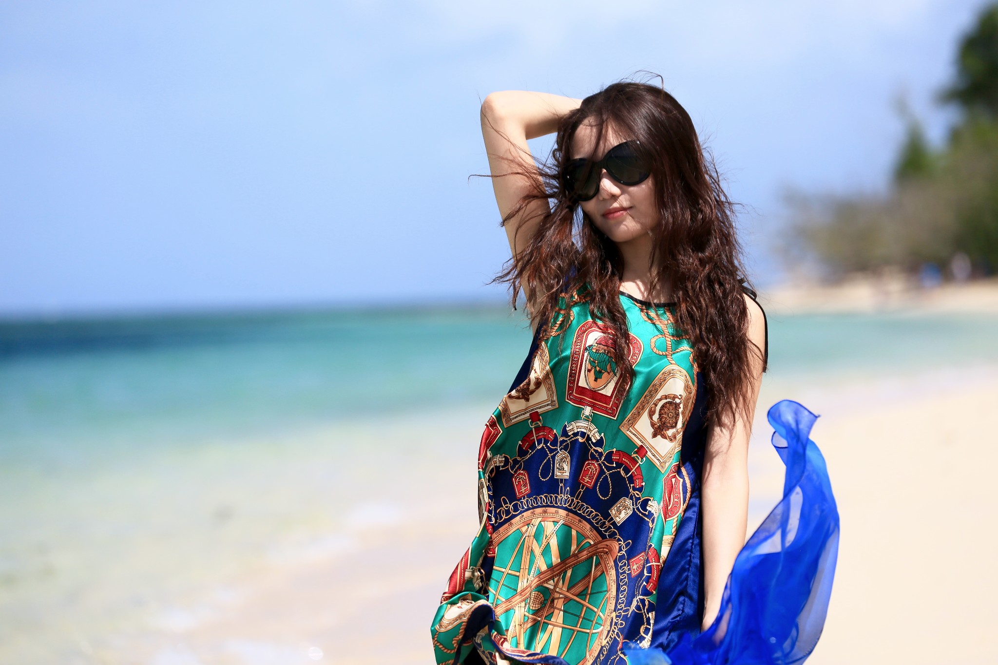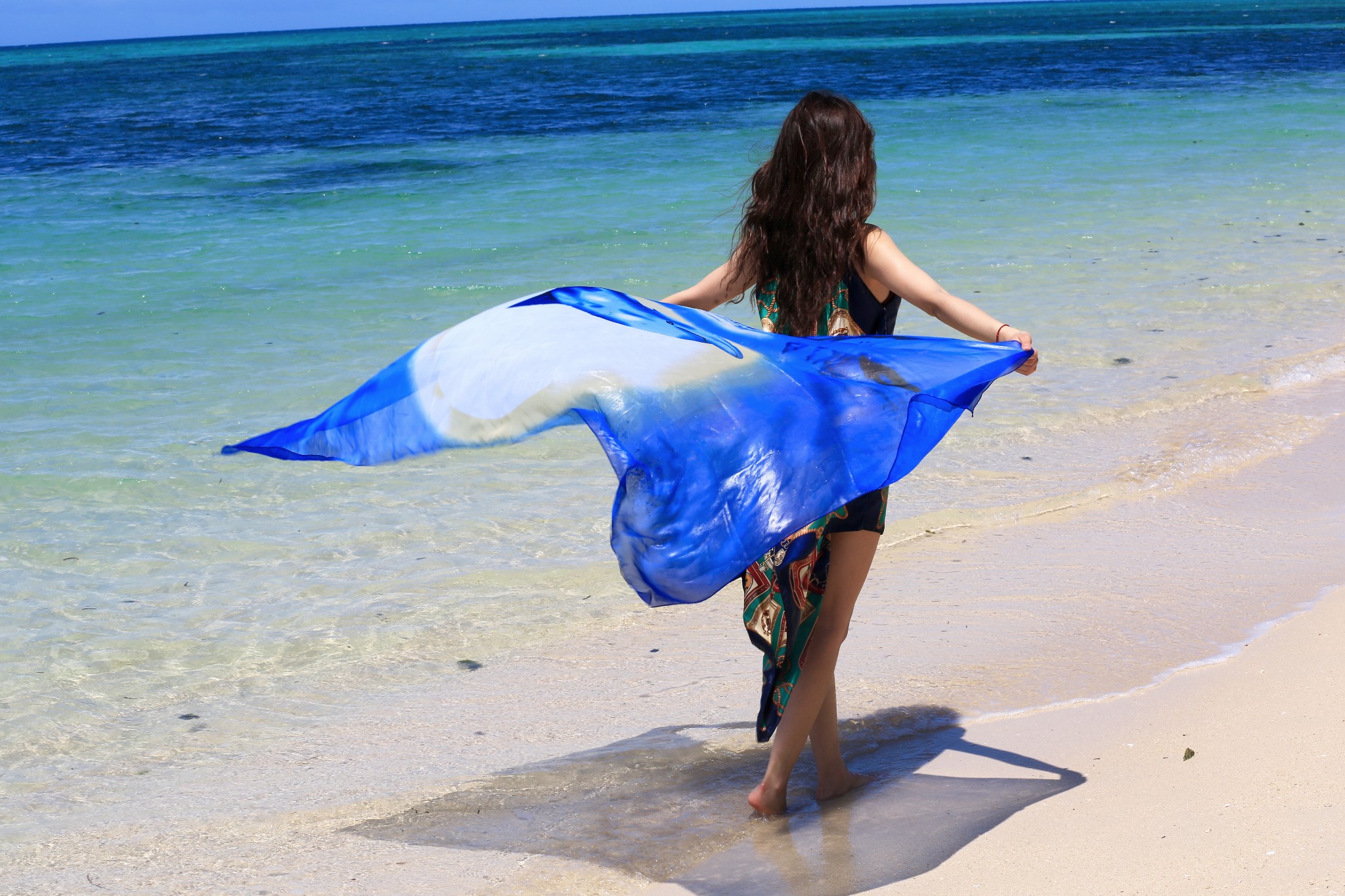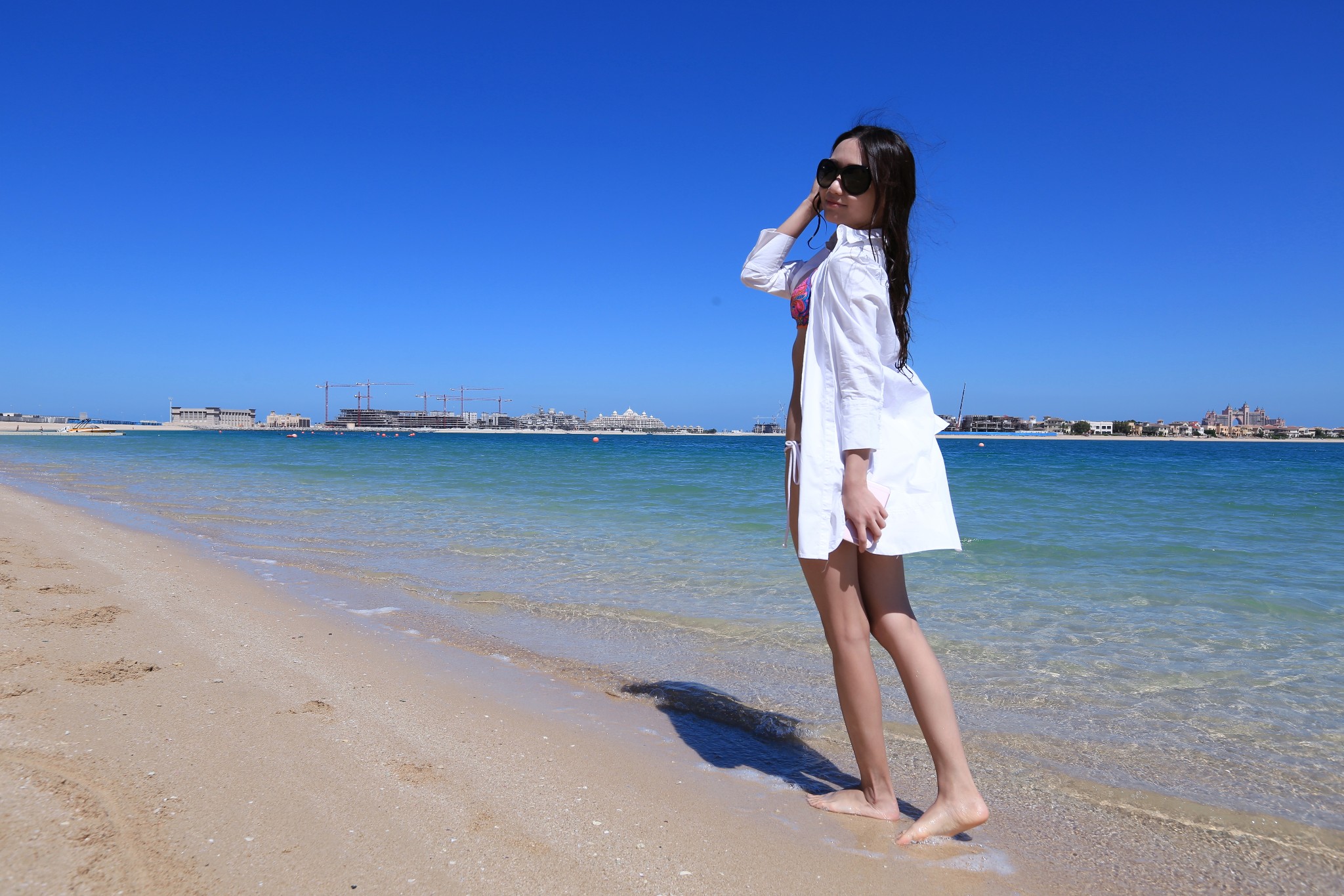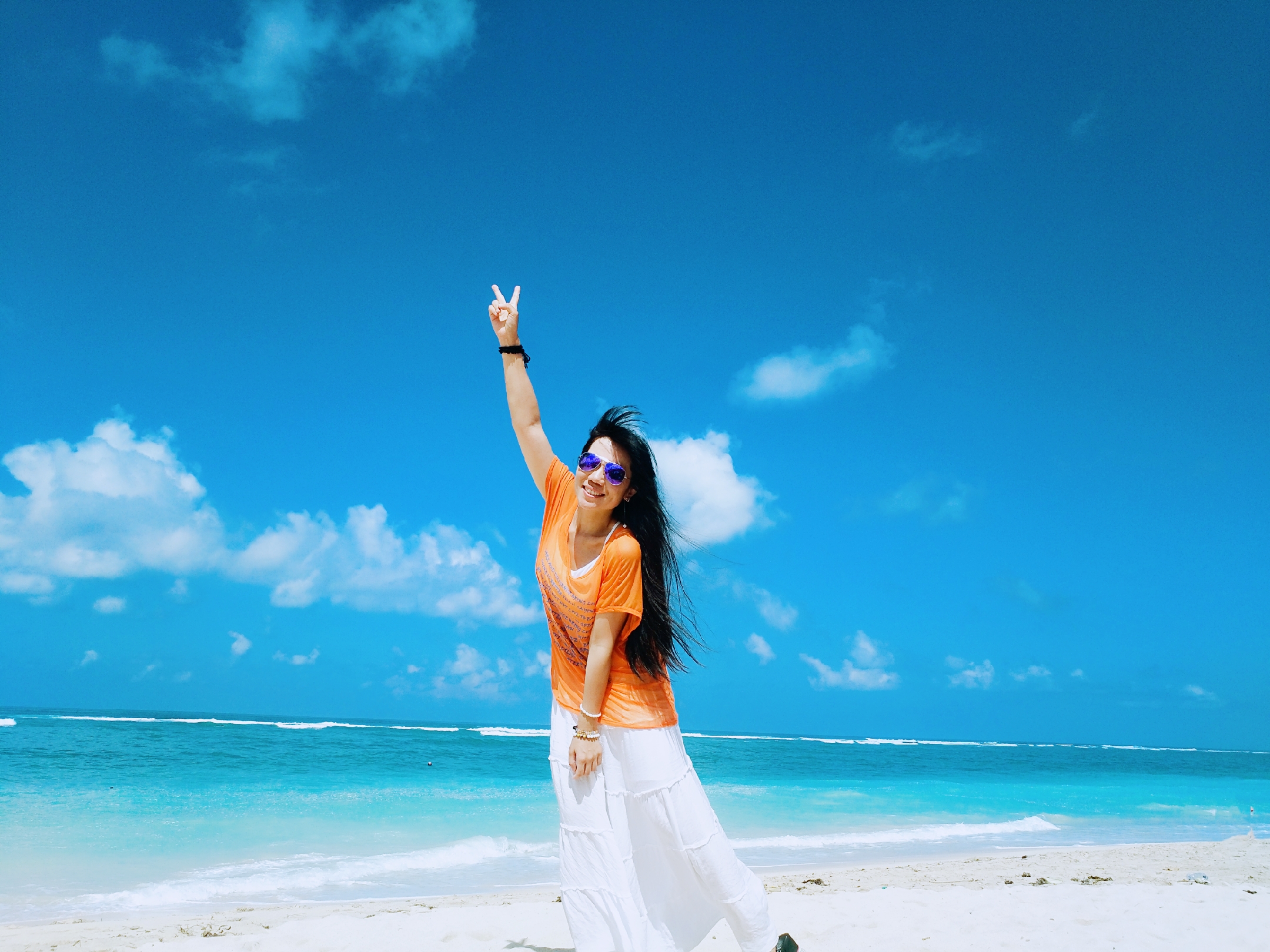 当地买的防晒衣,里面穿比基尼,若隐若现有点小性感哈哈~如果穿比基尼拍照害羞,穿着防晒衣下水拍出来也很不错~