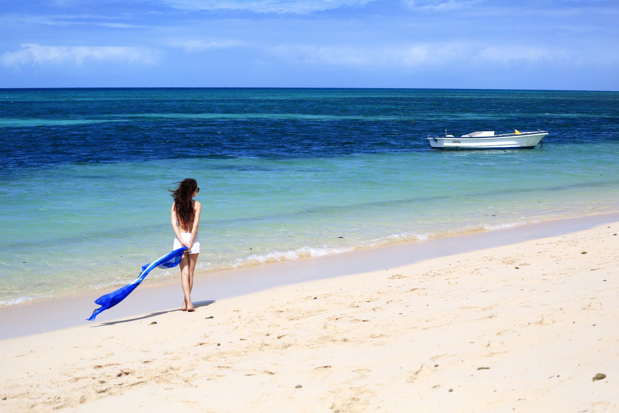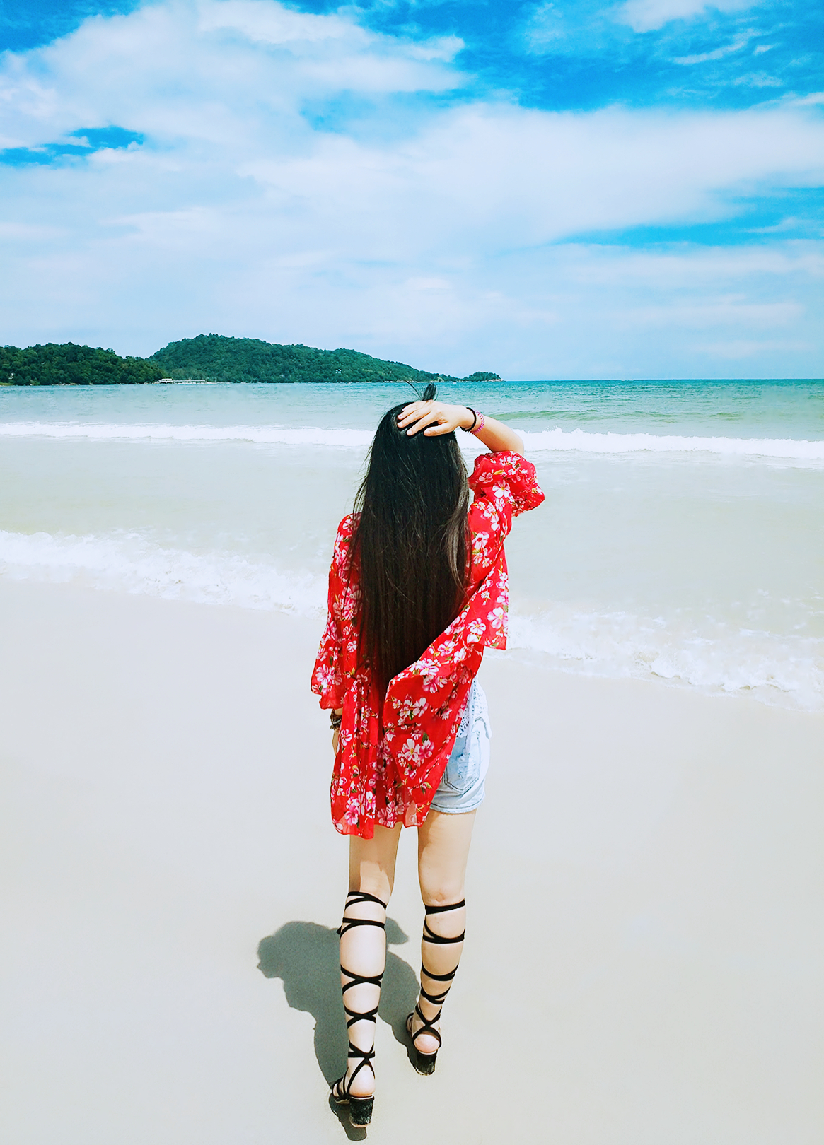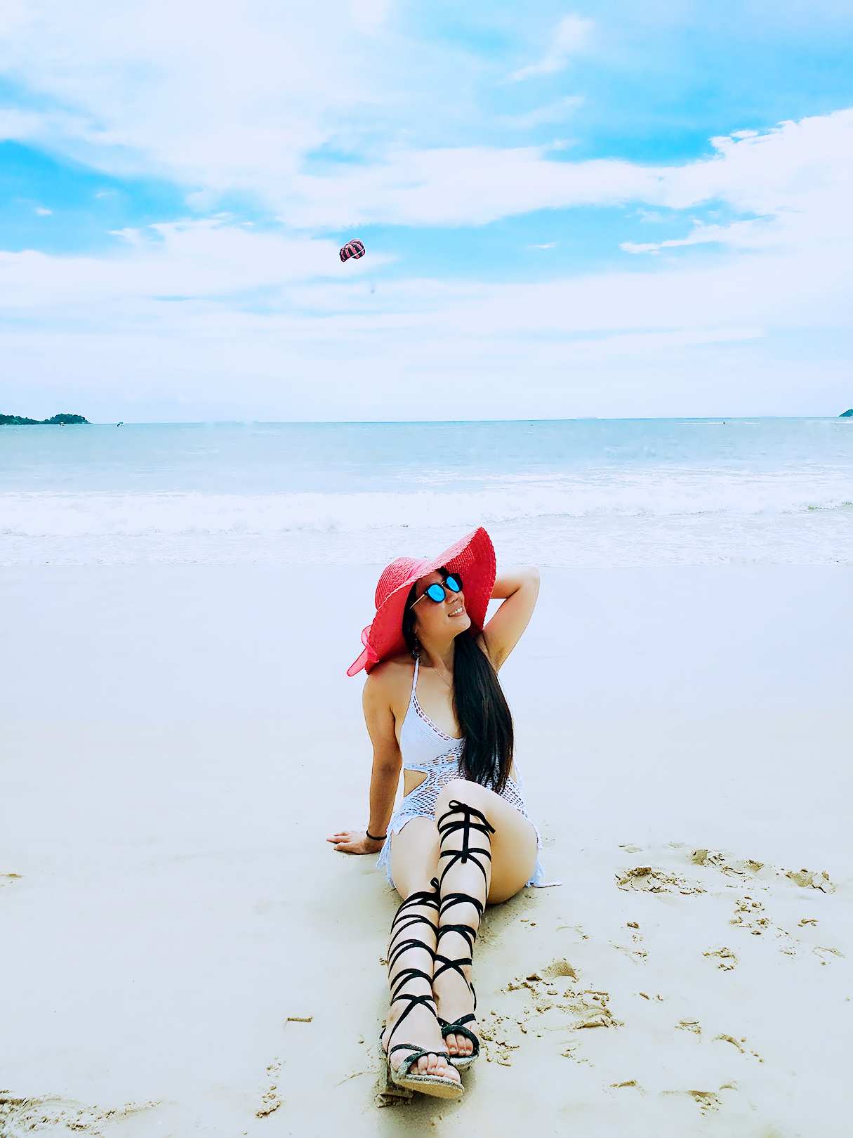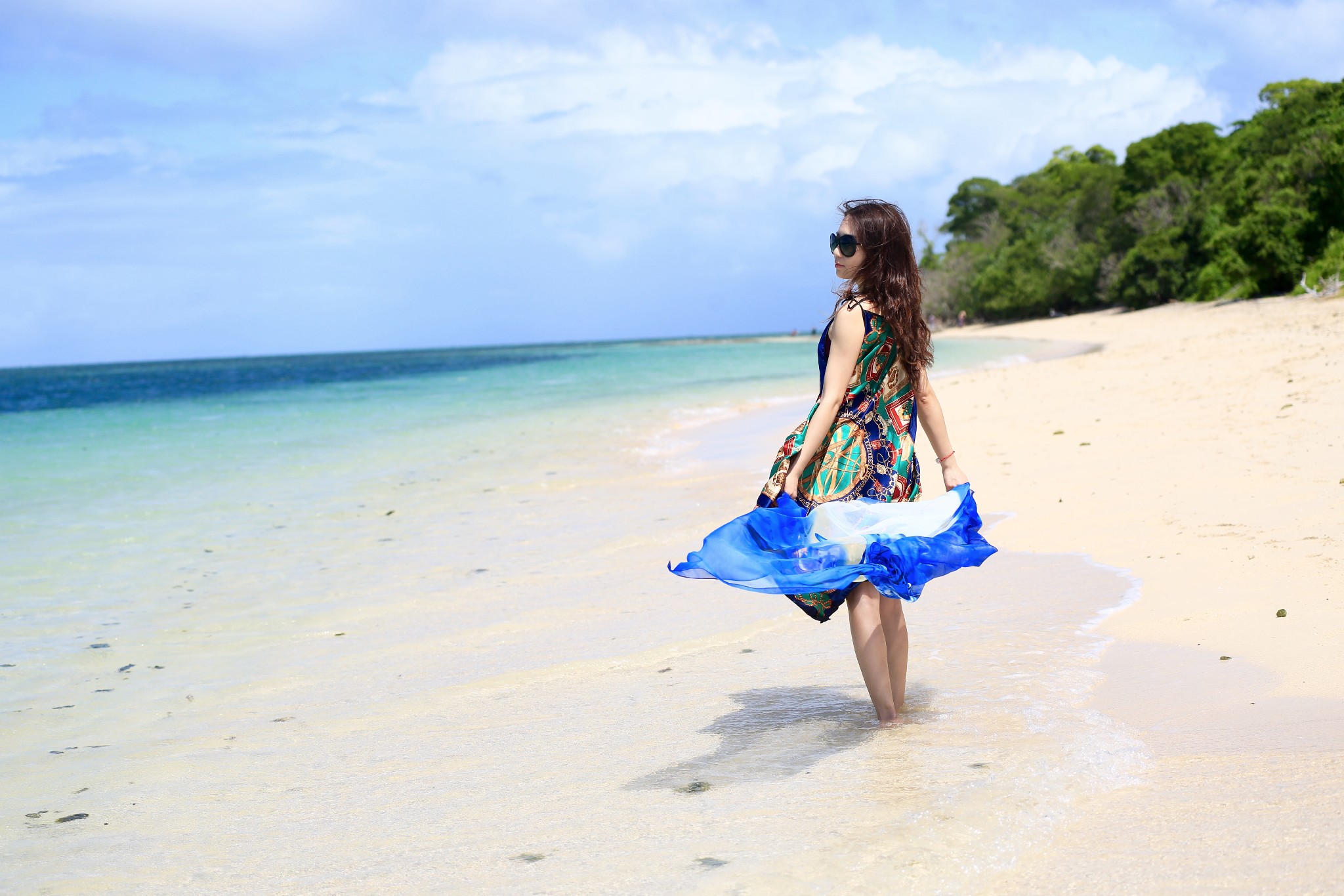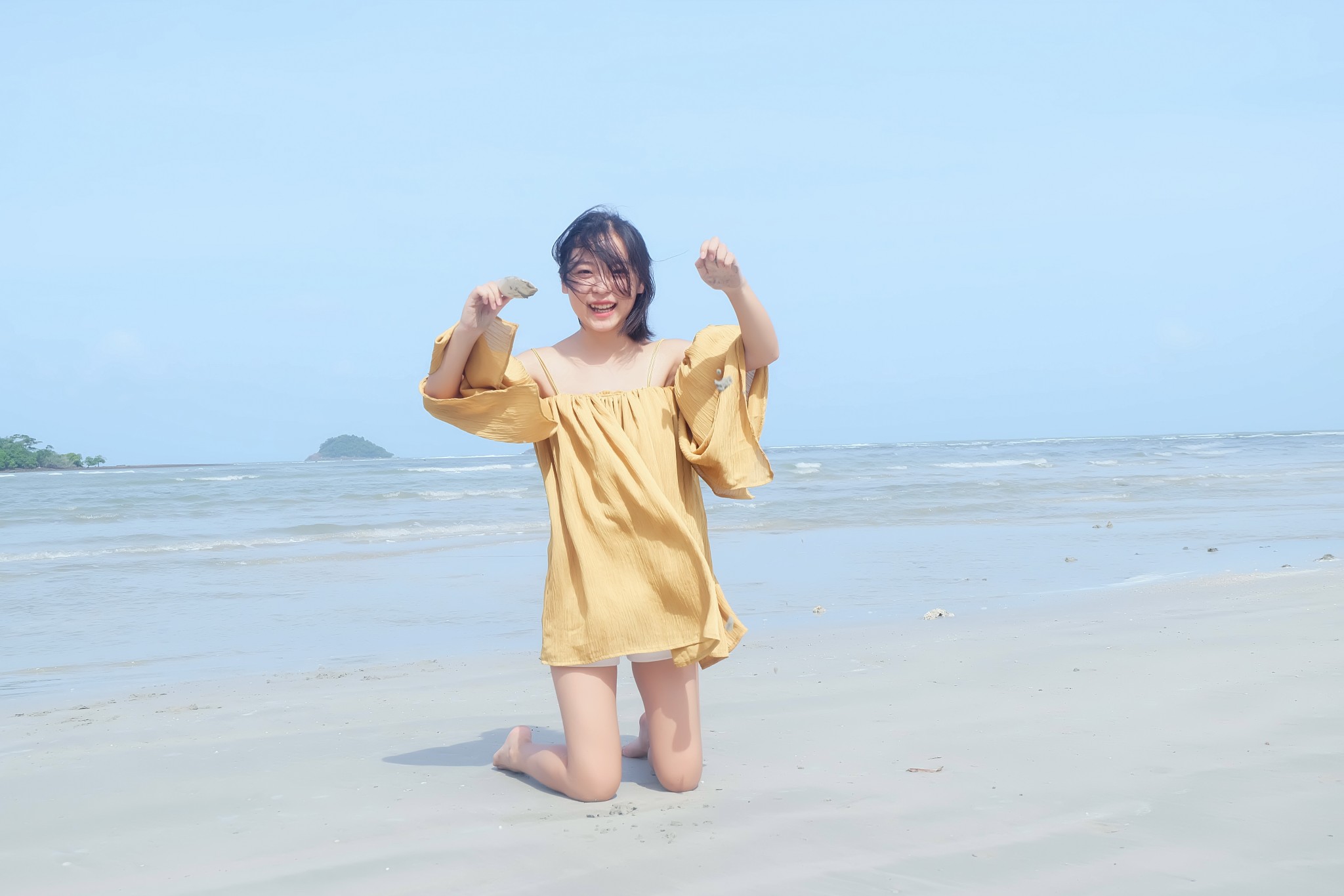 当地买的防晒衣,里面穿比基尼,若隐若现有点小性感哈哈~如果穿比基尼拍照害羞,穿着防晒衣下水拍出来也很不错~