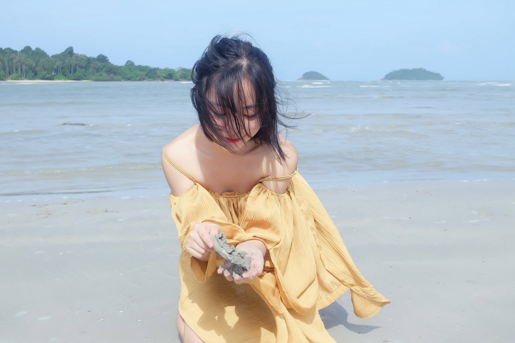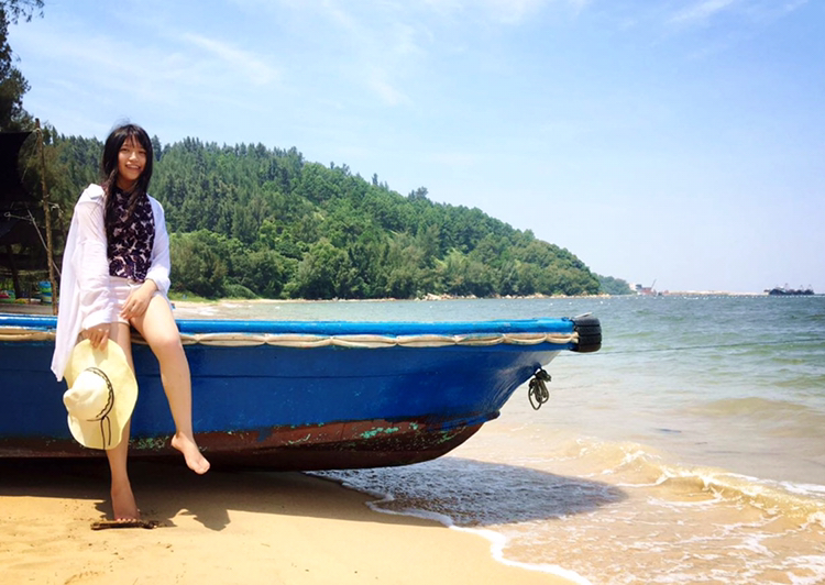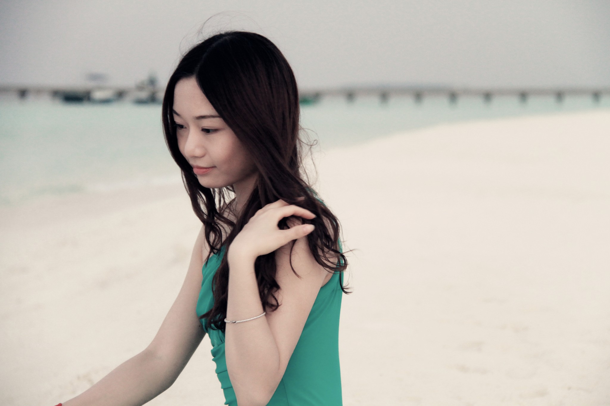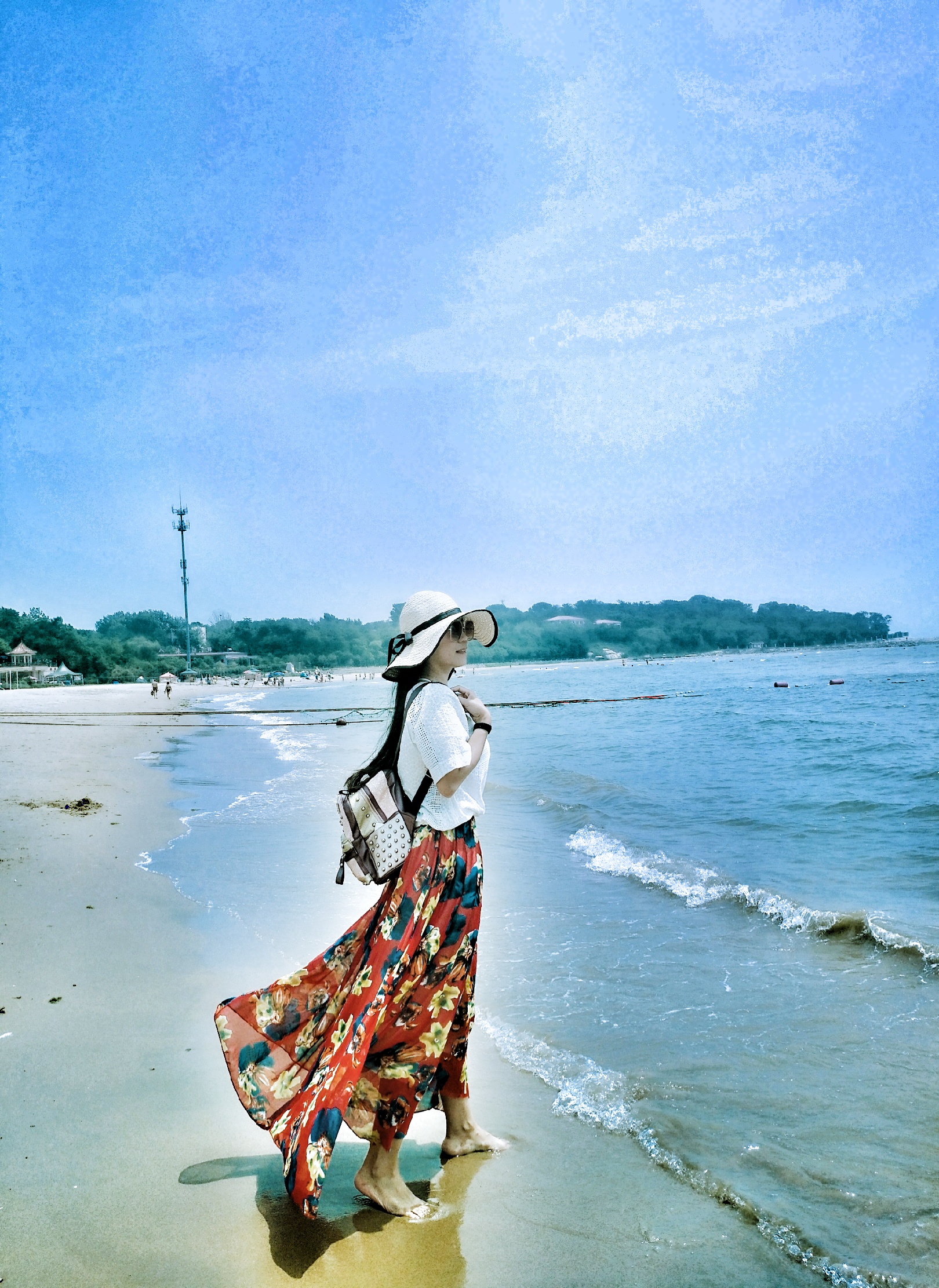 d、让麻豆离海边远一点,弱化背景里的路人。