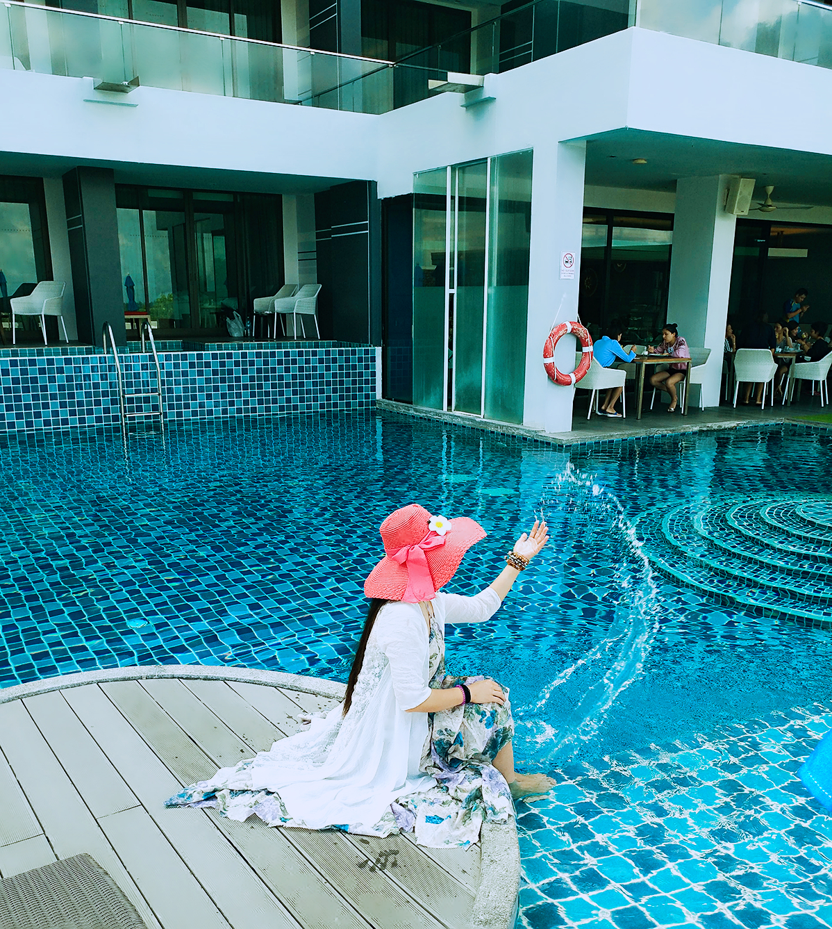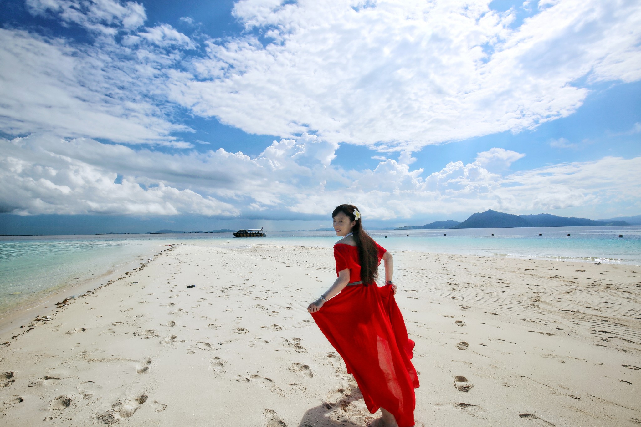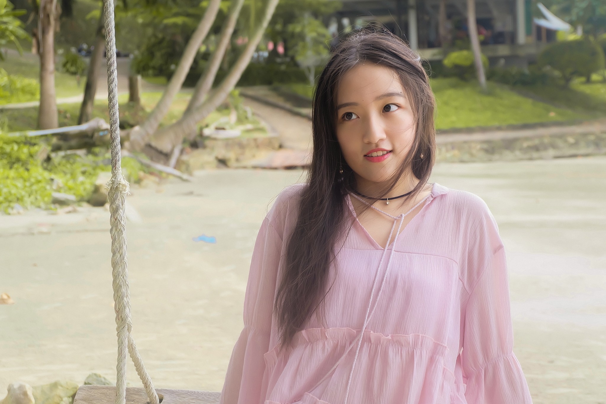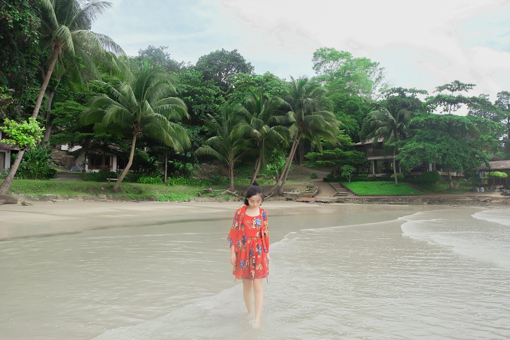 d、让麻豆离海边远一点,弱化背景里的路人。
