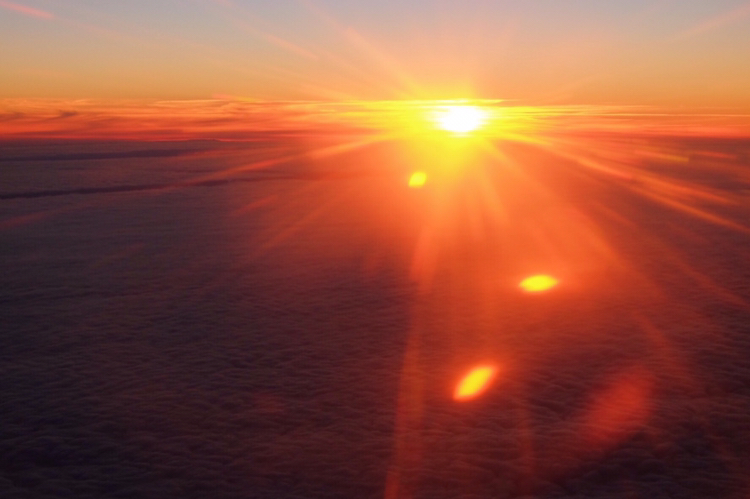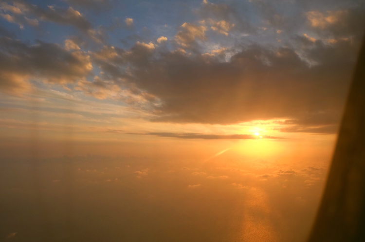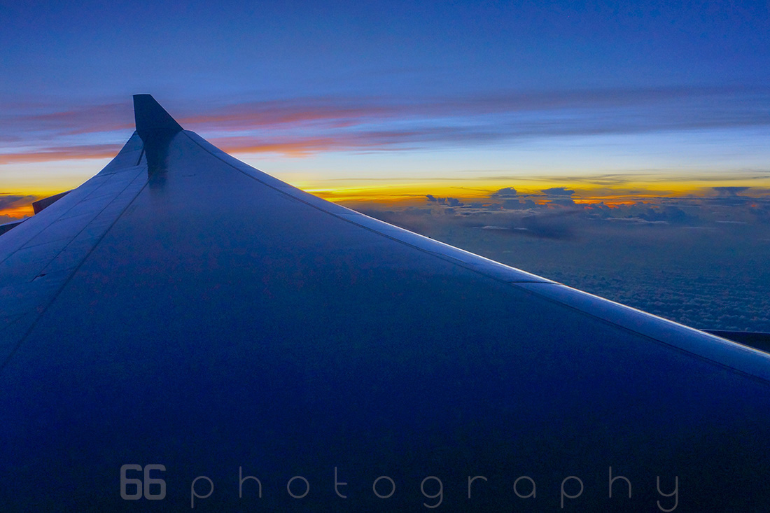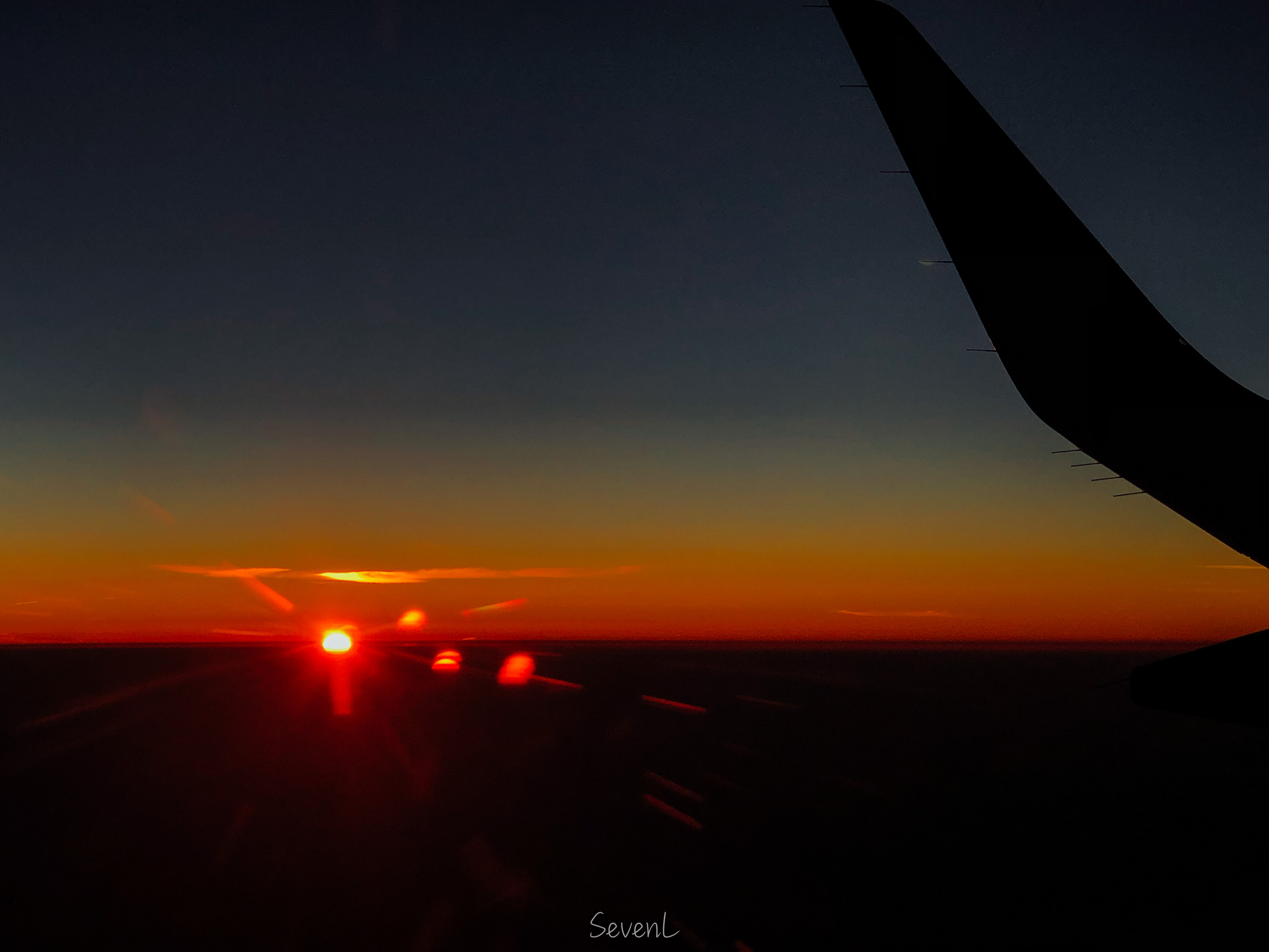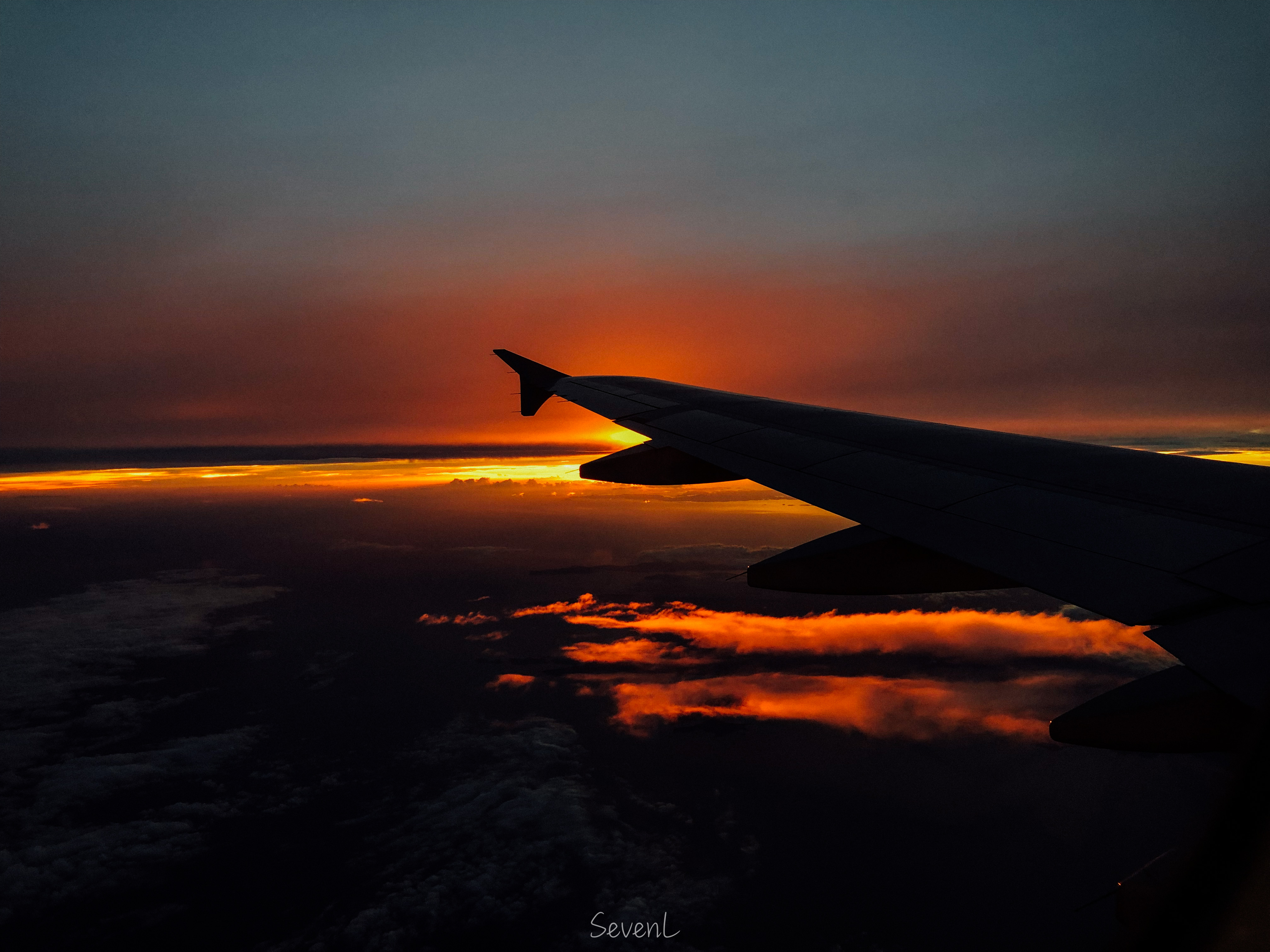 - 摄于广州往兰卡威的亚航小飞机上,当时睡了一觉起来正好遇见了很美的日出