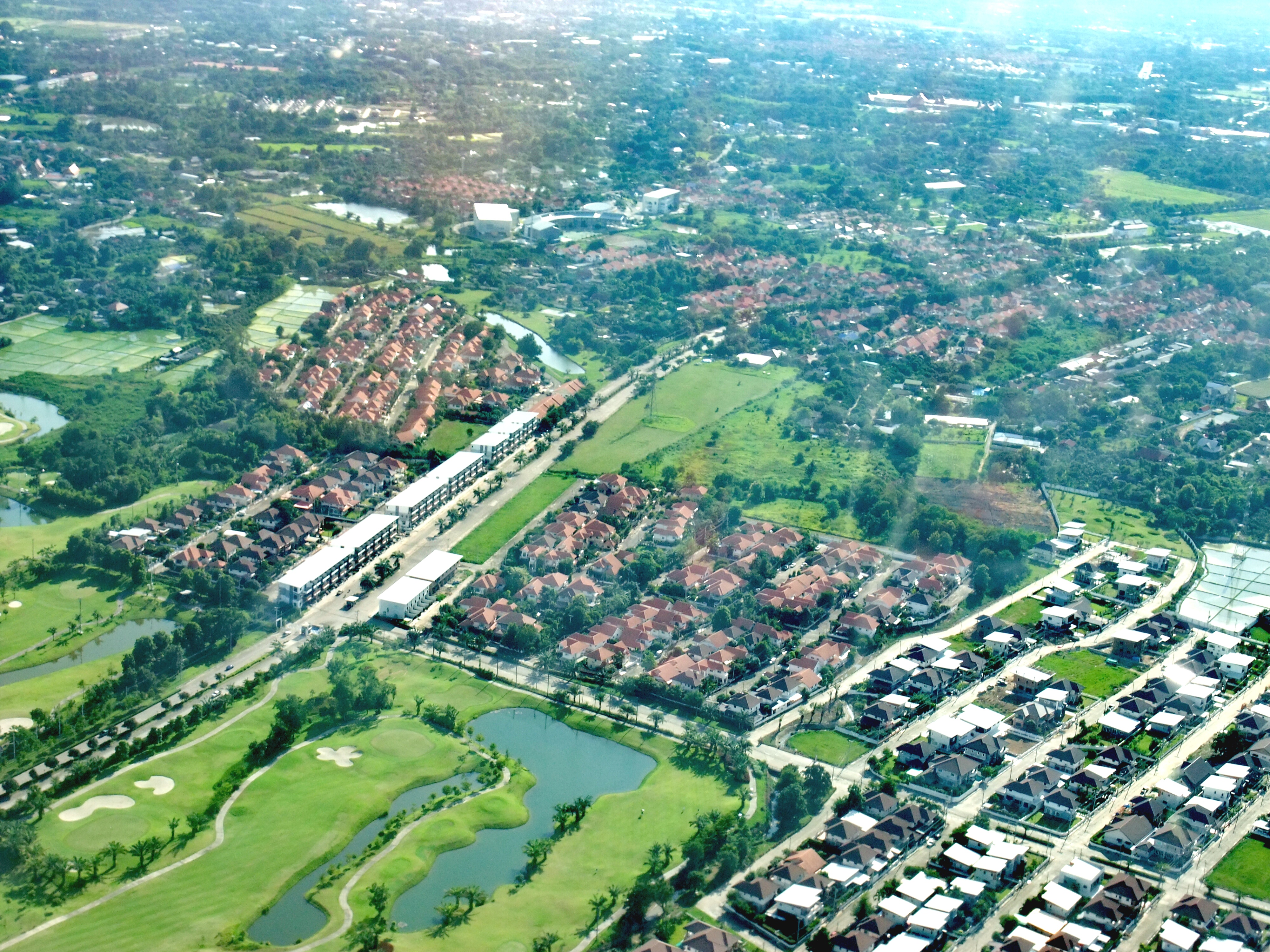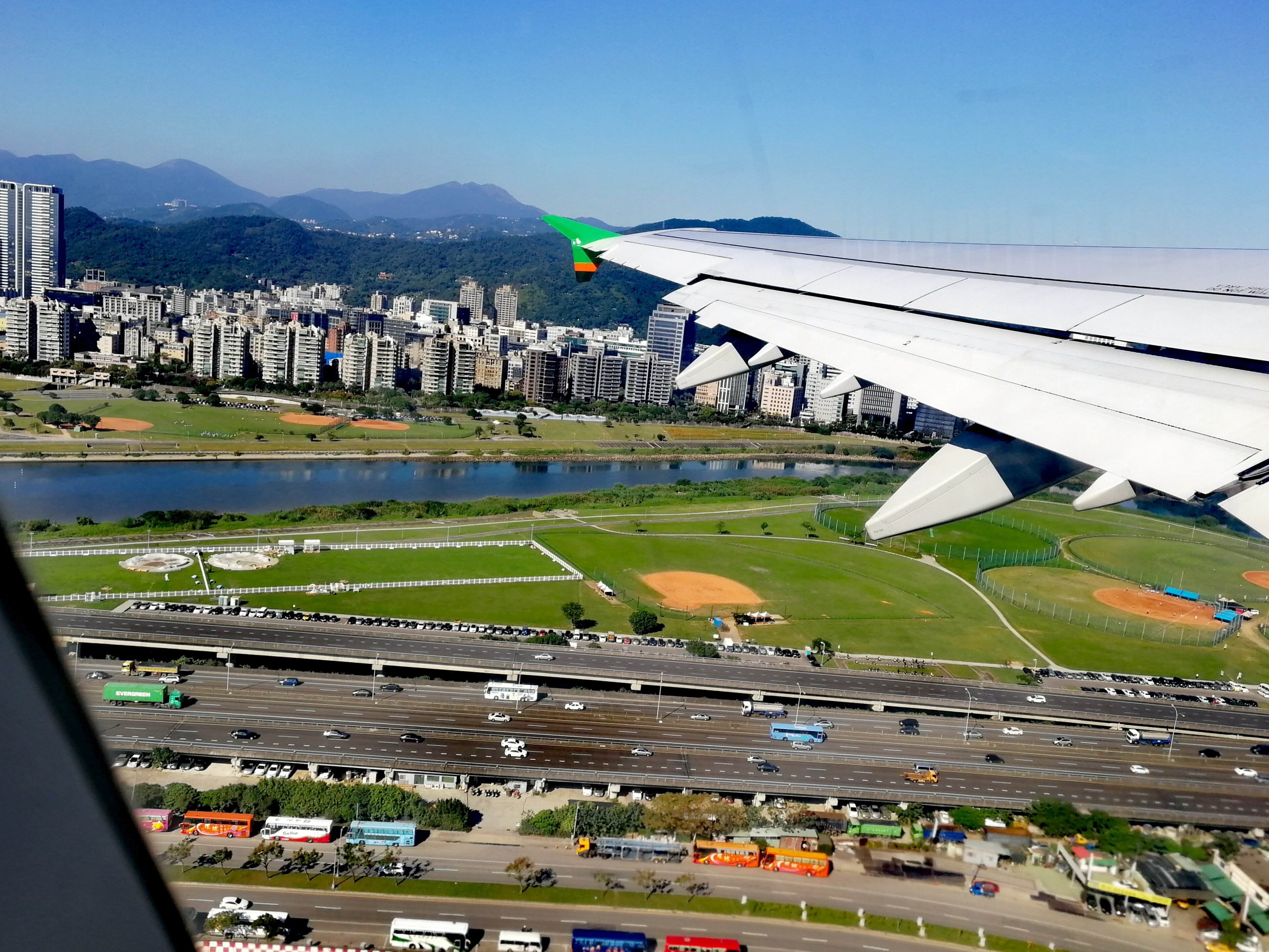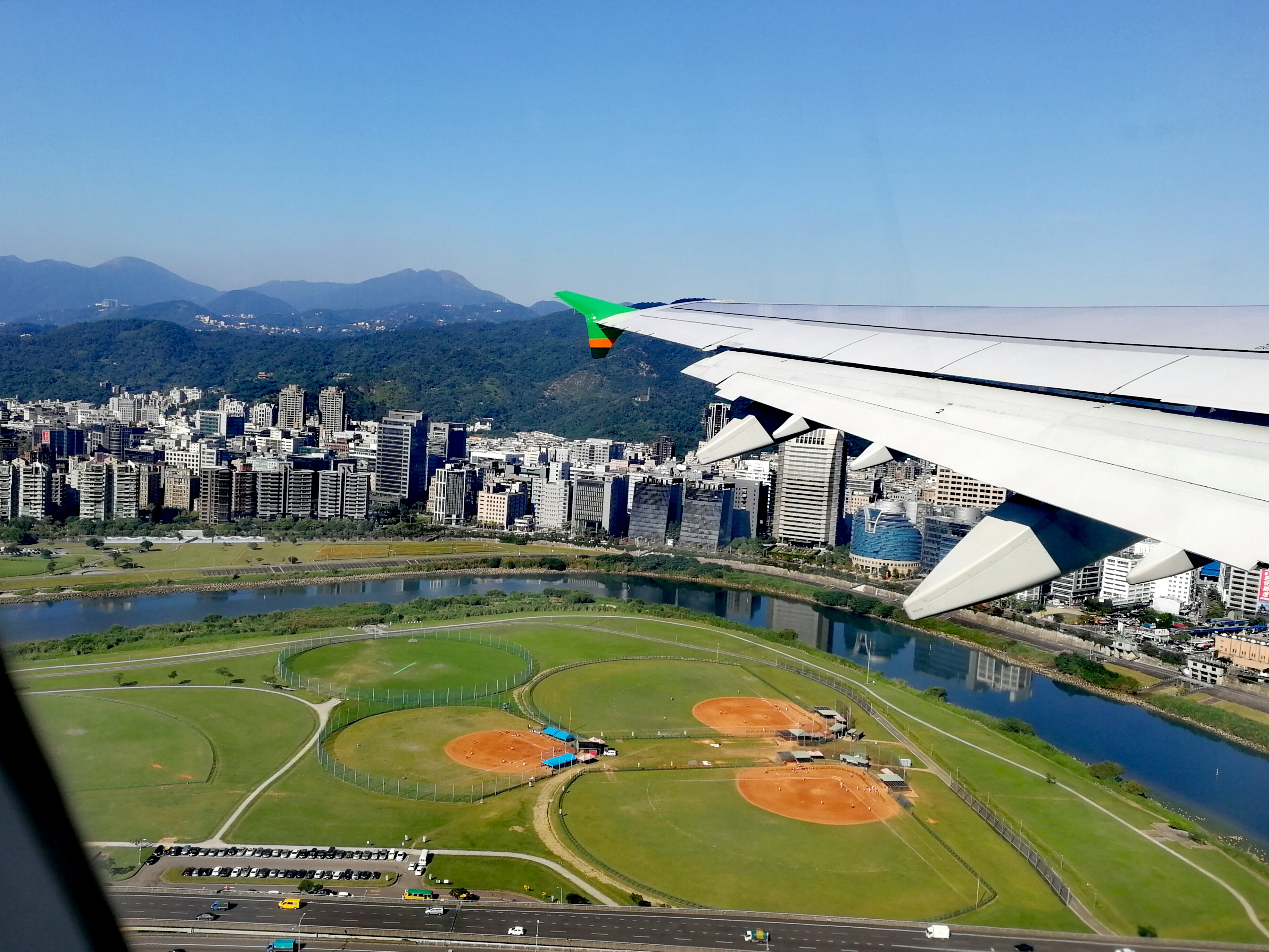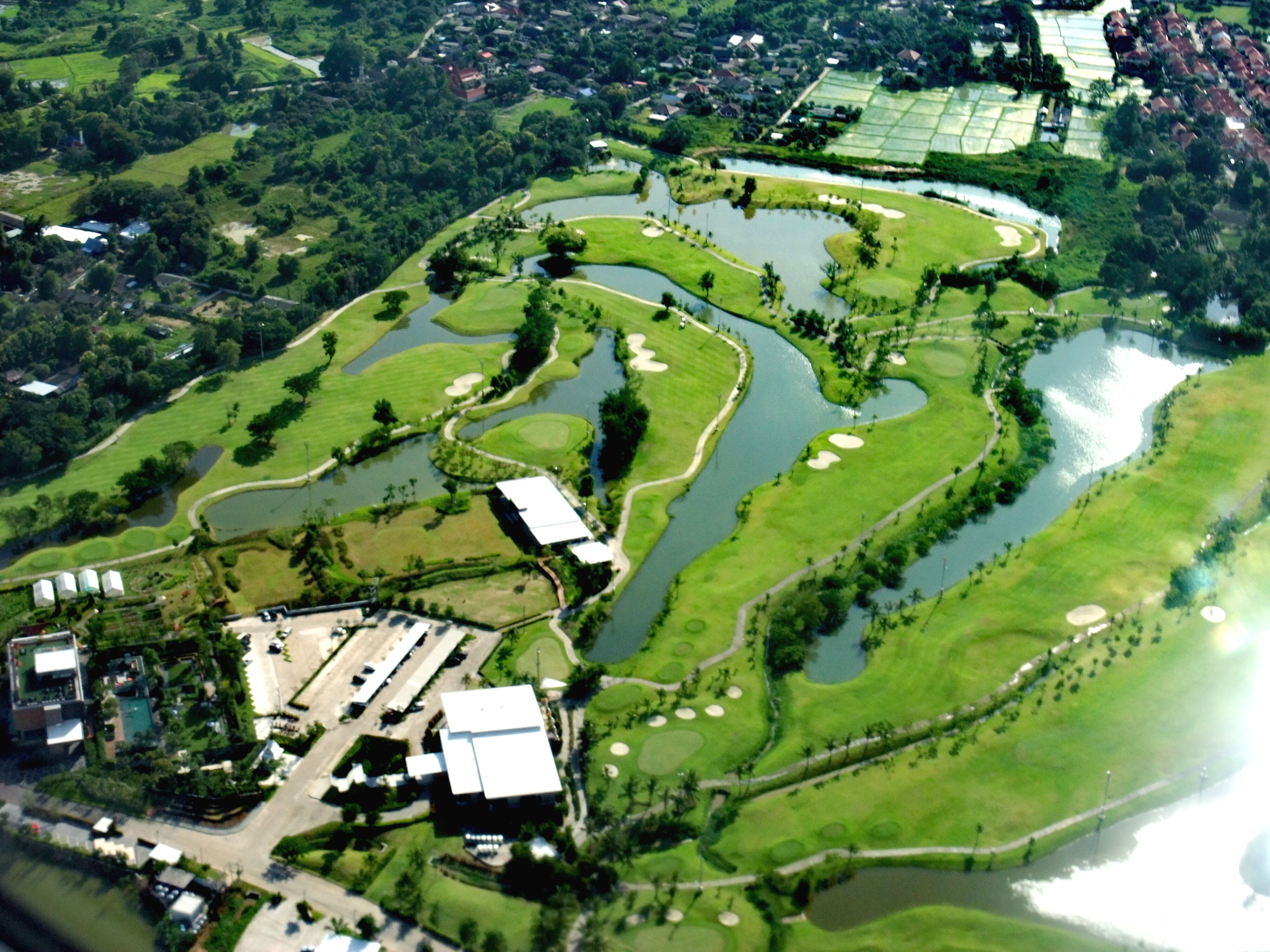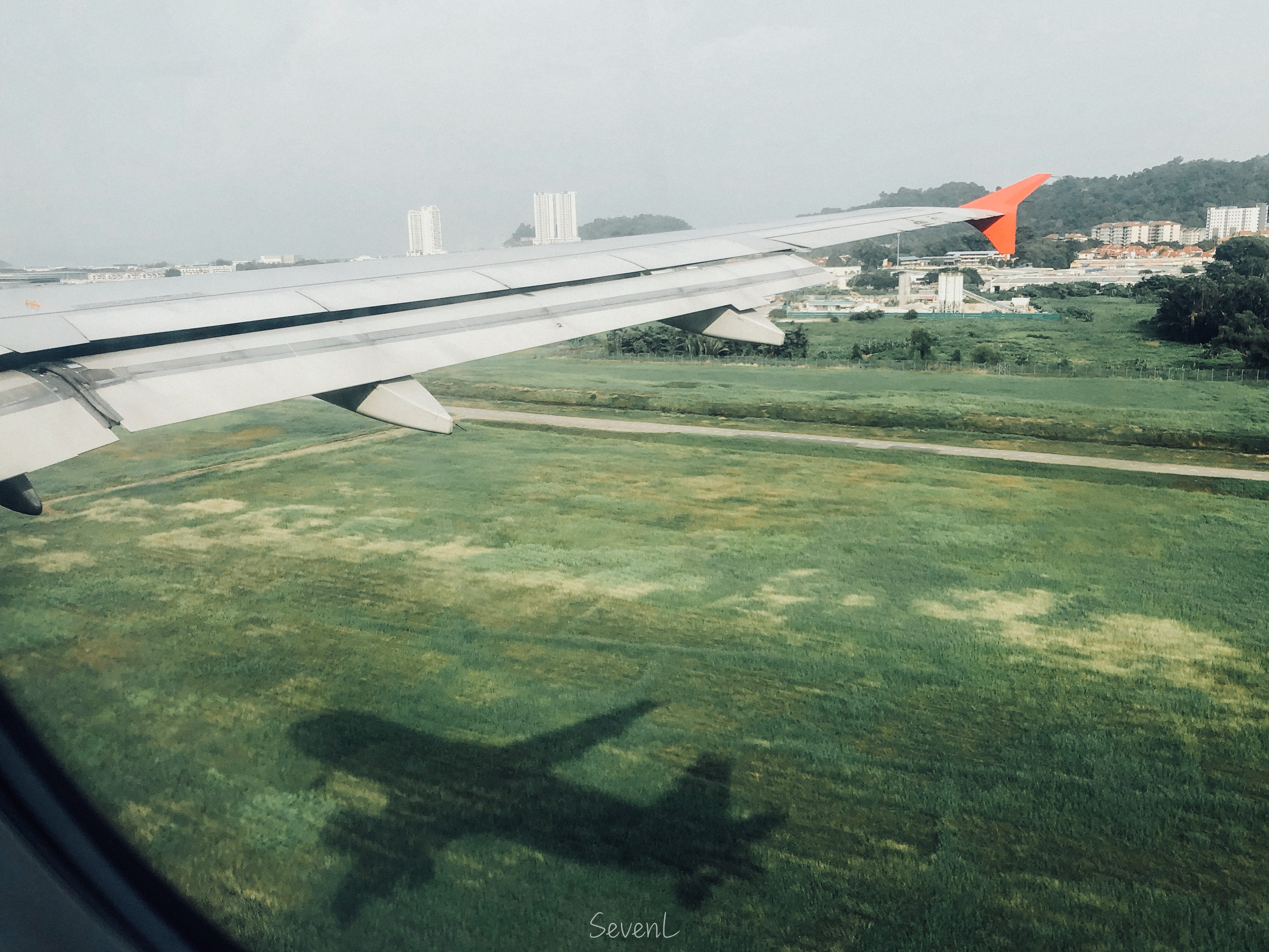 - 降落槟城,飞机的影子在绿色的草坪上显得特别好看