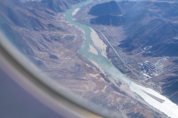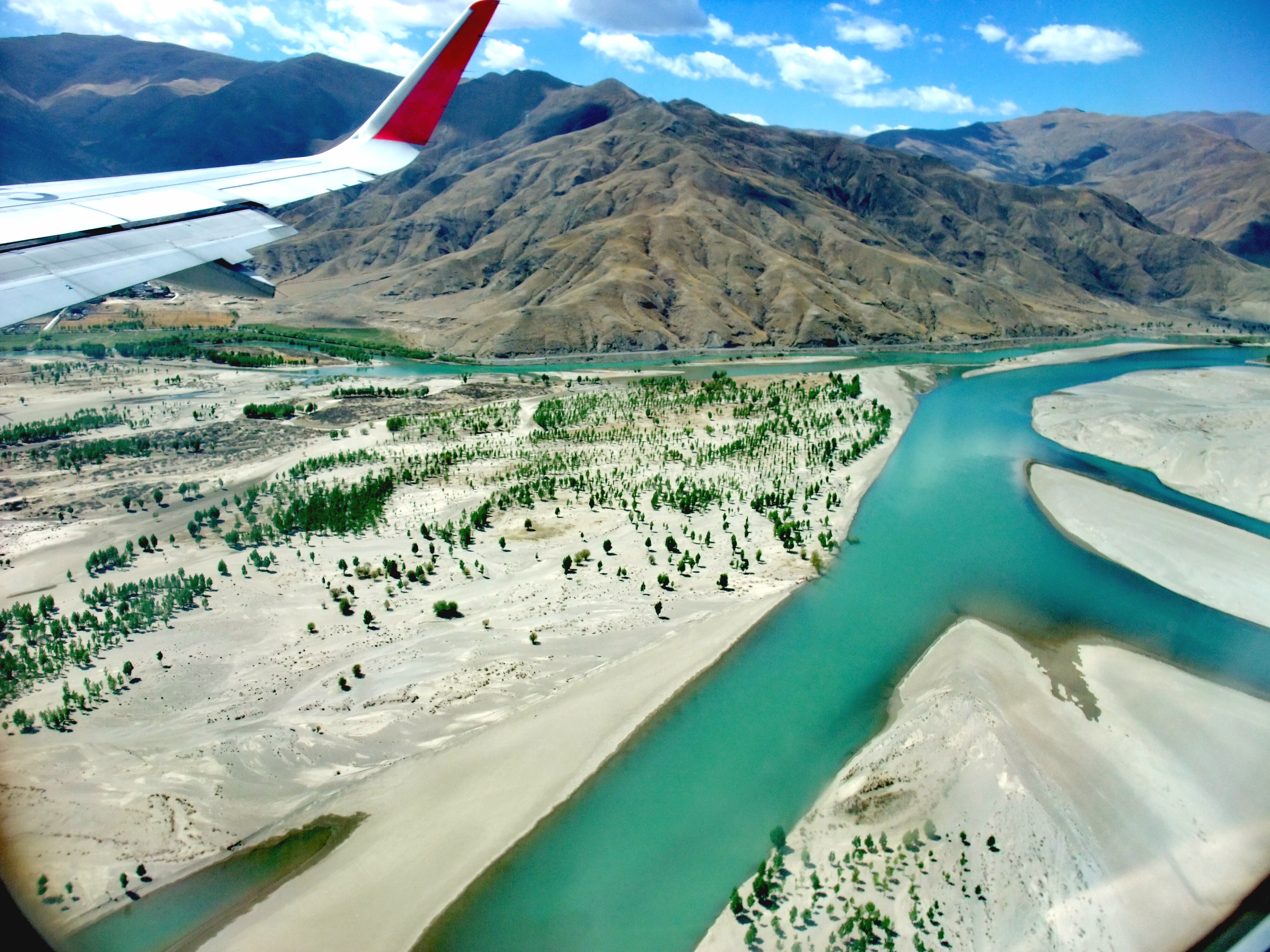 - 拉萨起飞,不一会儿就飞过了市区上空,布达拉宫以及拉萨河映入眼帘