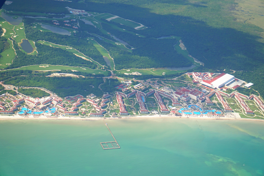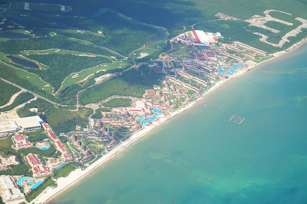 坎昆的整体形状是一个数字“7”的样子,可惜没有拍到全貌,那要飞的很高,又没有云才行了。
