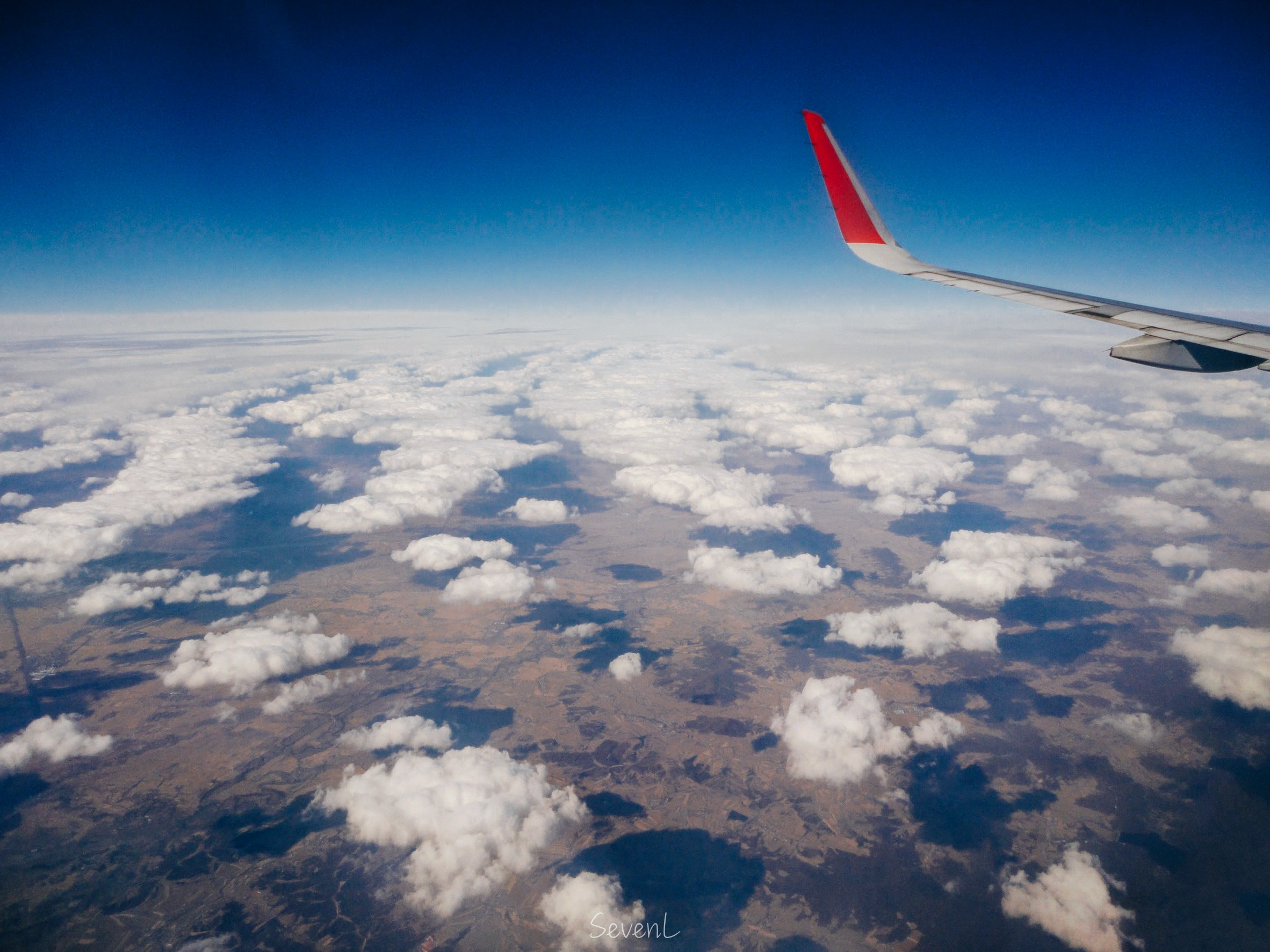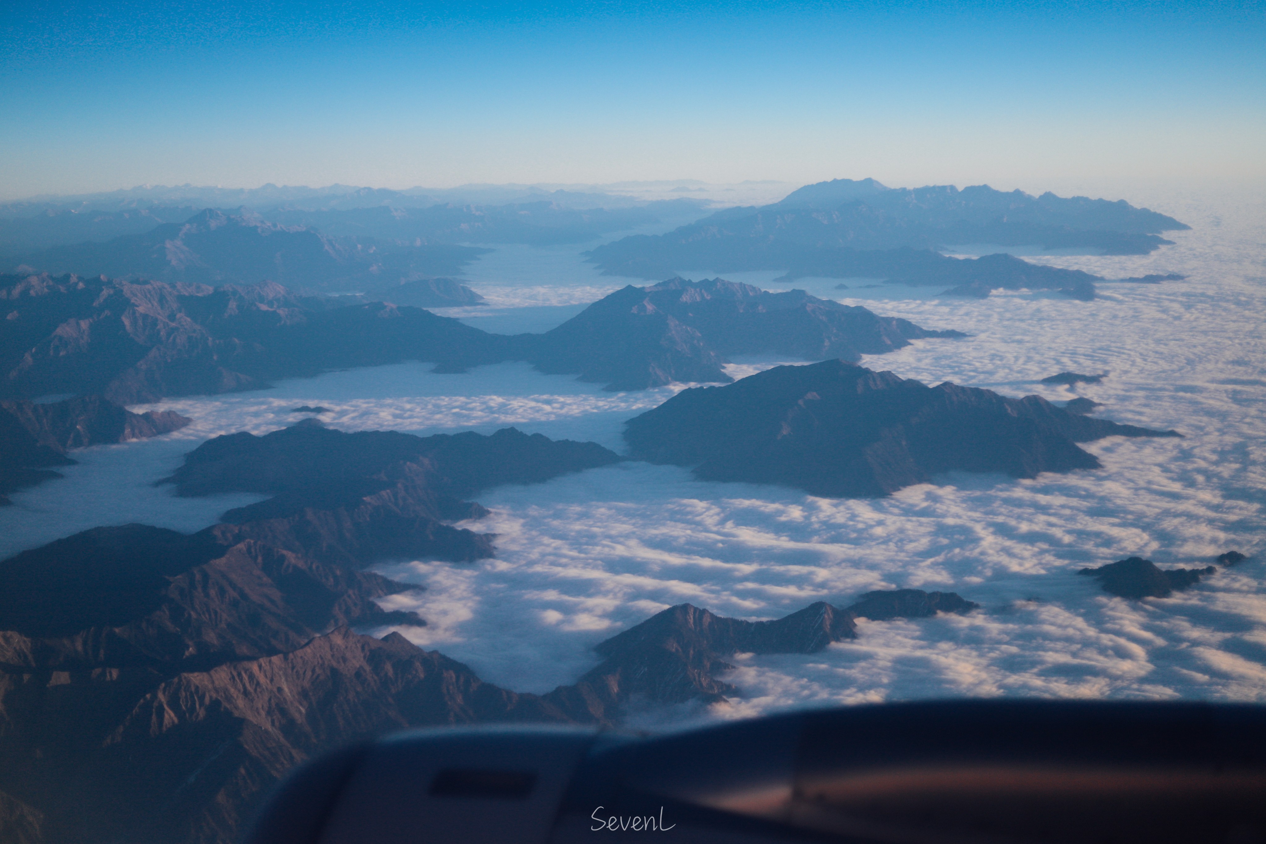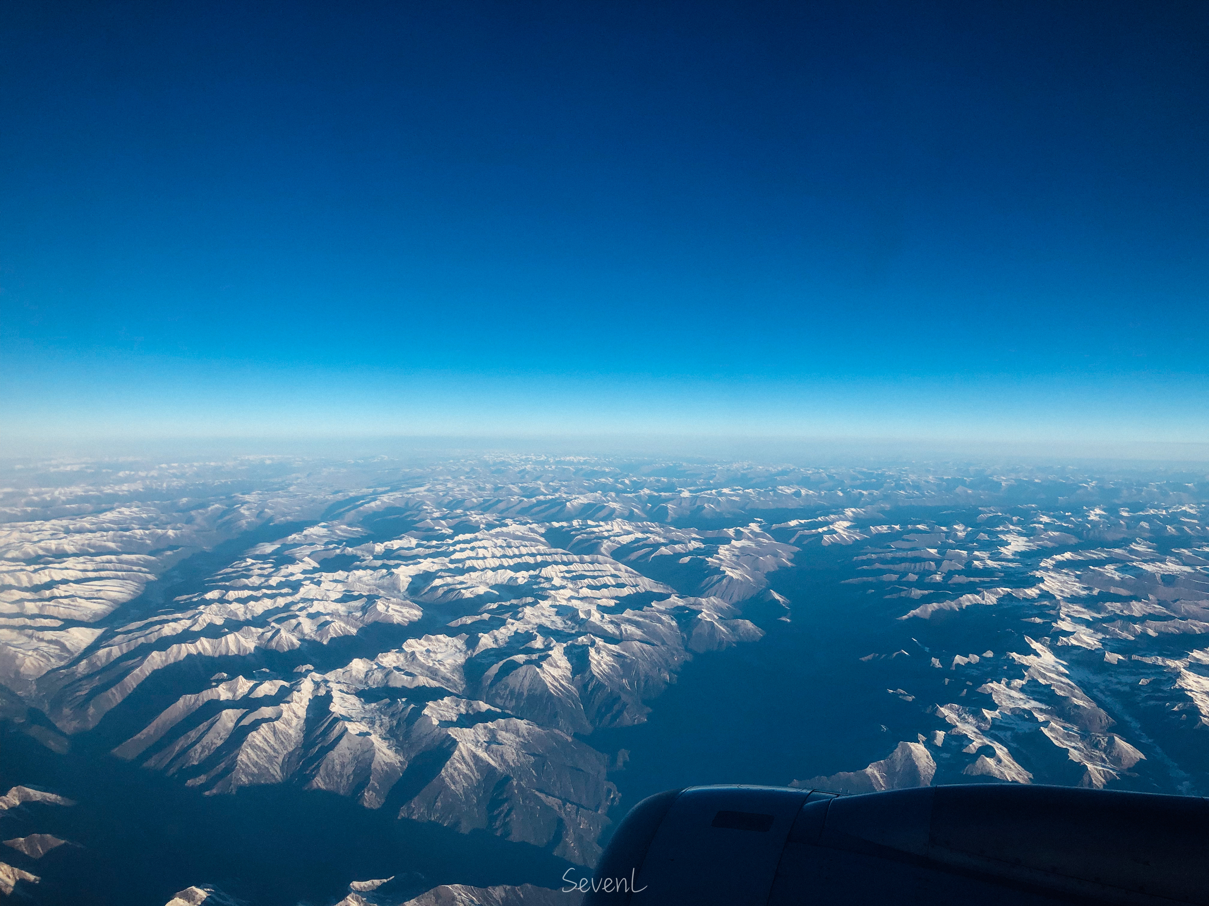 清楚的记得出行那天, 南京的天灰蒙蒙的,刮着大风,飘着小雨,等着我的是三个小时的机上时光,我没有想到这段航线成为我此生飞过最美的一段,以至于我兴奋的在飞机上狂拍了一阵——就像是第一次乘飞机一样