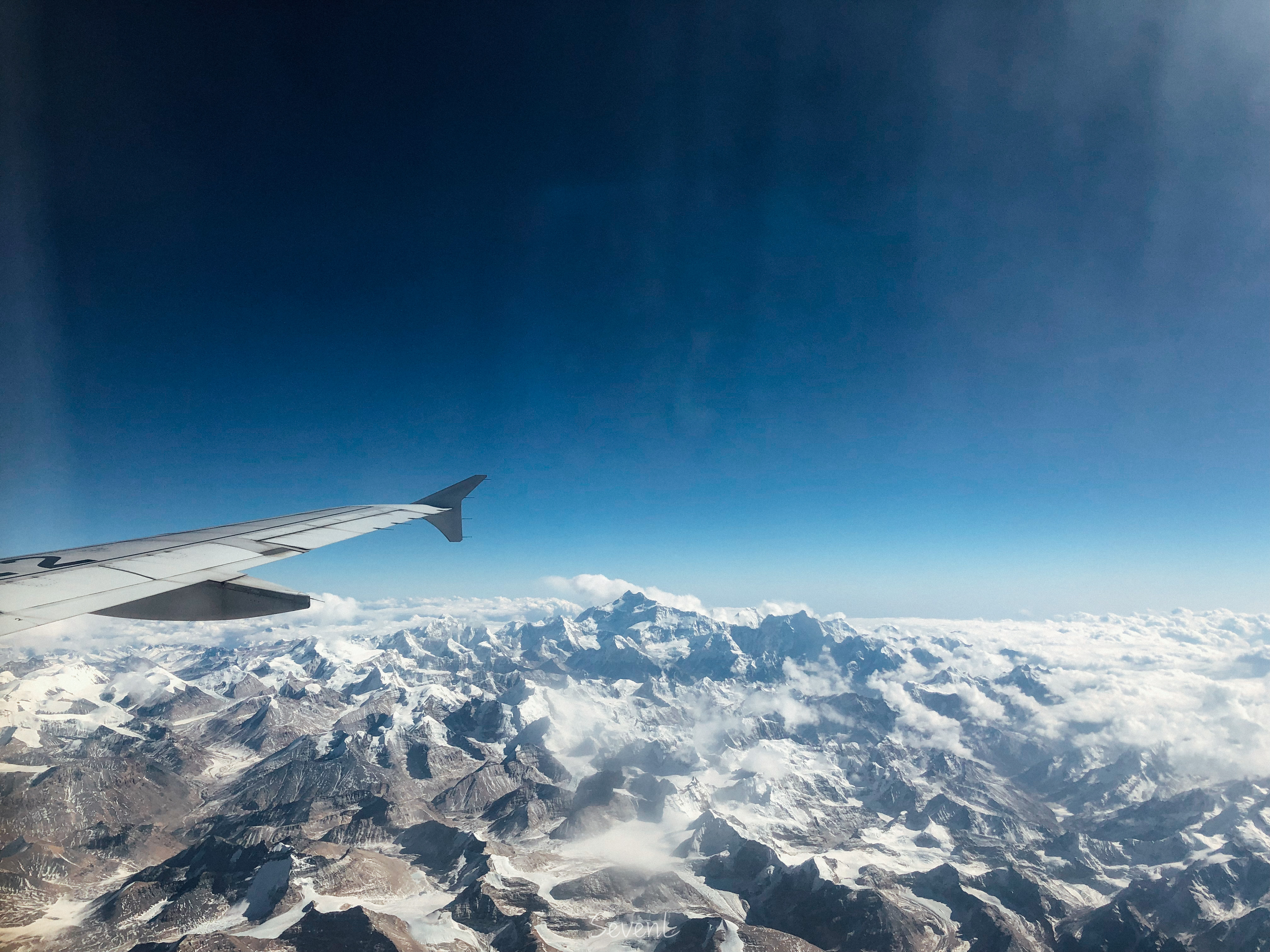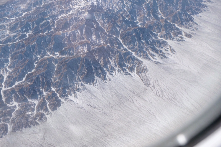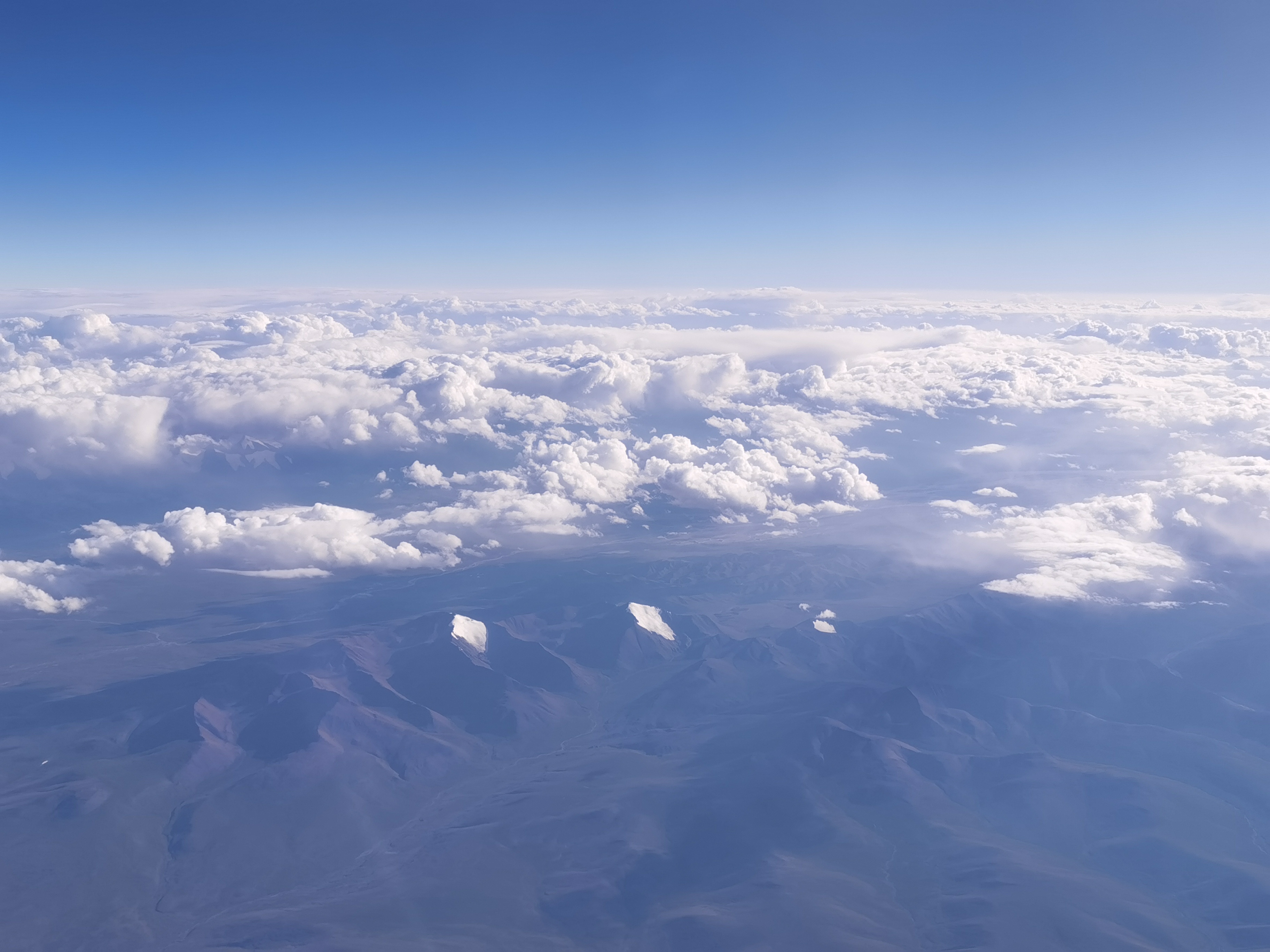 清楚的记得出行那天, 南京的天灰蒙蒙的,刮着大风,飘着小雨,等着我的是三个小时的机上时光,我没有想到这段航线成为我此生飞过最美的一段,以至于我兴奋的在飞机上狂拍了一阵——就像是第一次乘飞机一样