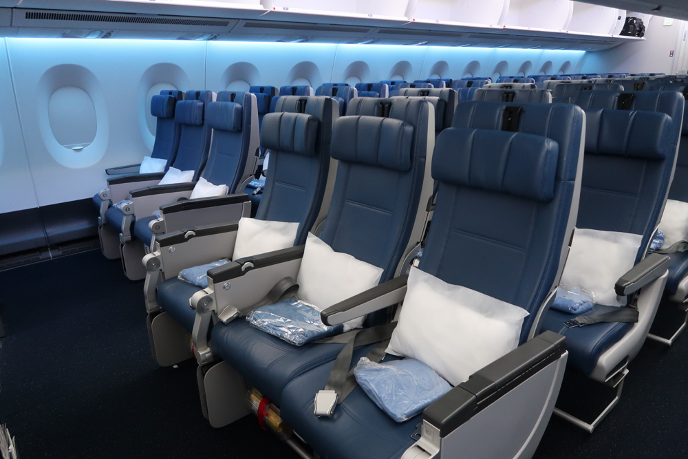 如果你只能选择窄体机出行的话(波音737系列、空客A320系列),普通经济舱只有六个位置可以选择,中间是走人的过道。